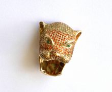 Anel Pantera Diamantes e Esmeralda Ouro 18k 750