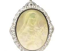 Pingente Santa Teresinha Madrepérola Diamantes e Ouro 18k 750
