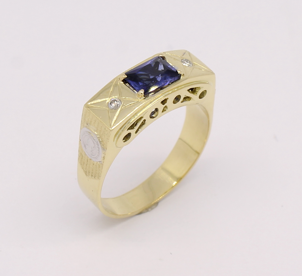 Anel de Formatura Pedras Sintéticas Ouro Amarelo 18k 750