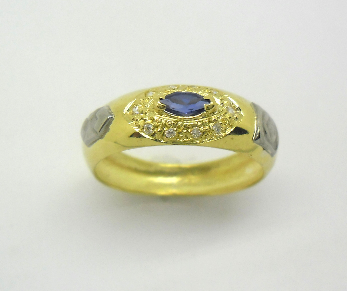 Anel de Formatura Psicologia Safira e Diamantes Ouro 18k