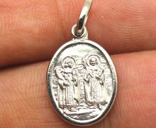 Pingente Cosme e Damião Oval Aço 316L