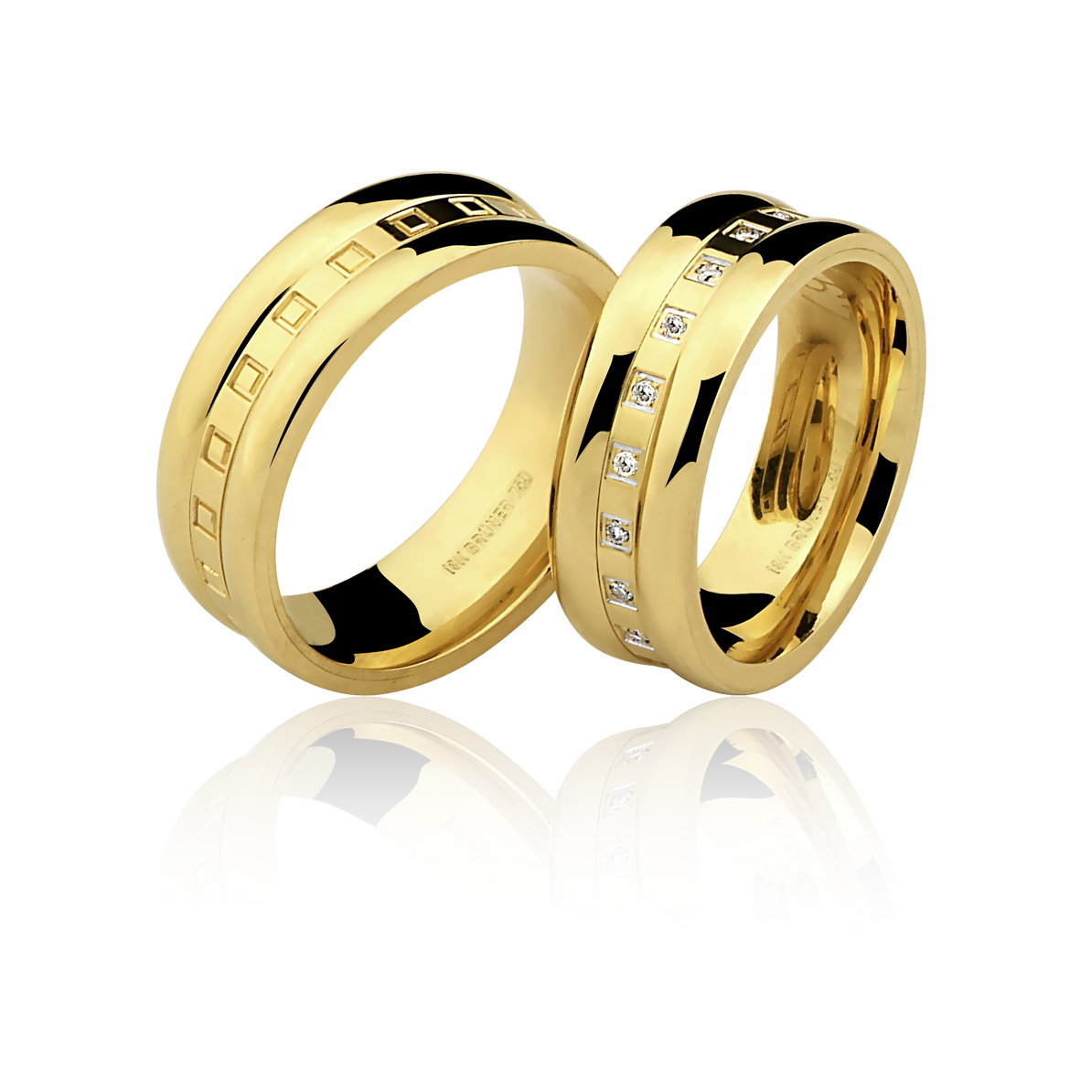 Par de Alianças com Quadrados e Diamantes Ouro 18k 750
