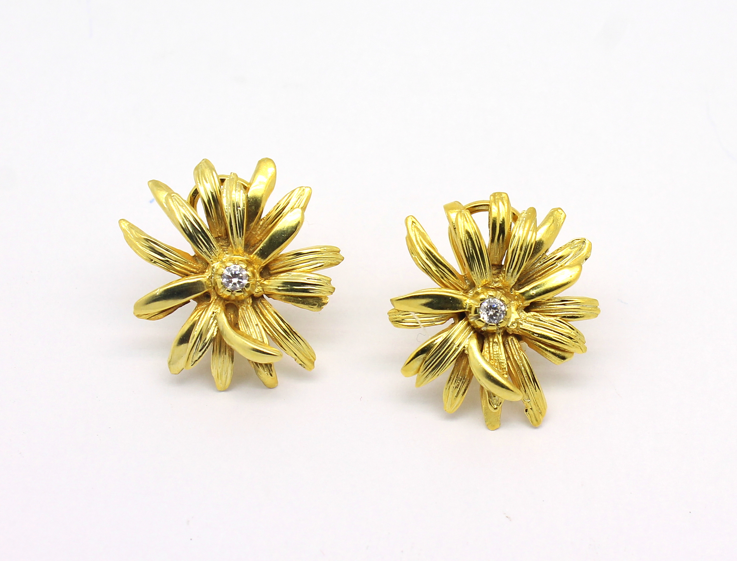 Brinco de Flor com Clips Zircônias Ouro 18k 750