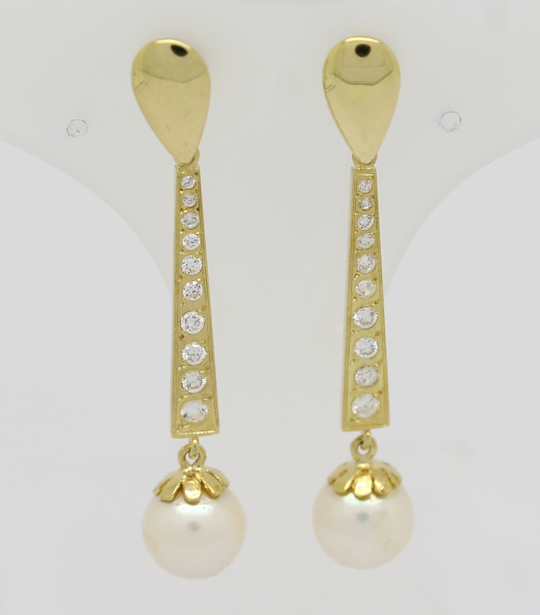 Brinco Pendurado Pérola e Zircônios Ouro Amarelo 18k 750