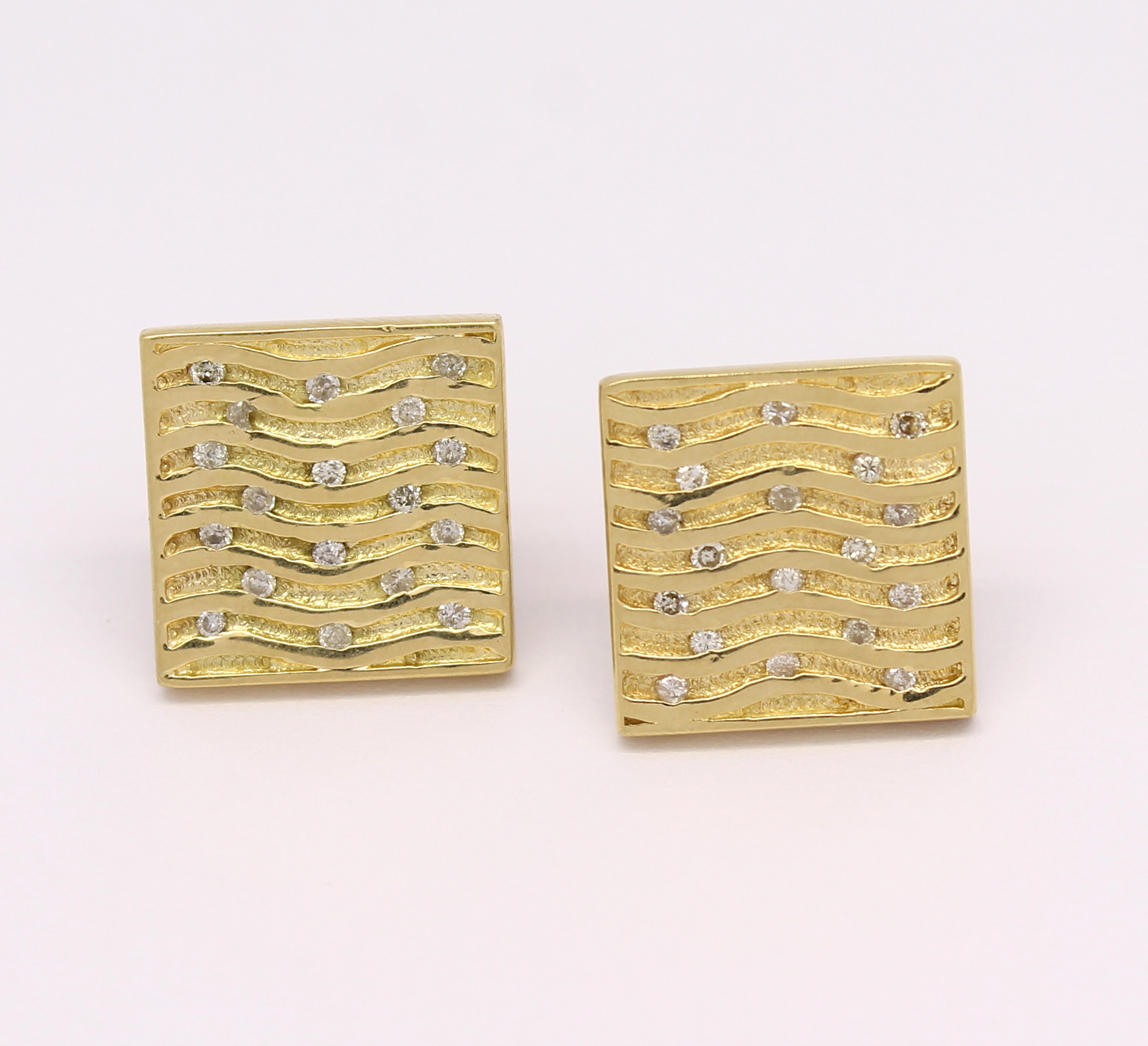 Brinco Quadrado Ondas Diamantes Ouro Amarelo 18k 750