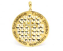 Pingente Tudo Posso Naquele que me Fortalece Diamante Ouro 18k 750