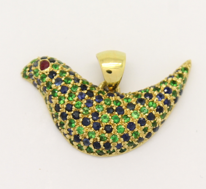 Pingente Paloma Safira Esmeralda Rubi Ouro Amarelo 18k 750