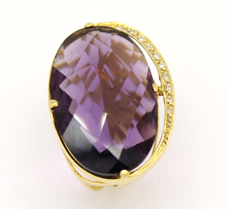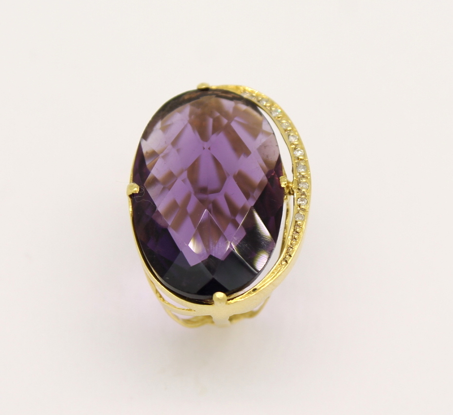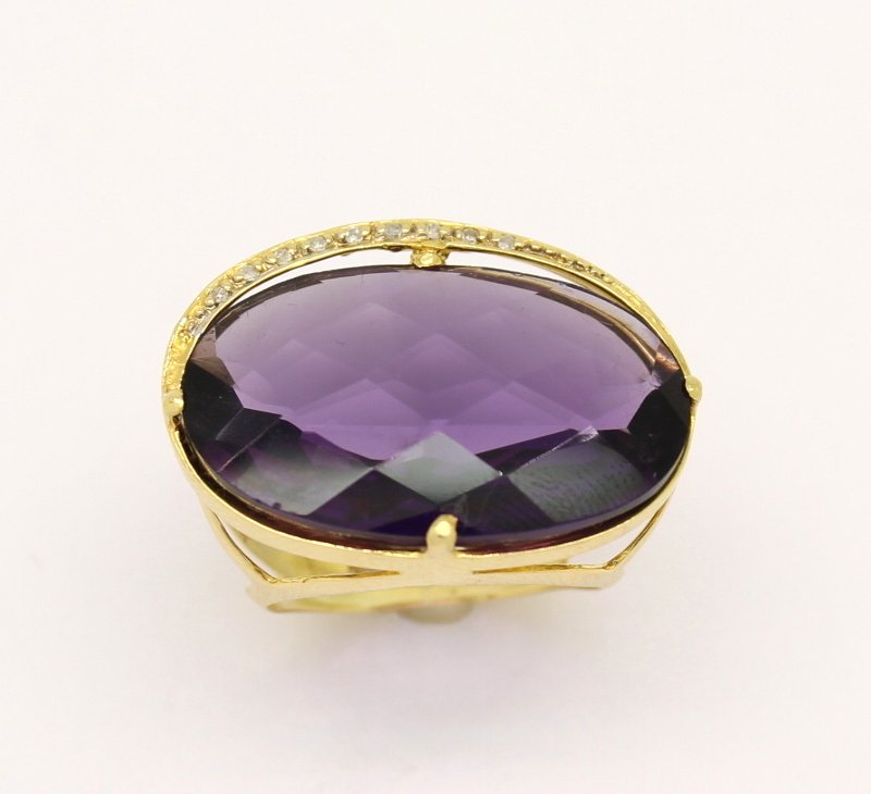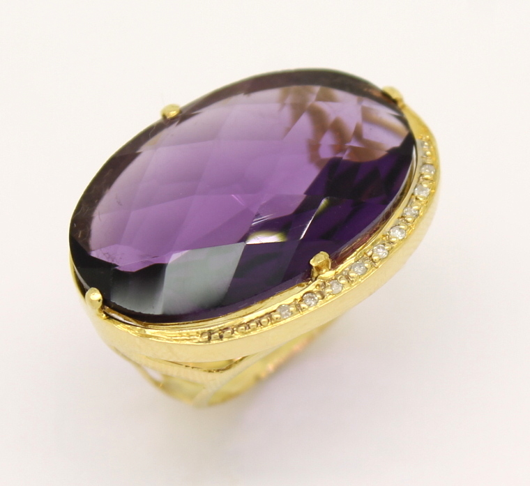 Anel Ametista Cabochon Diamantes Ouro Amarelo 18k 750