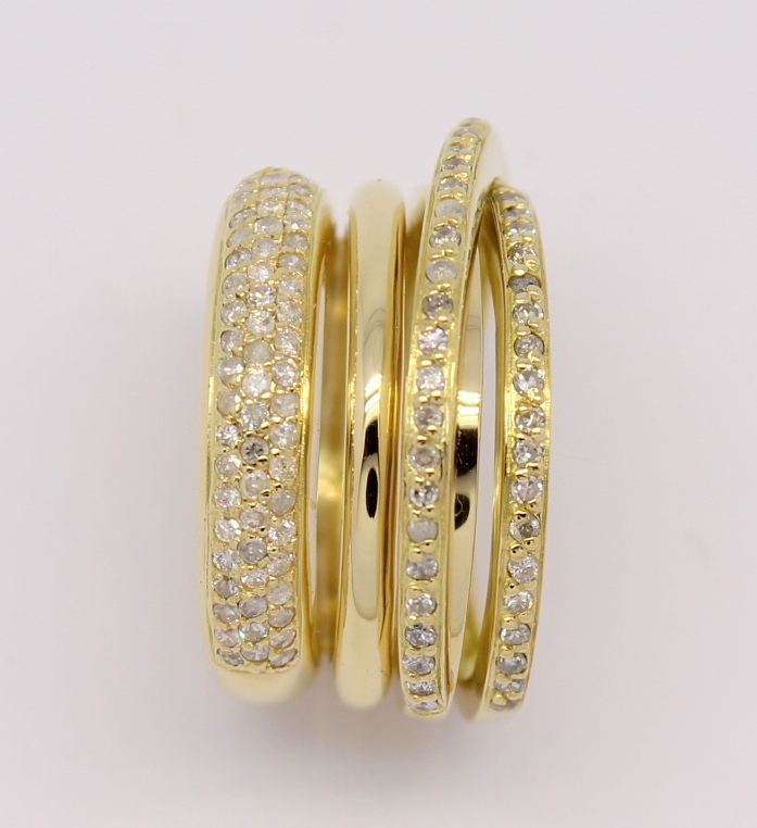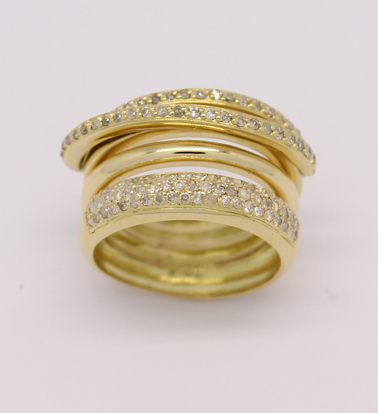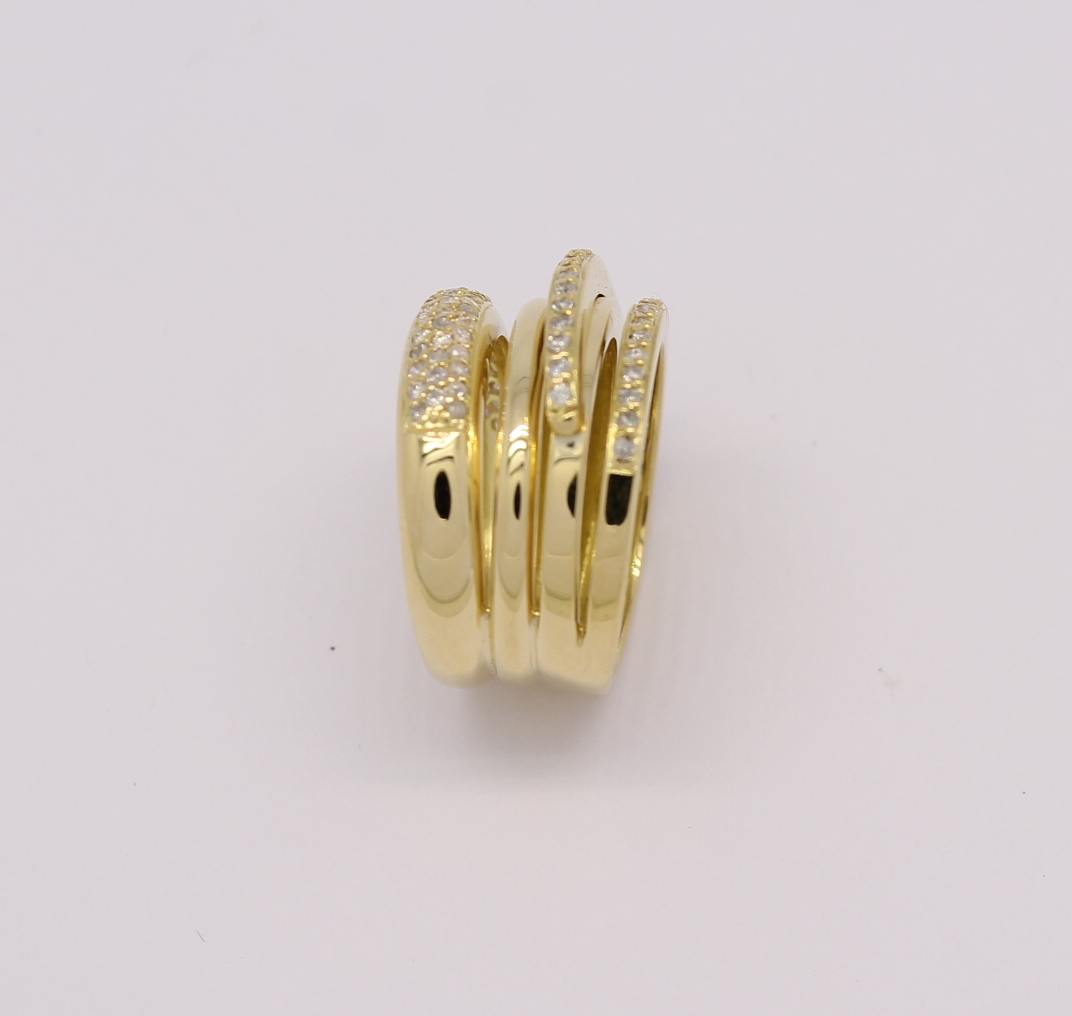 Anel Feminino Entrelaçado Zircônios Ouro Amarelo 18k 750