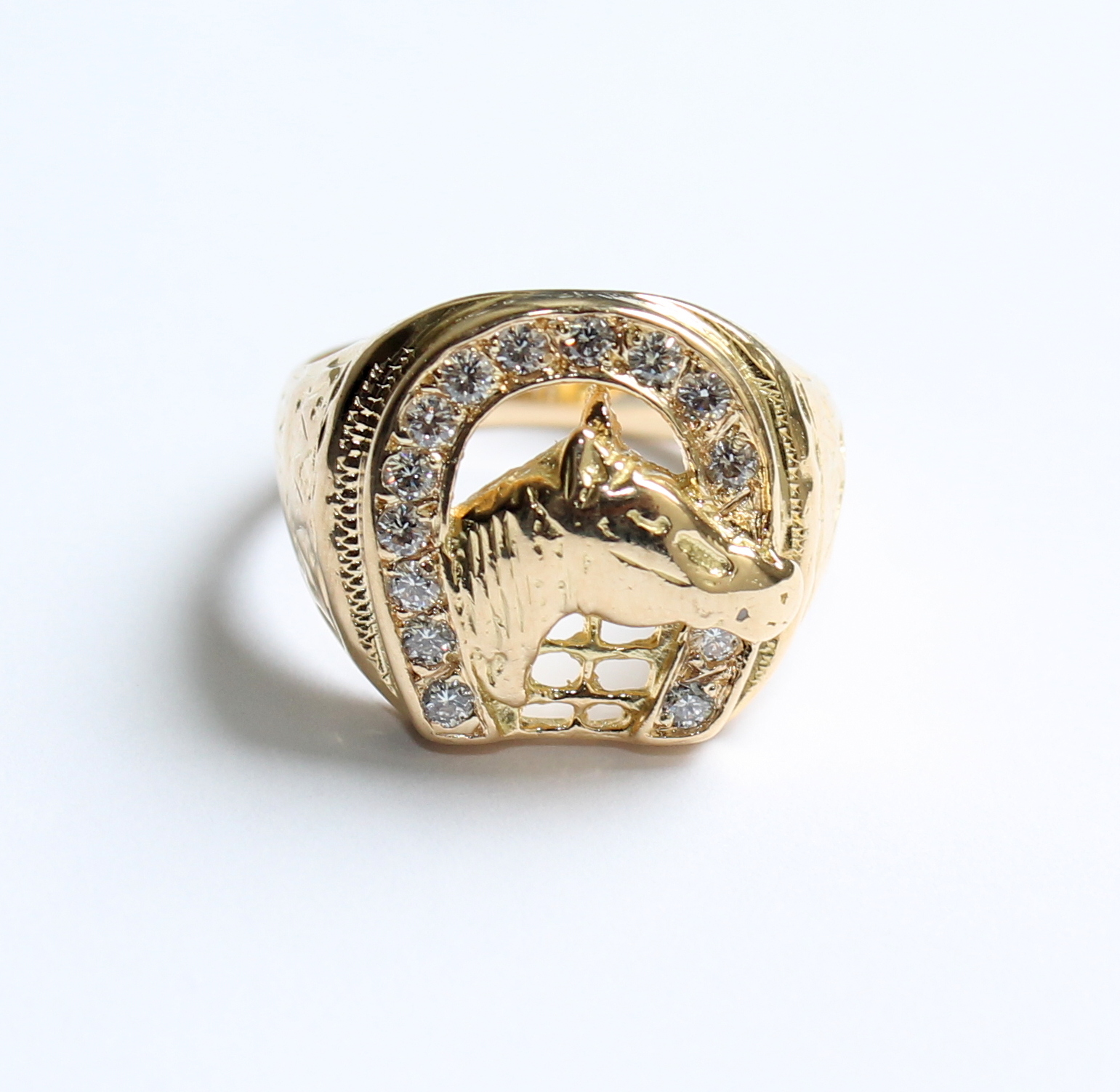 Anel Ferradura e Cavalo Diamantes Ouro 18k 750
