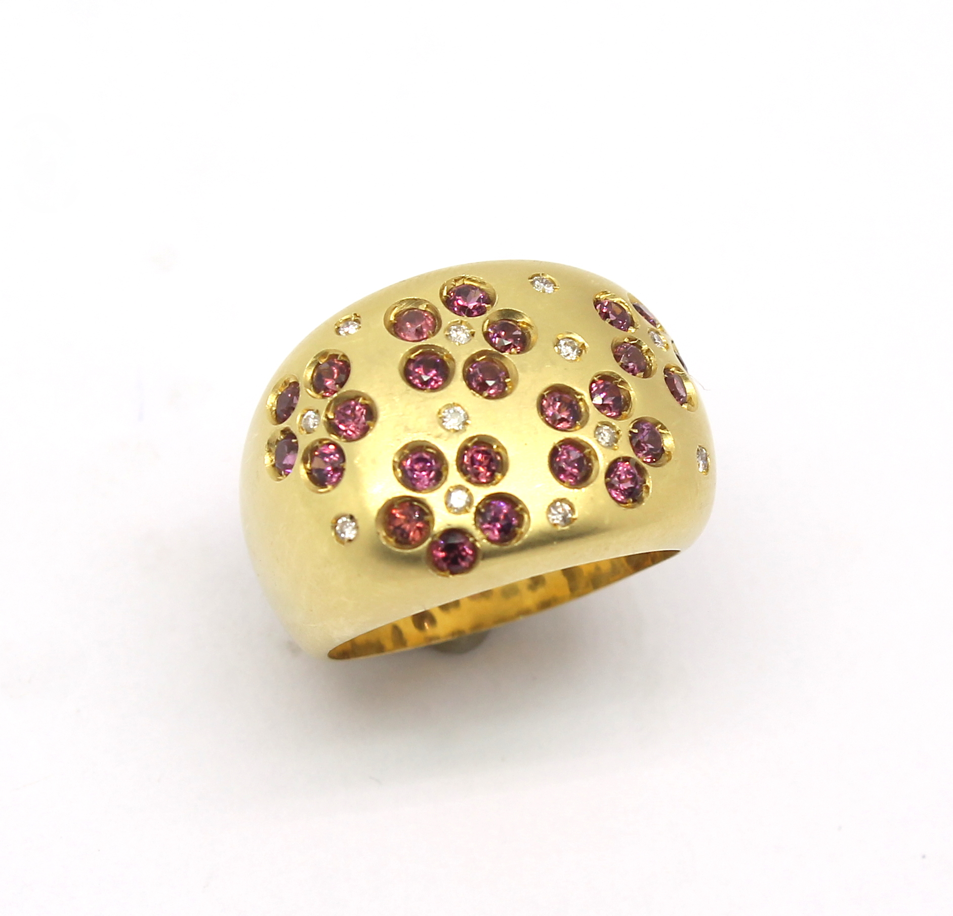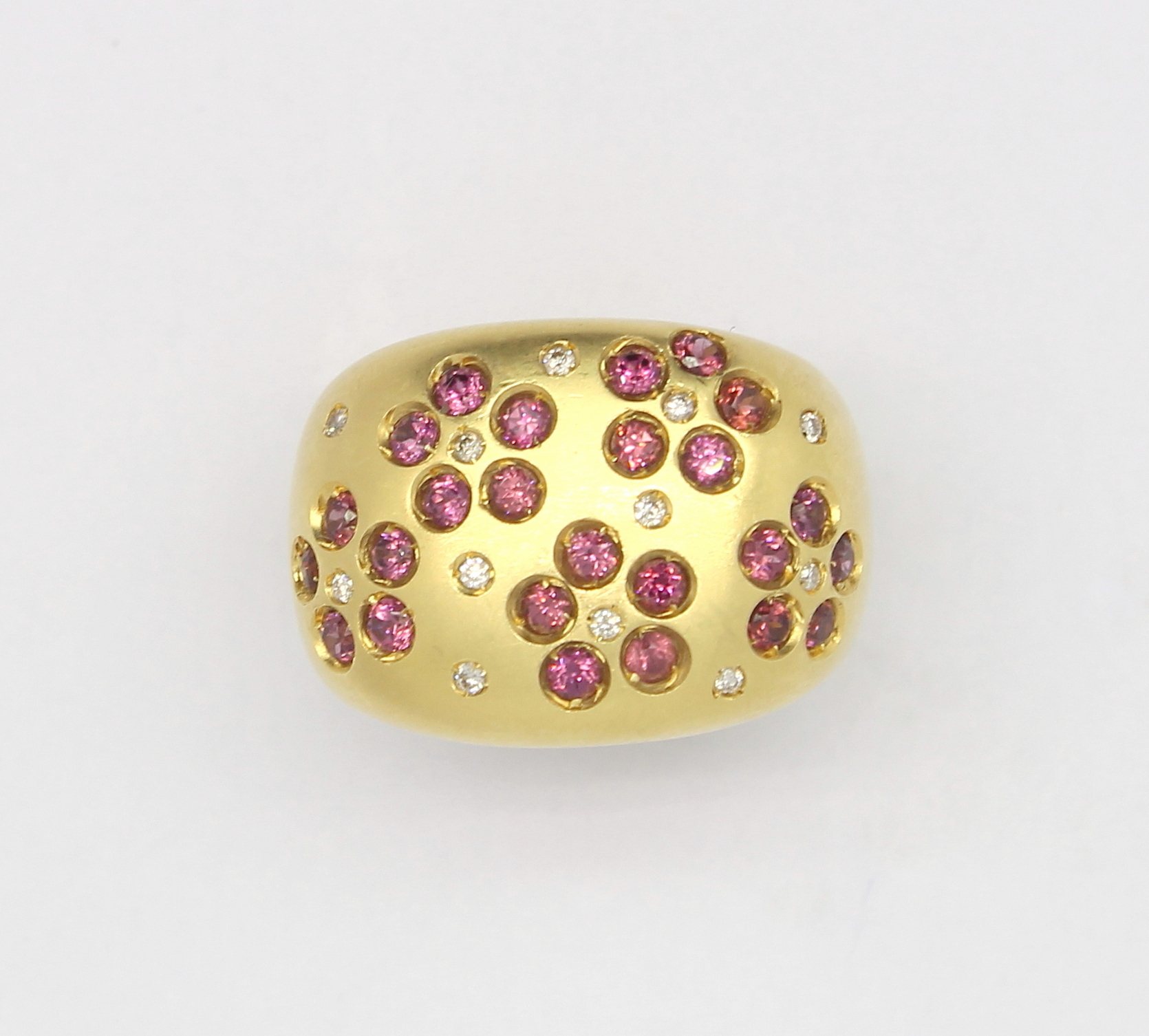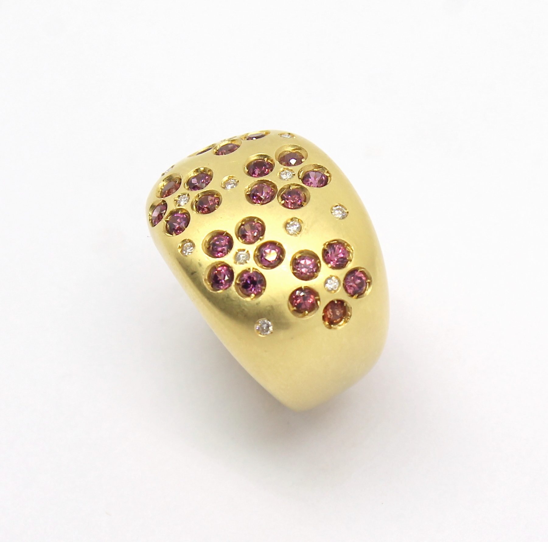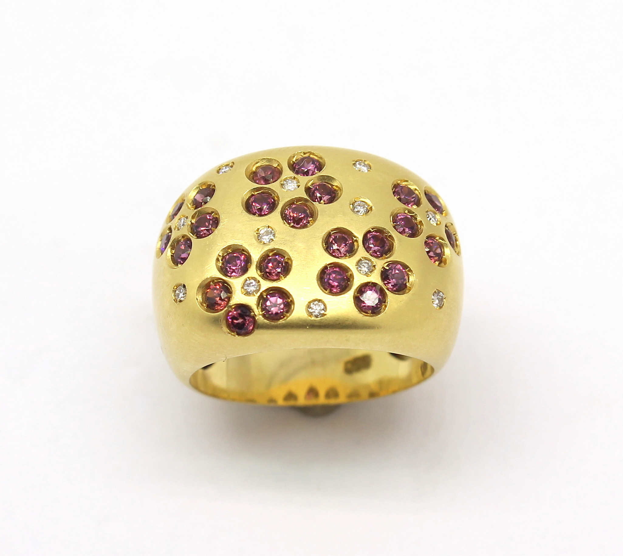 Anel Flores Turmalina Rosa e Diamantes Ouro 18k 750