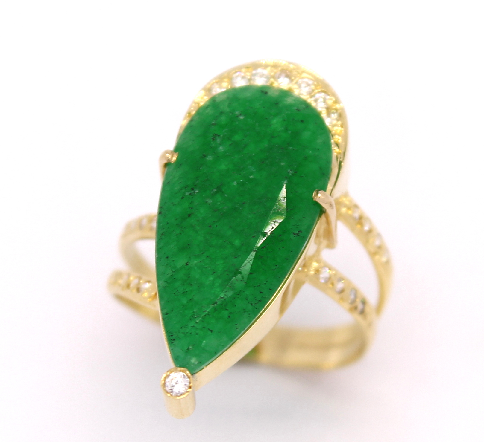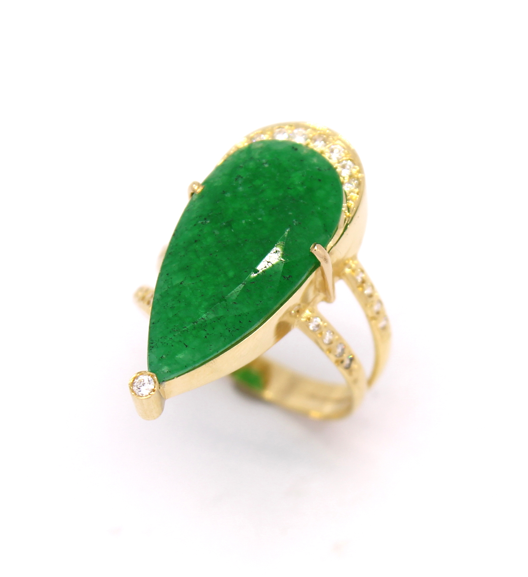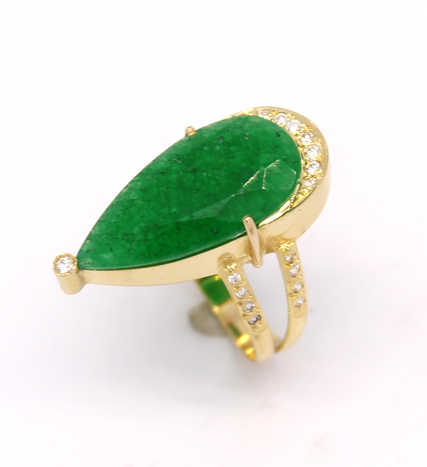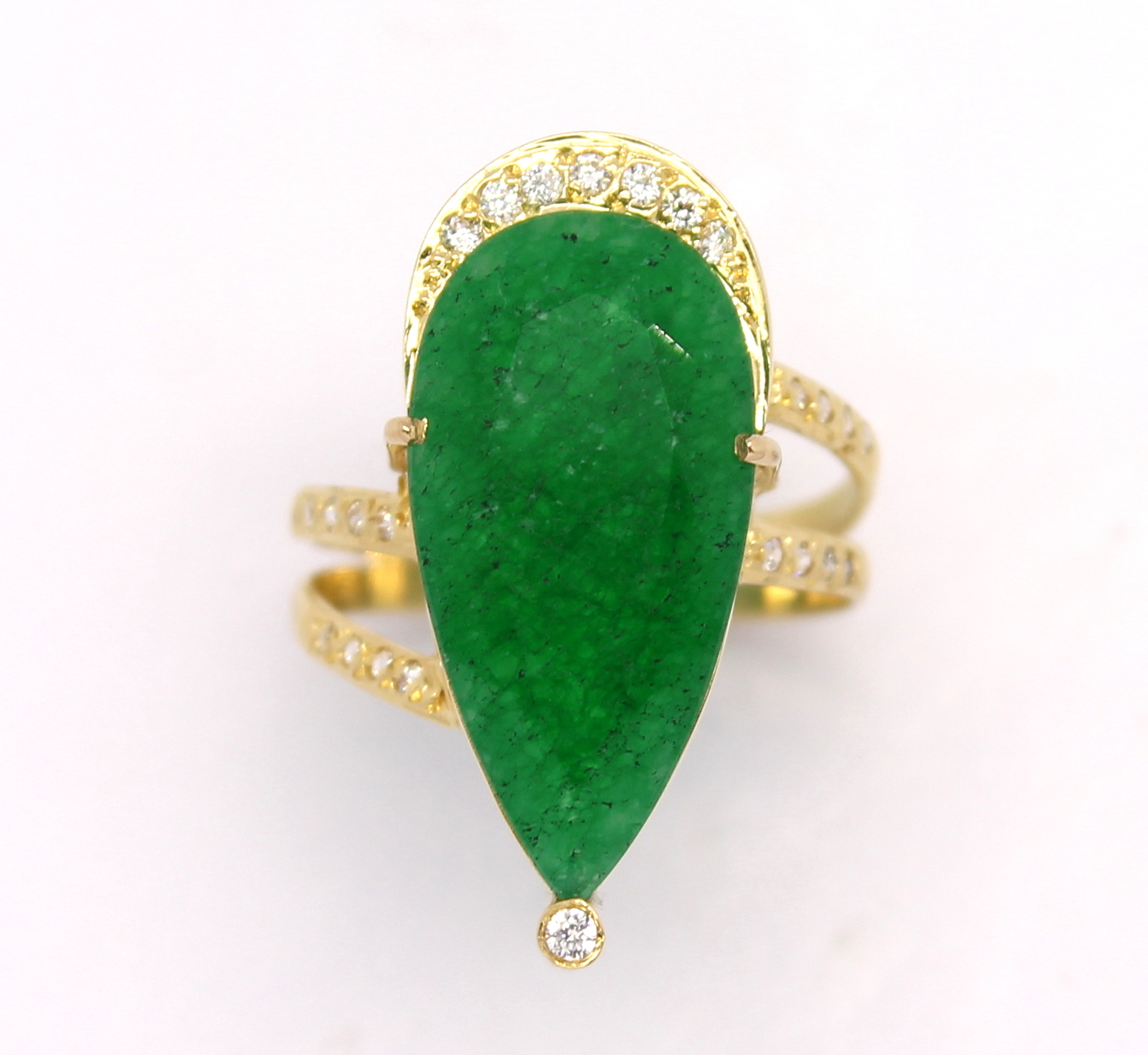 Anel Gota Esmeralda Zircônia Ouro 18k 750