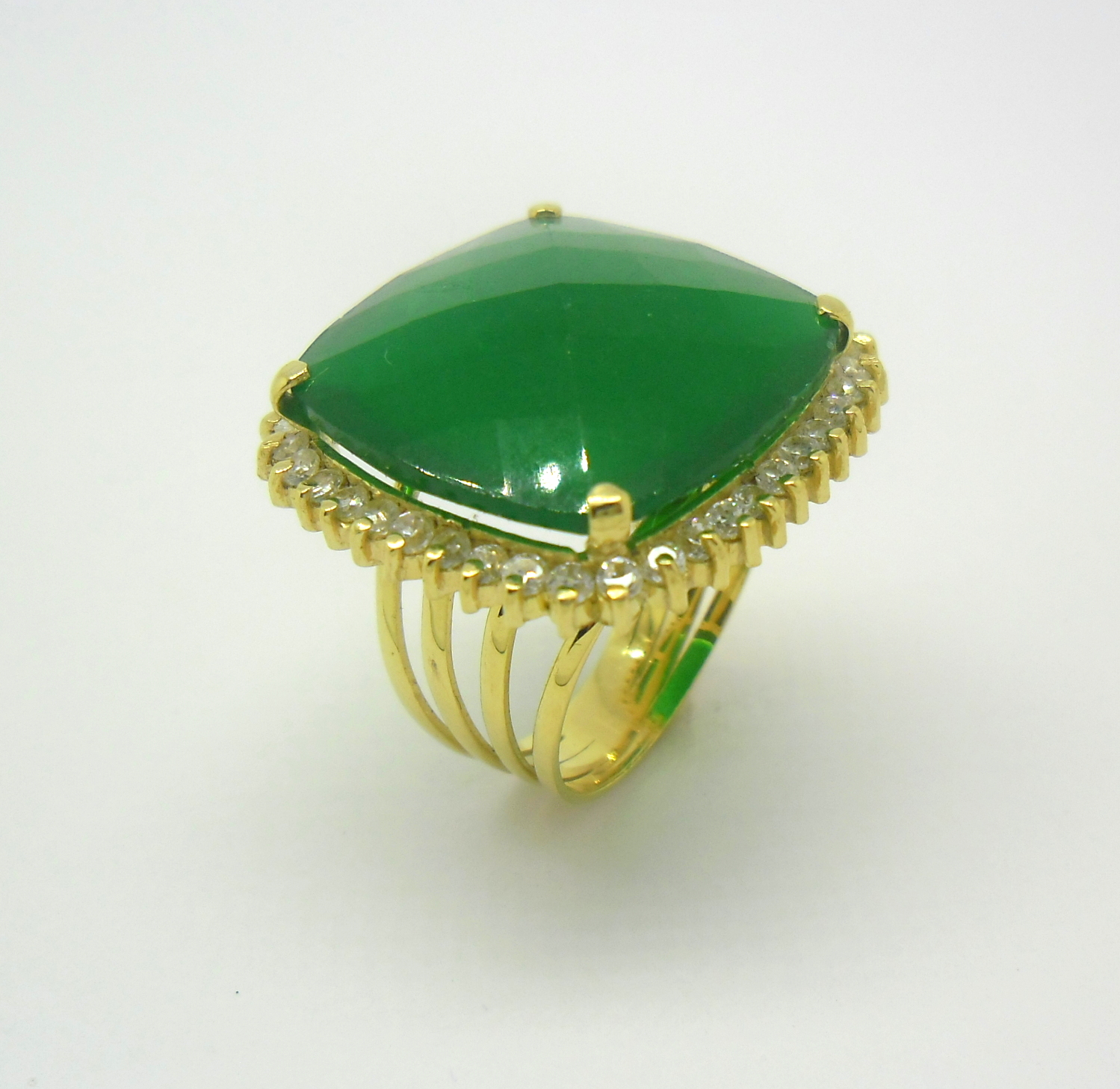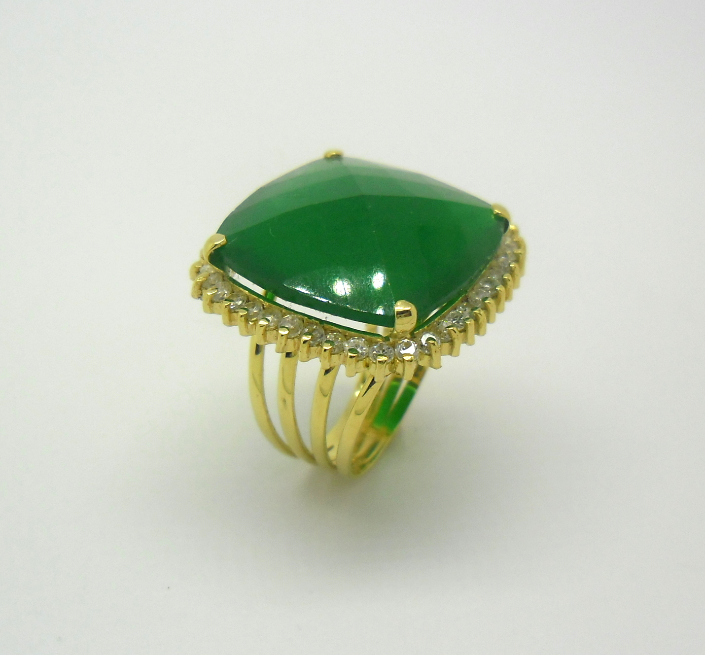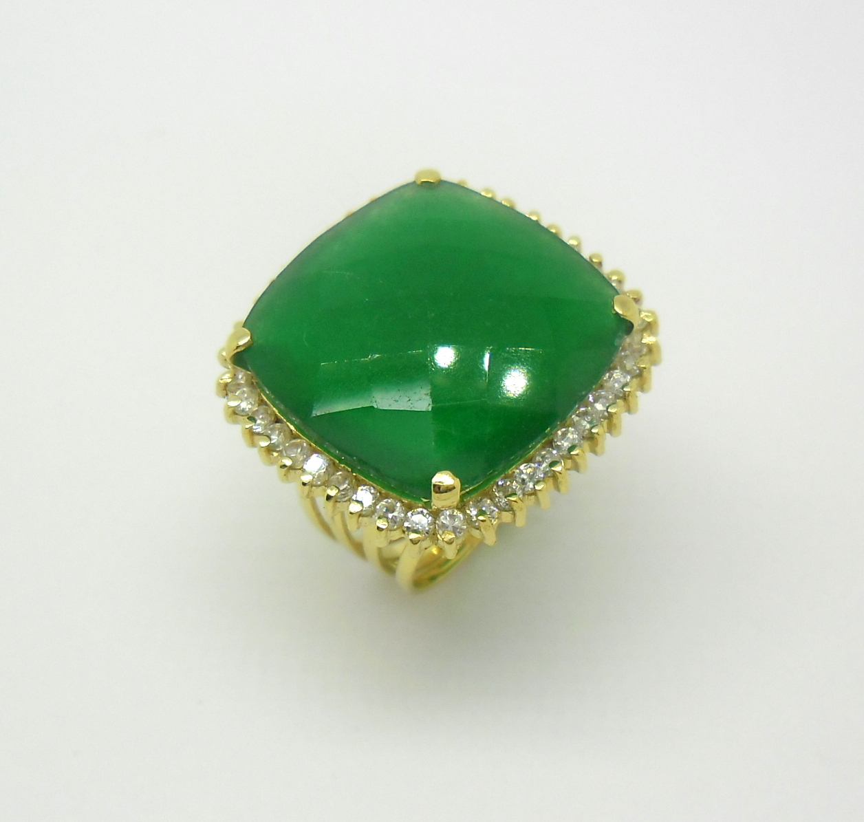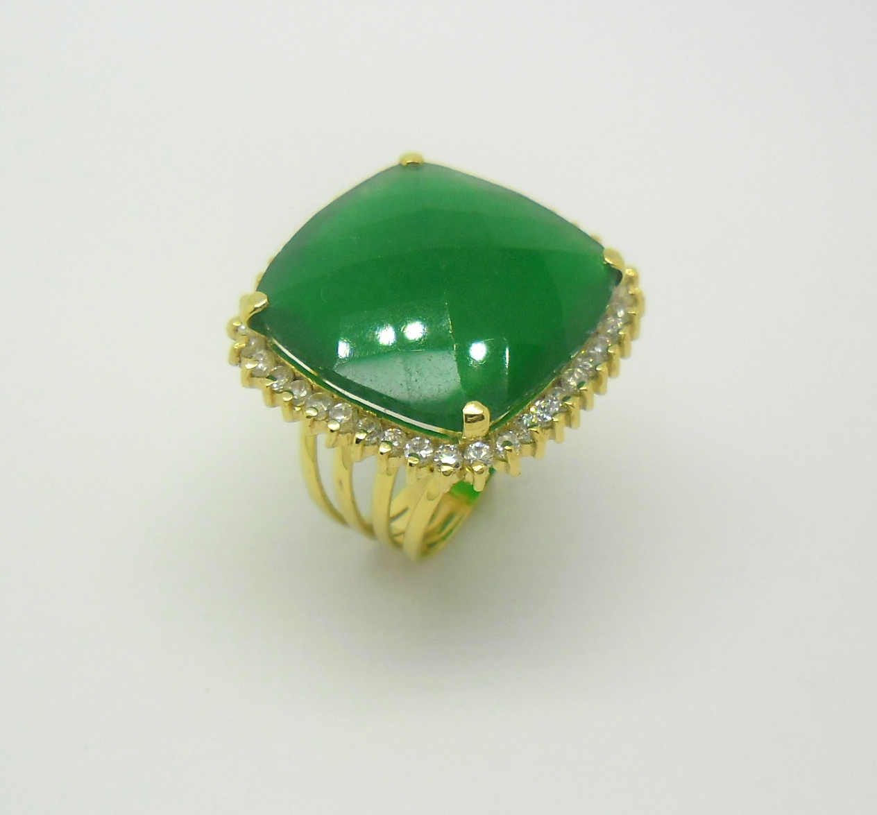 Anel Jade e Zircônios Ouro Amarelo 18k 750