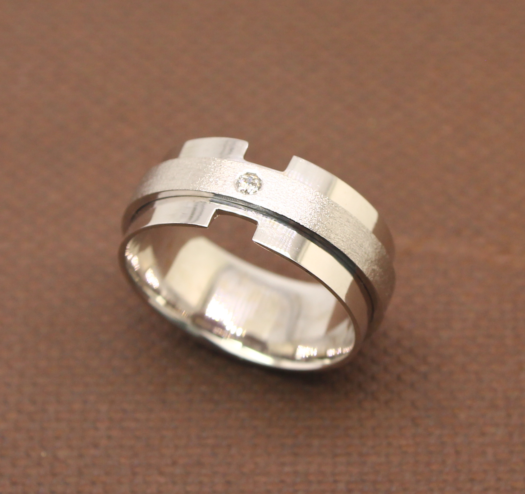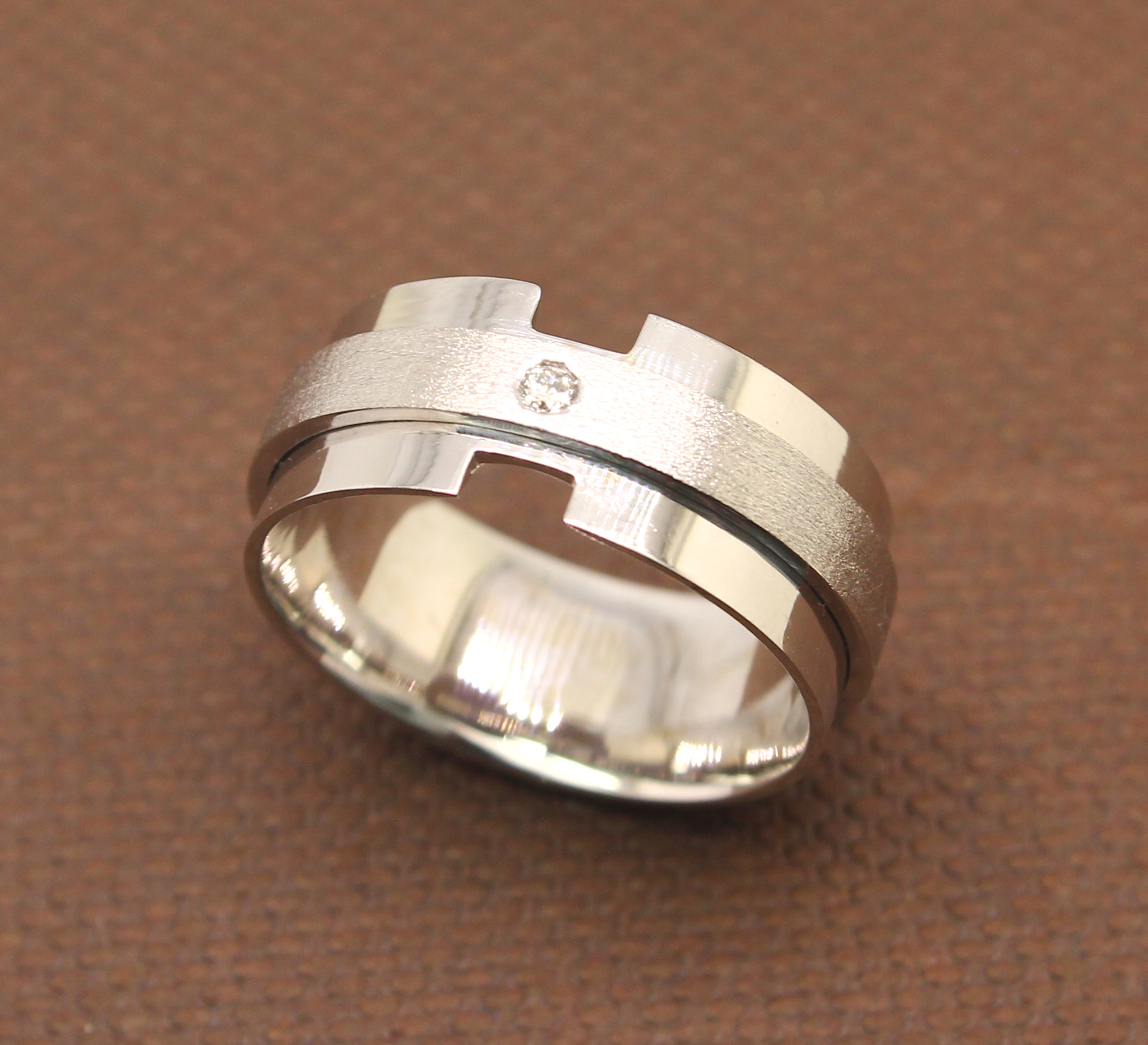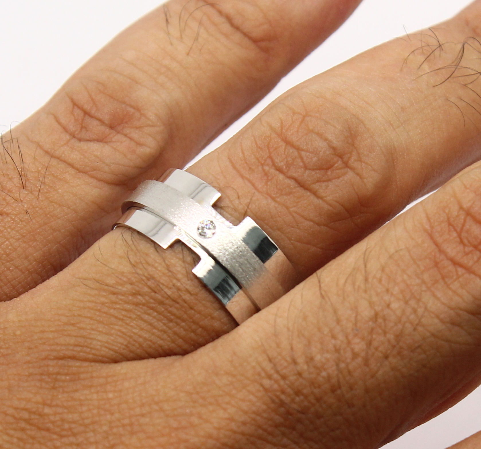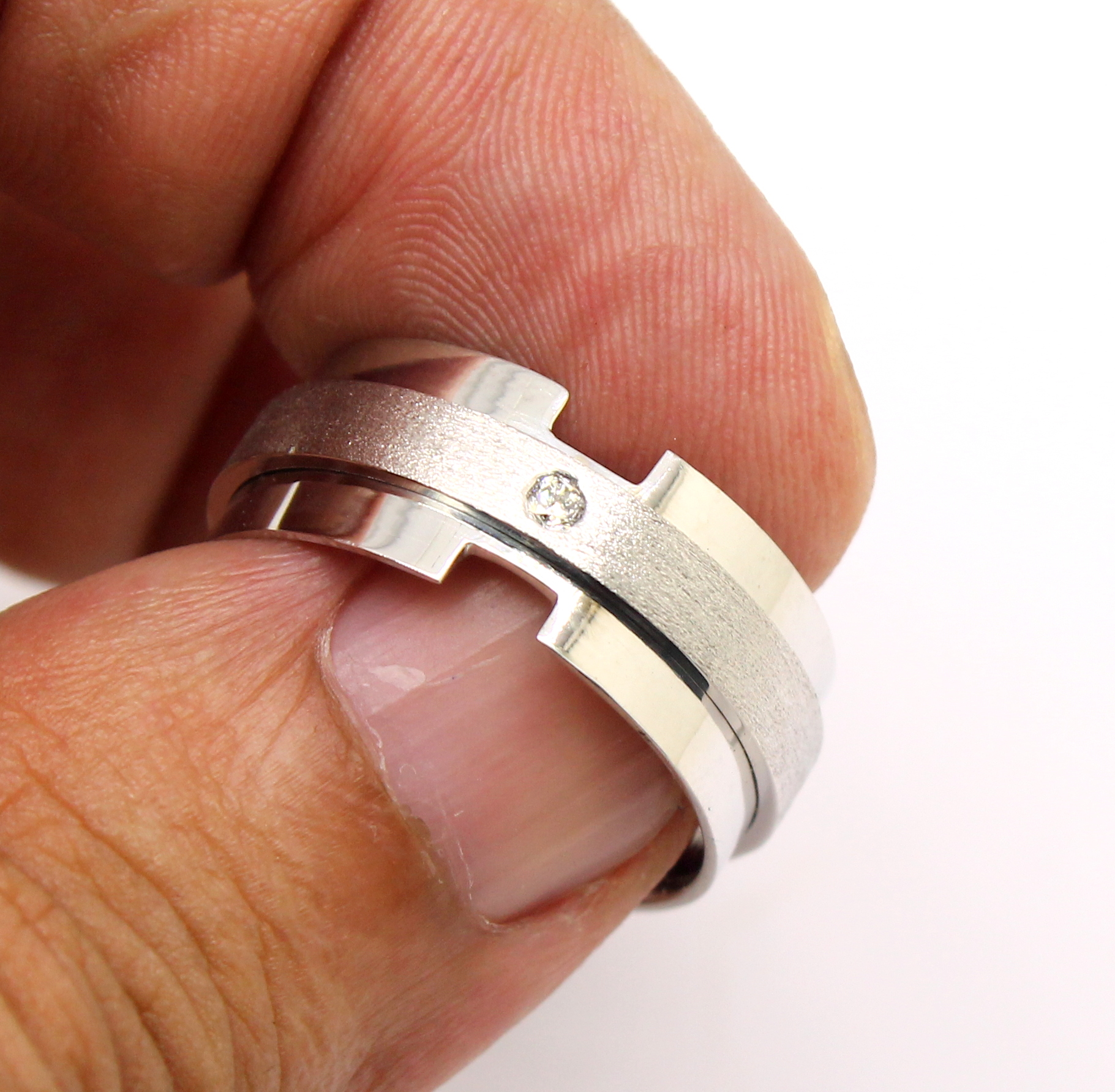 Anel Masculino Diamante 12 gramas Ouro Branco 18k