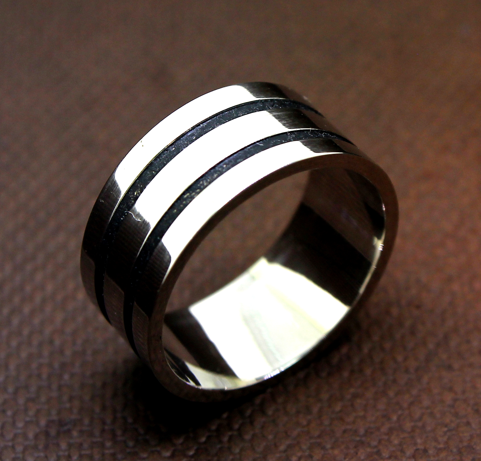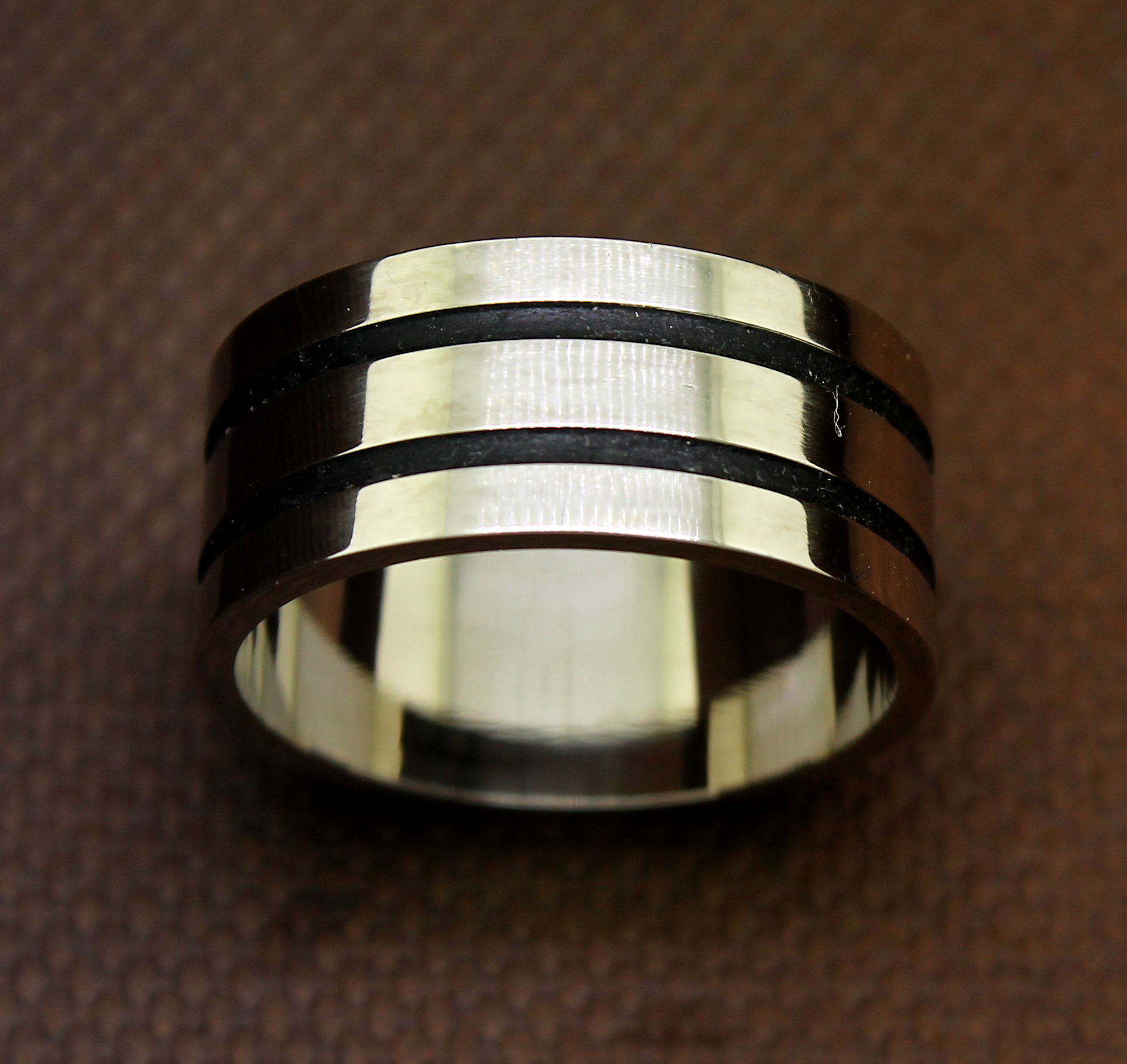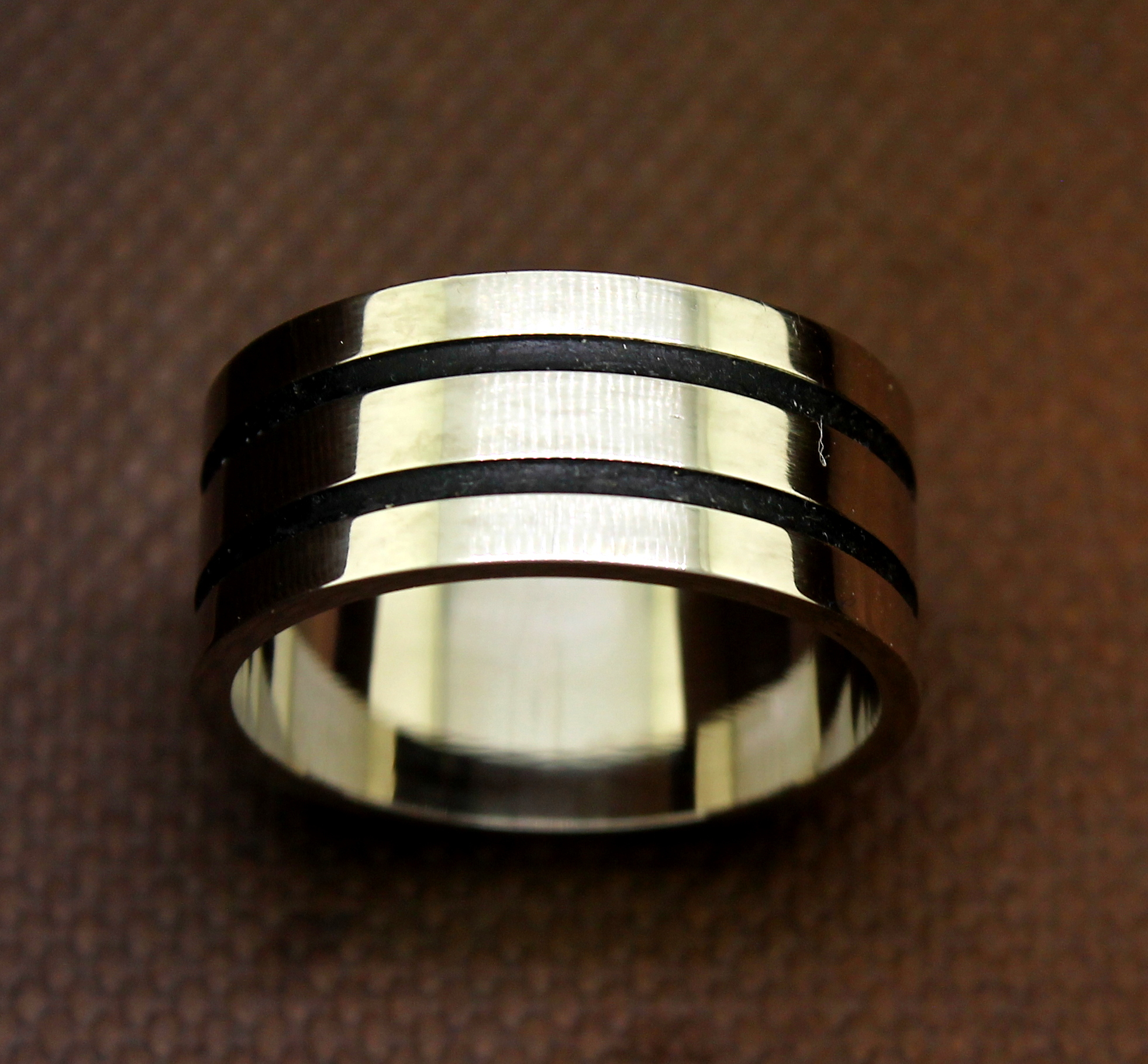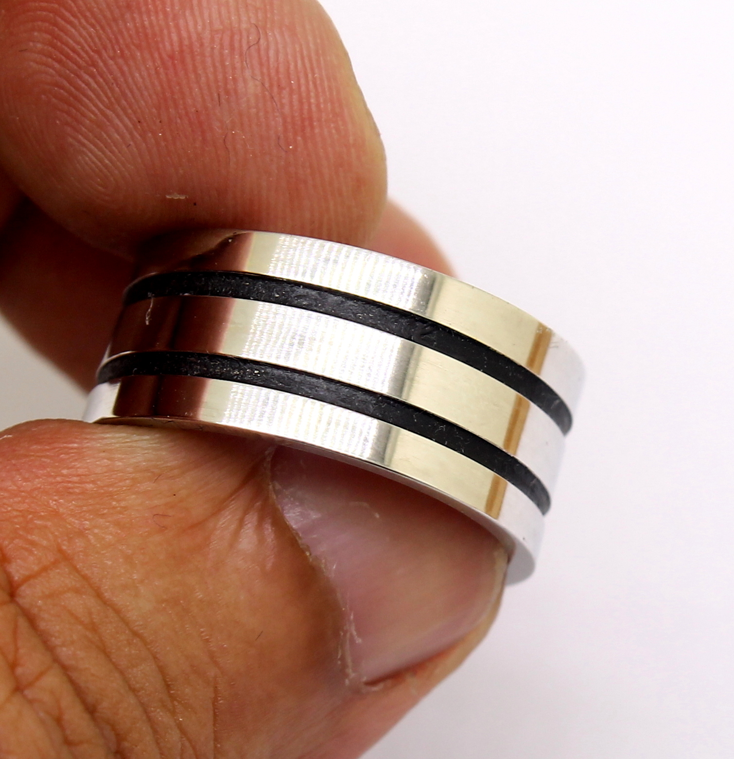 Anel Masculino Listrado Platina