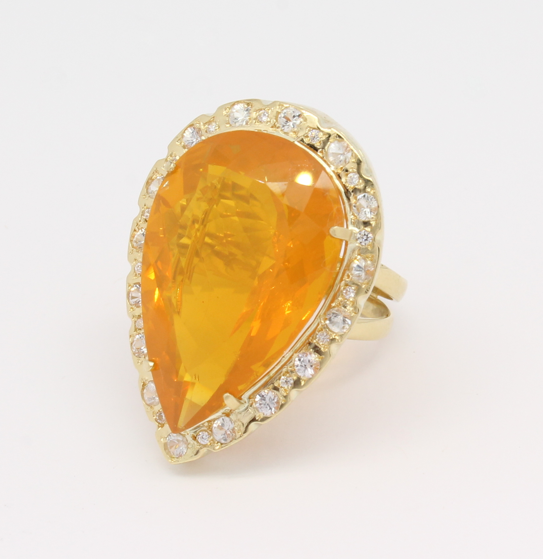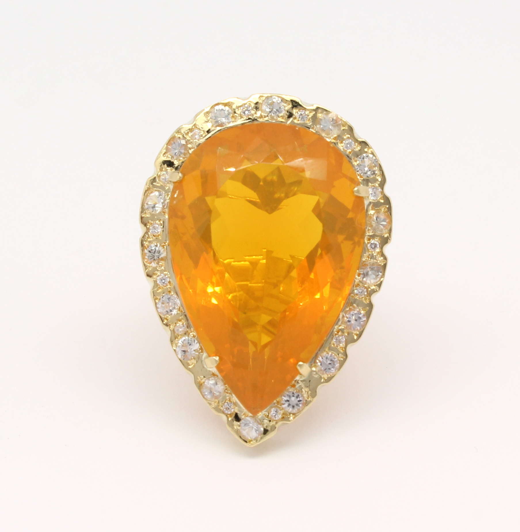 Anel Opala de Fogo e Diamantes Ouro 18k 750