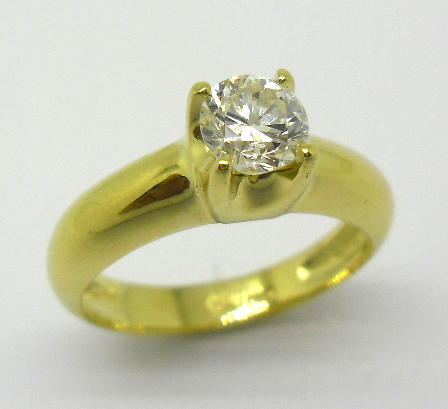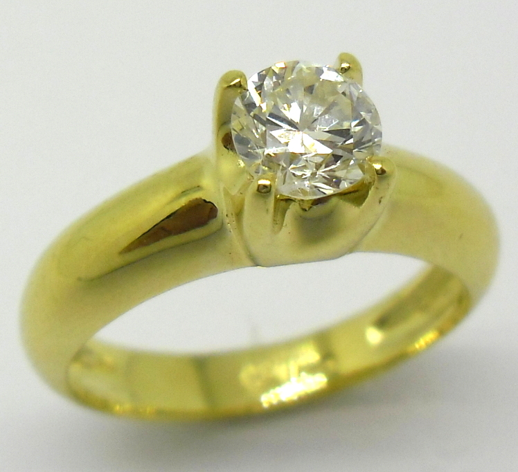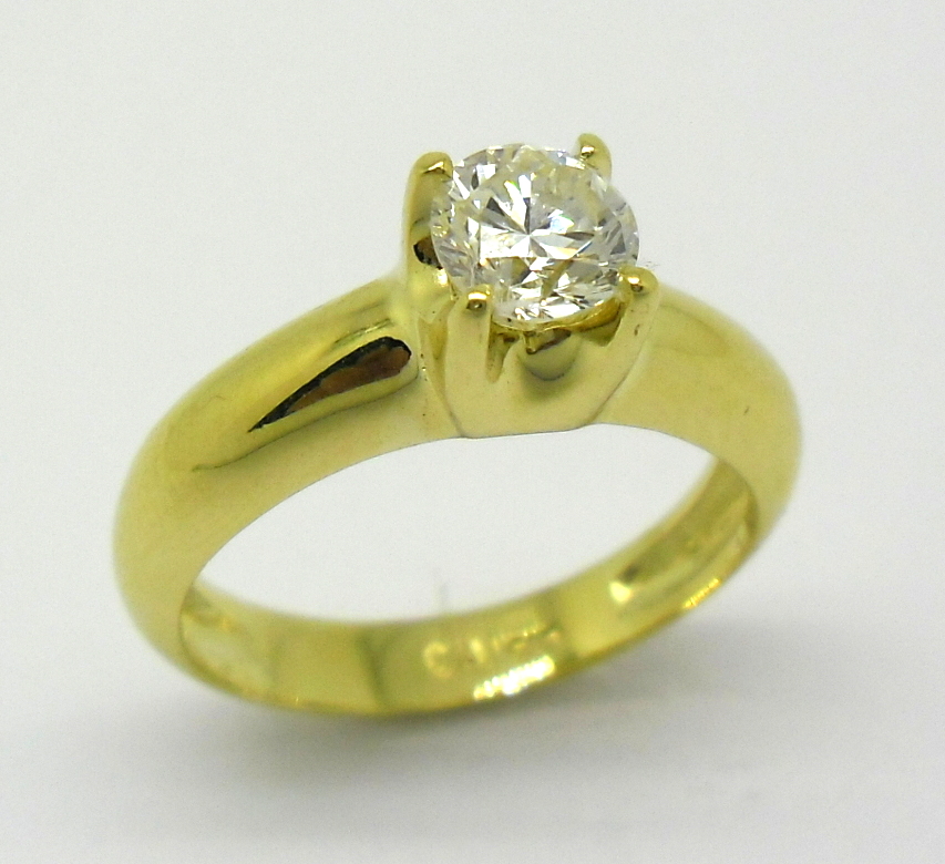 Anel Solitário 1ct Diamante Ouro Amarelo 18k 750