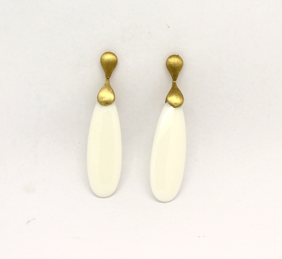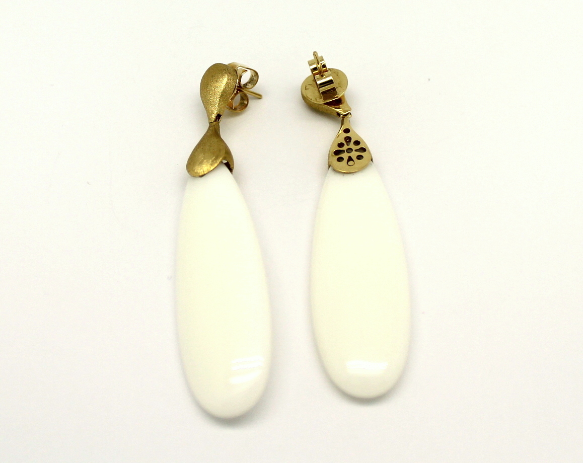 Brinco Coral Branco Gota Ouro Amarelo 18k 750