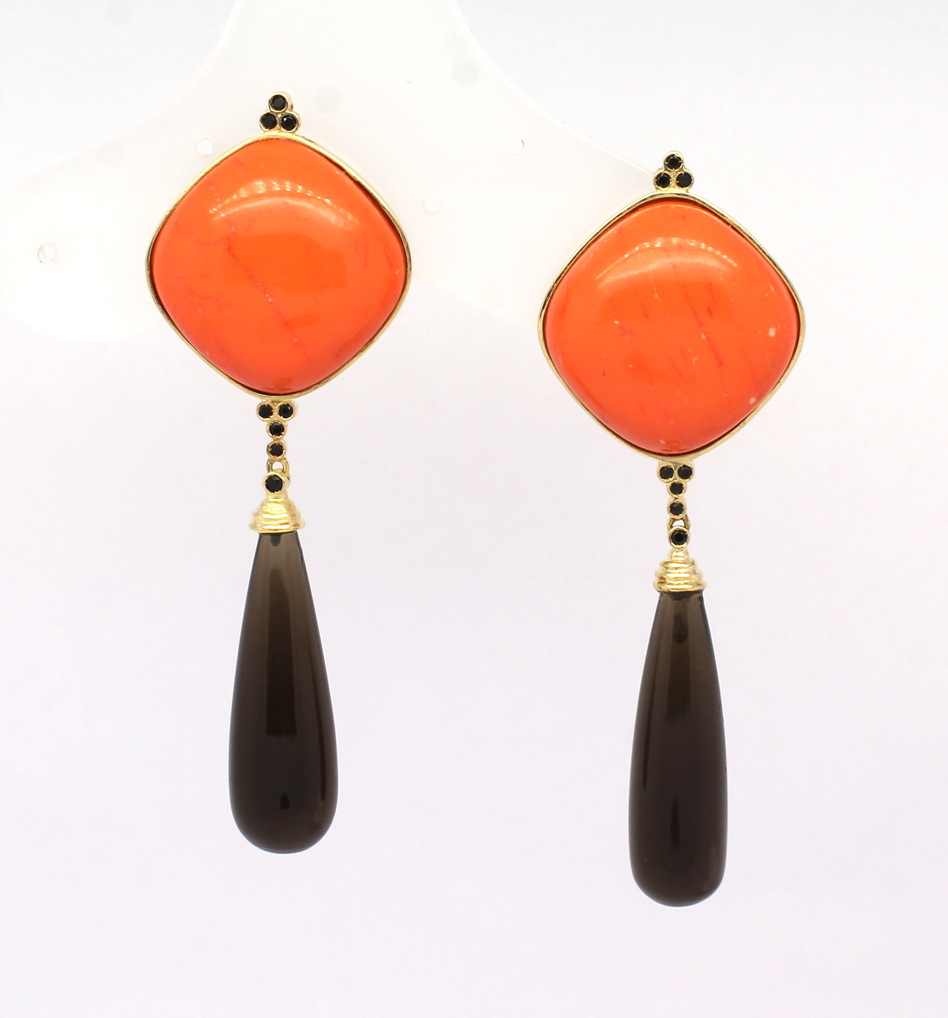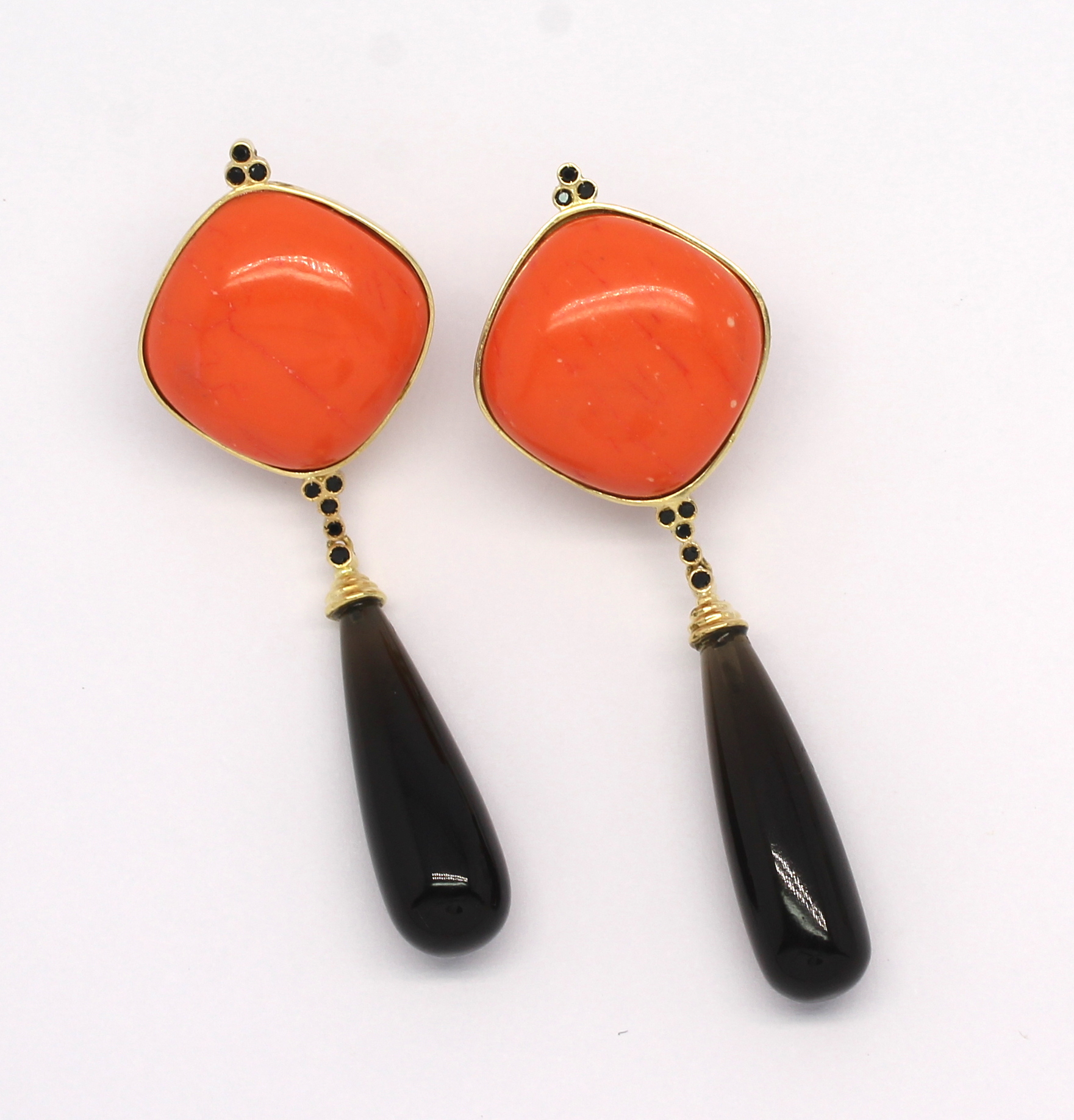 Brinco Coral Cristal e Espinélio Ouro Amarelo 18k 750