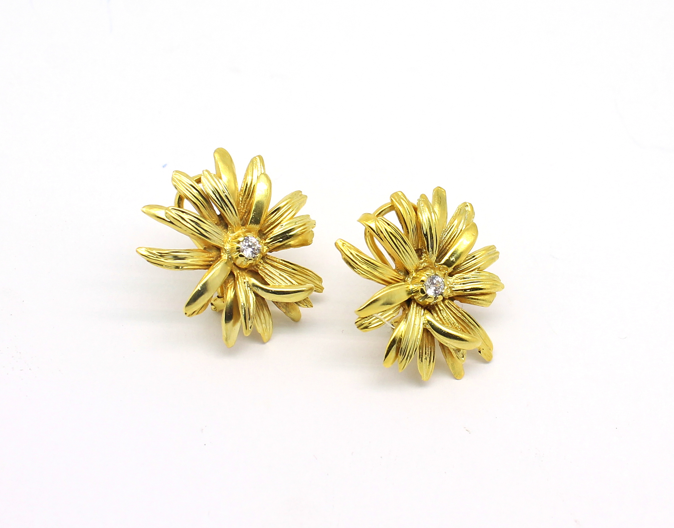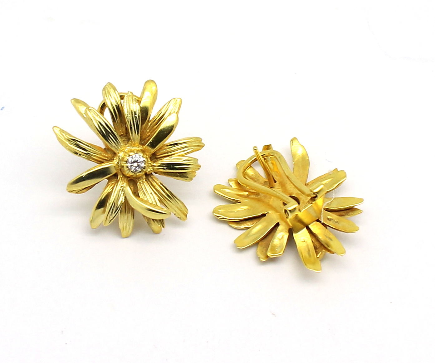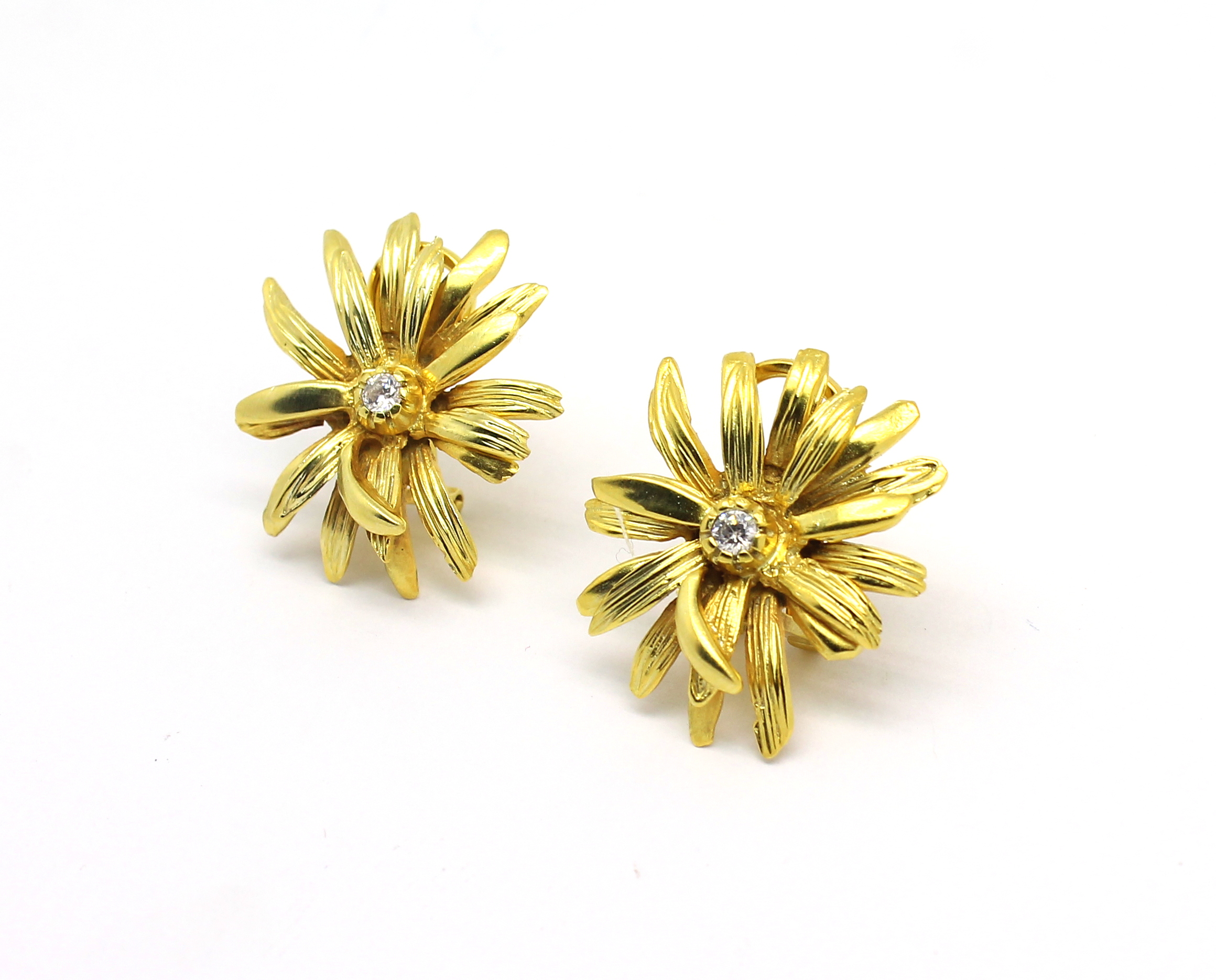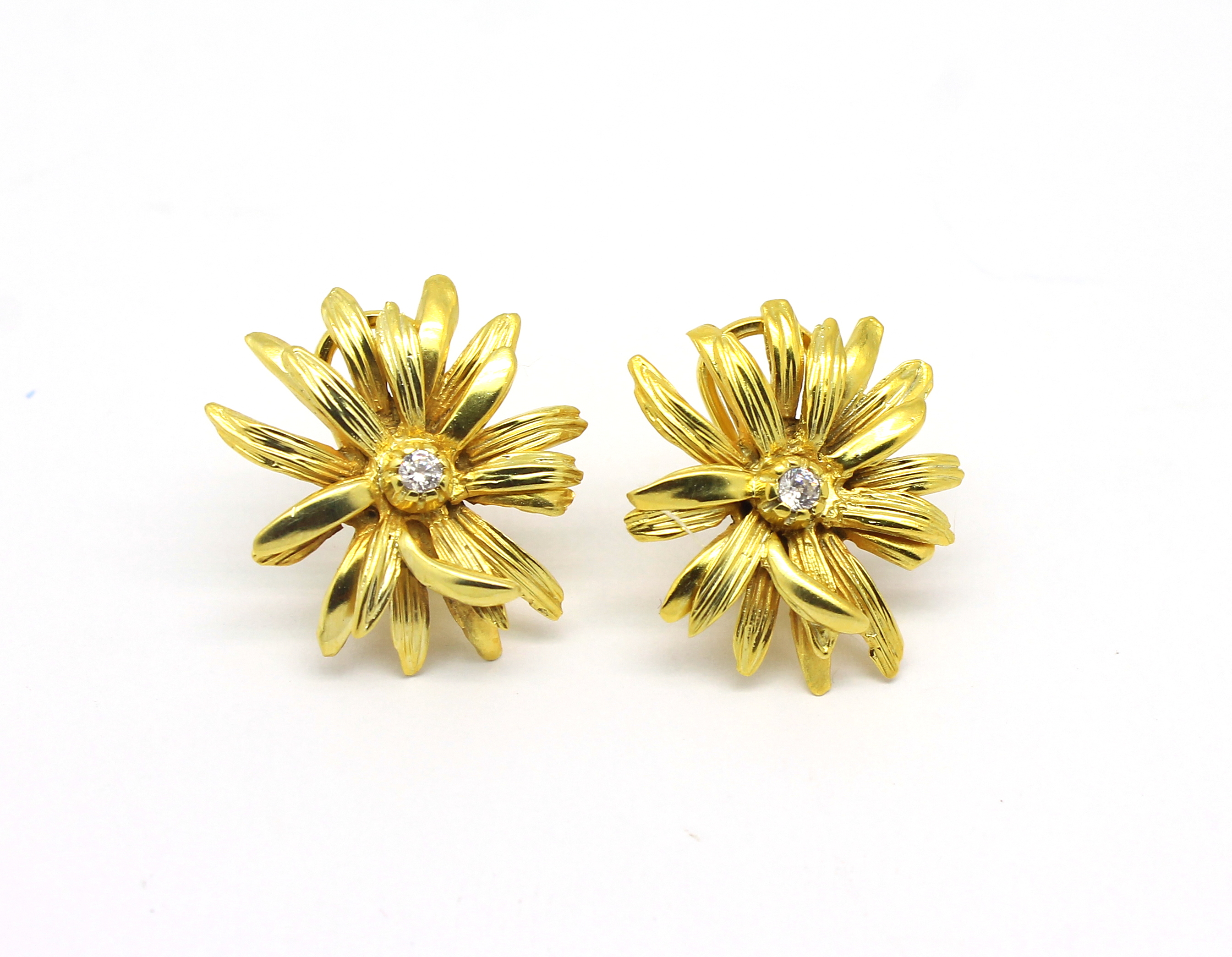 Brinco de Flor com Clips Zircônias Ouro 18k 750