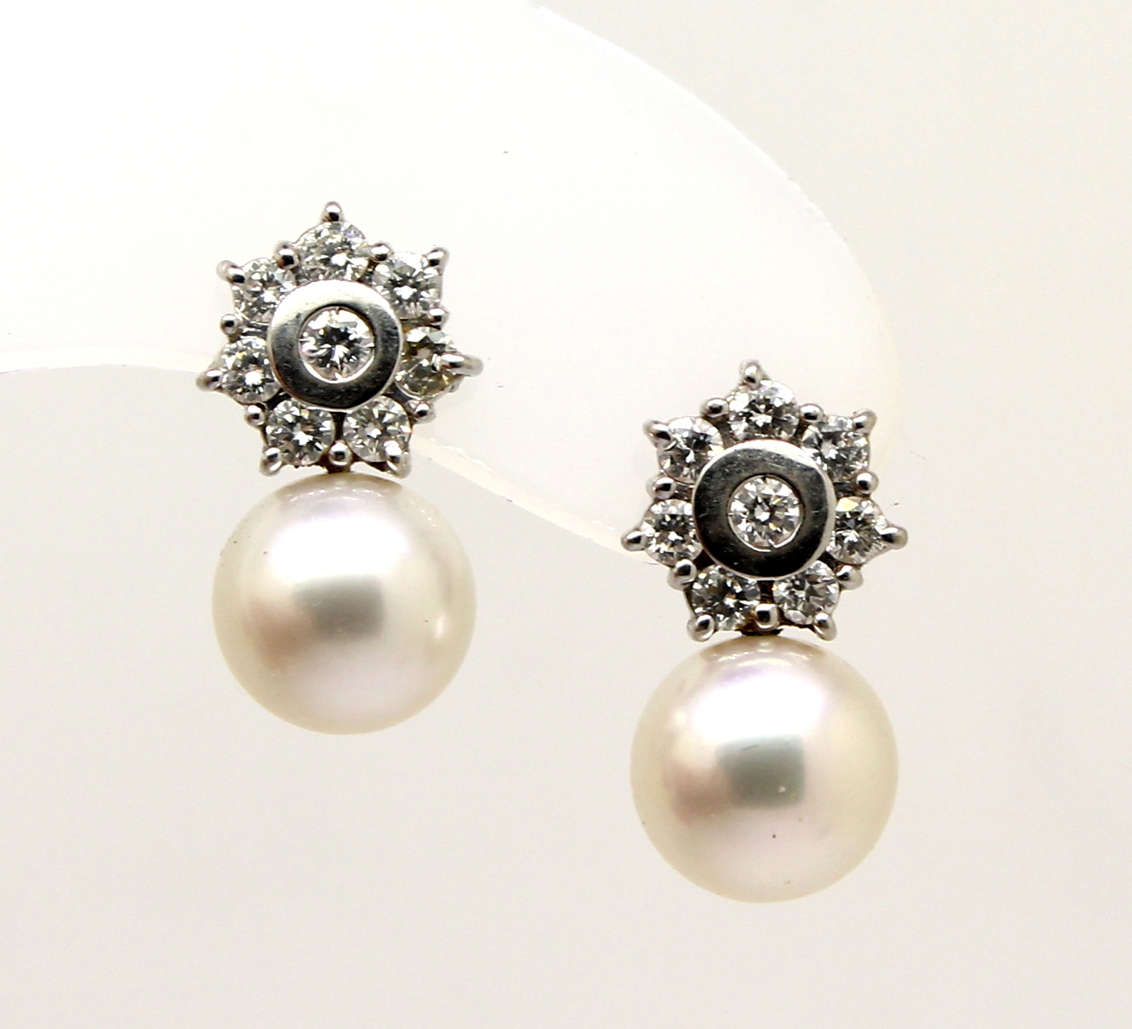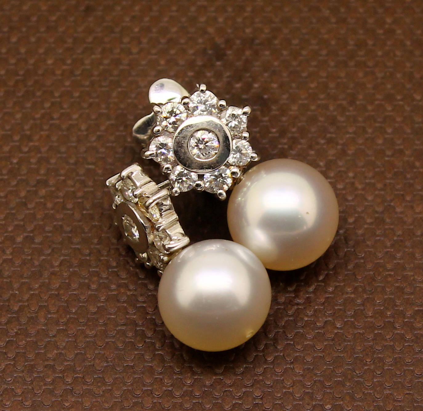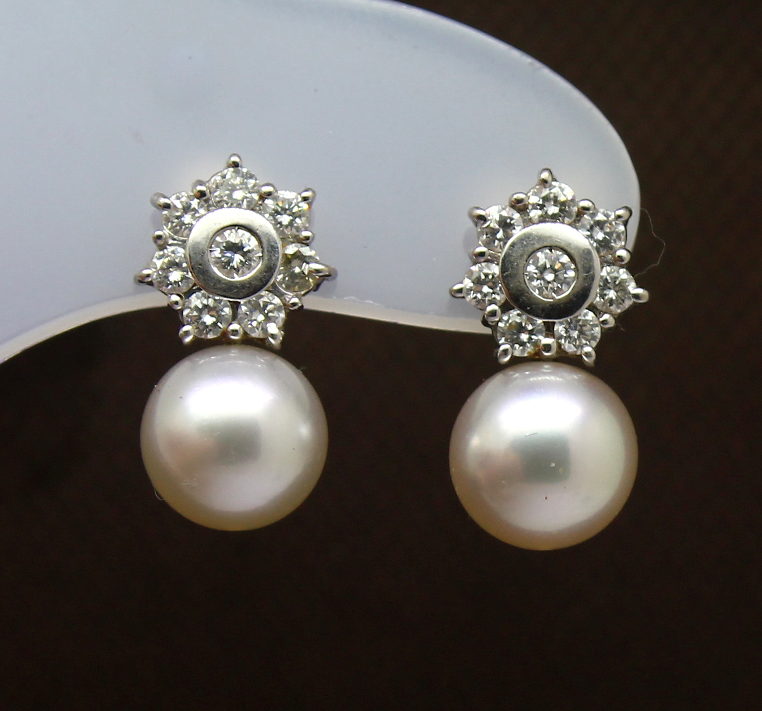 Brinco de Pérola Diamantes Ouro Branco 18k