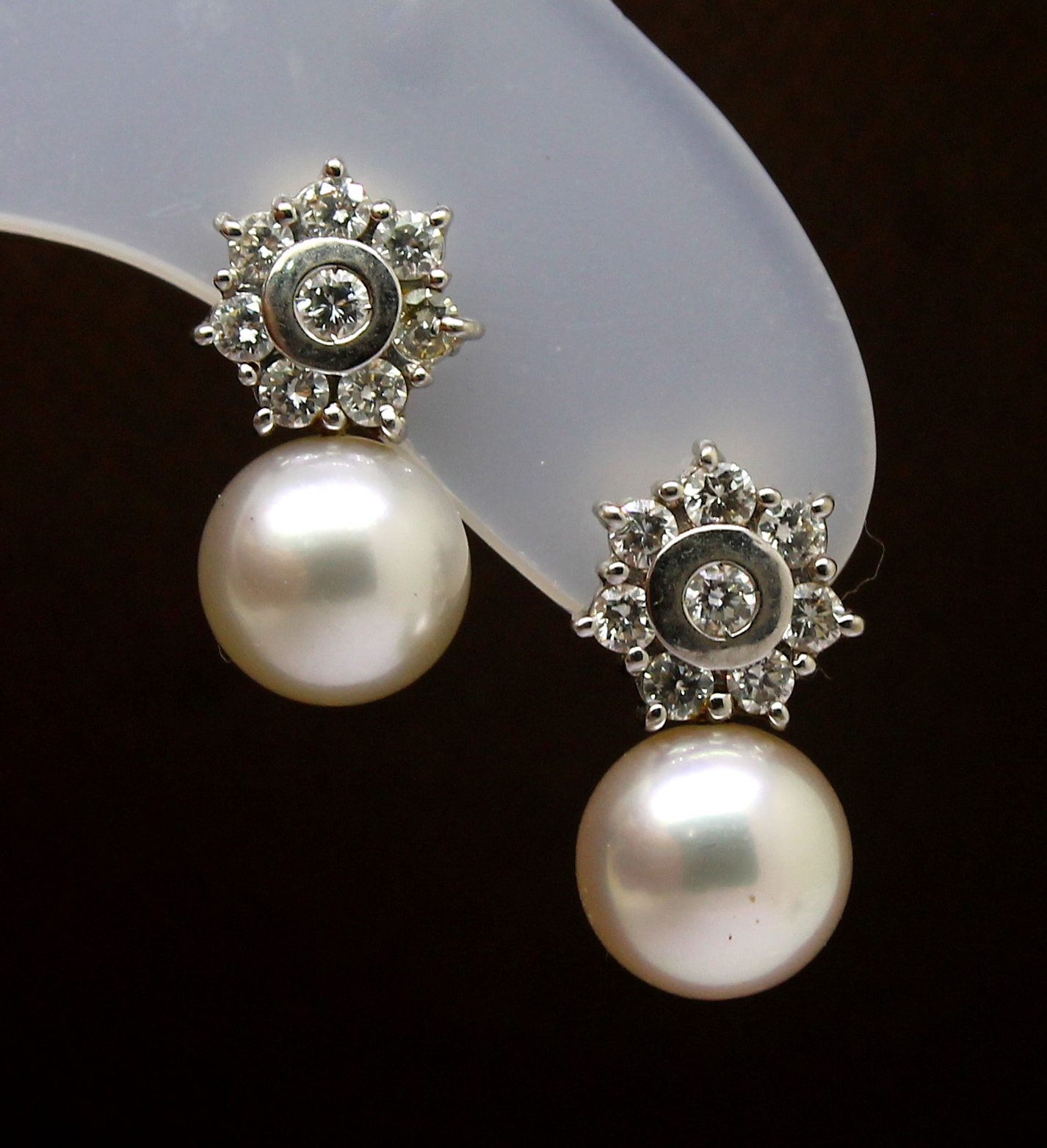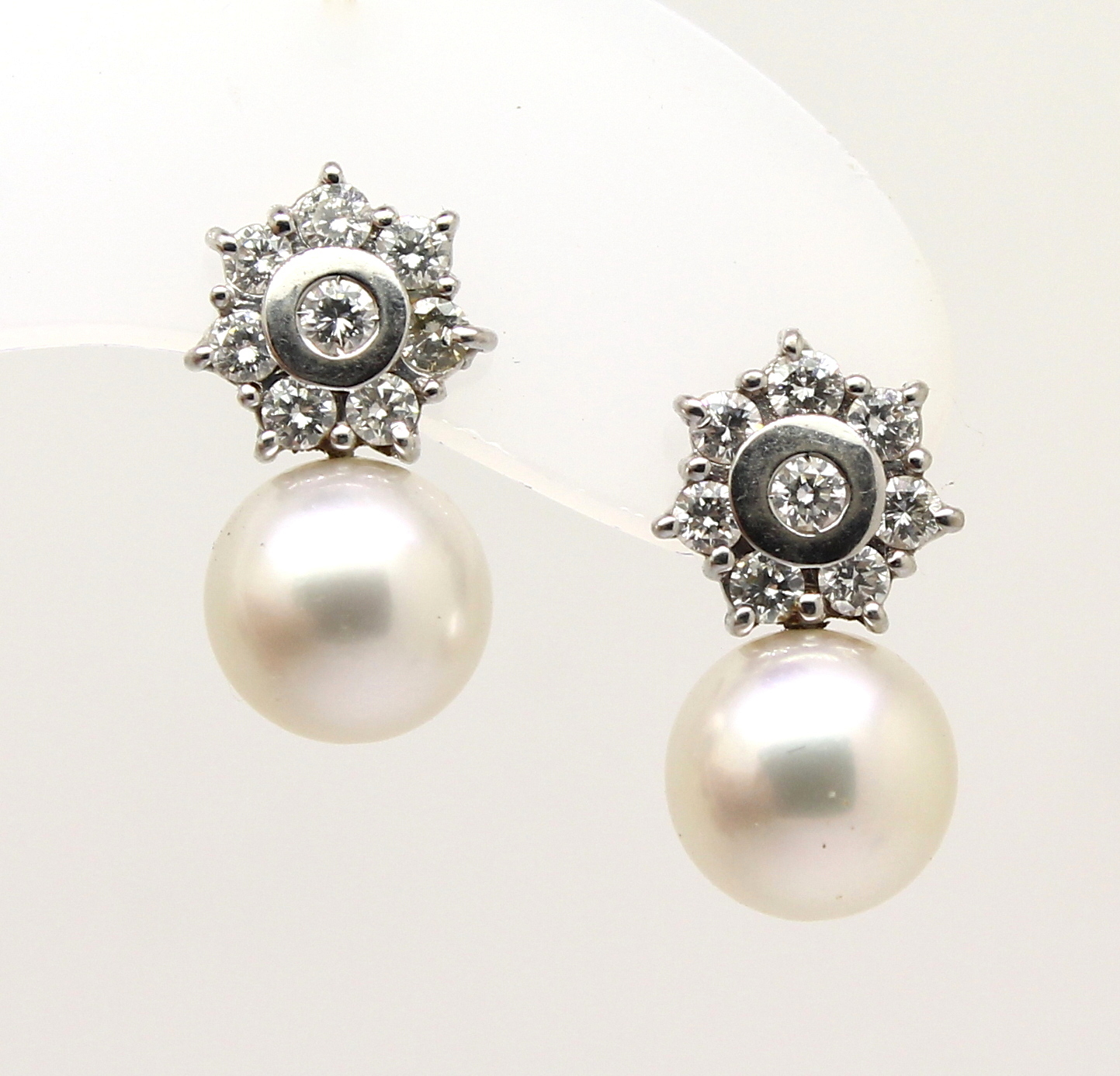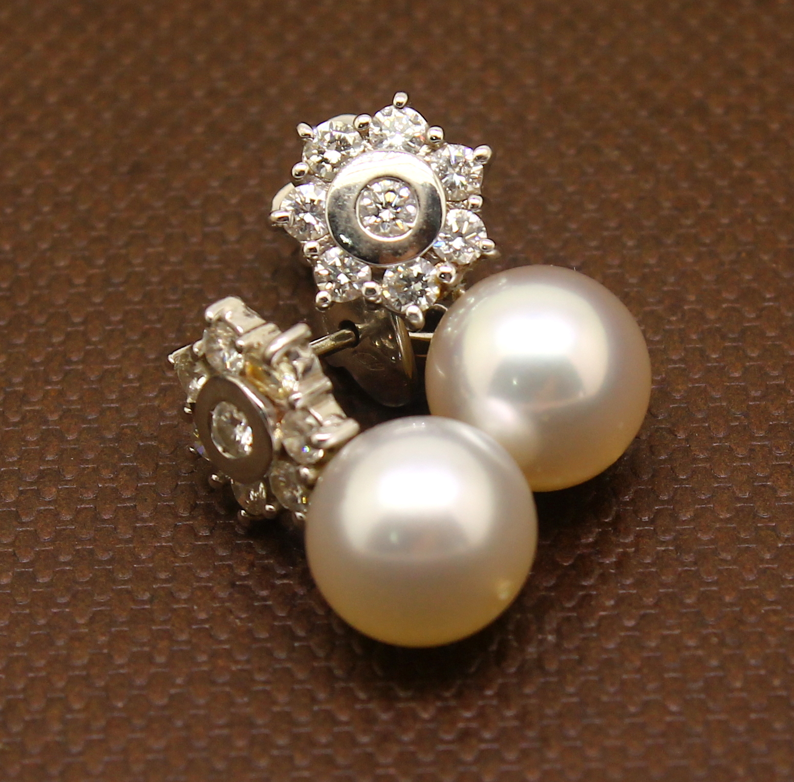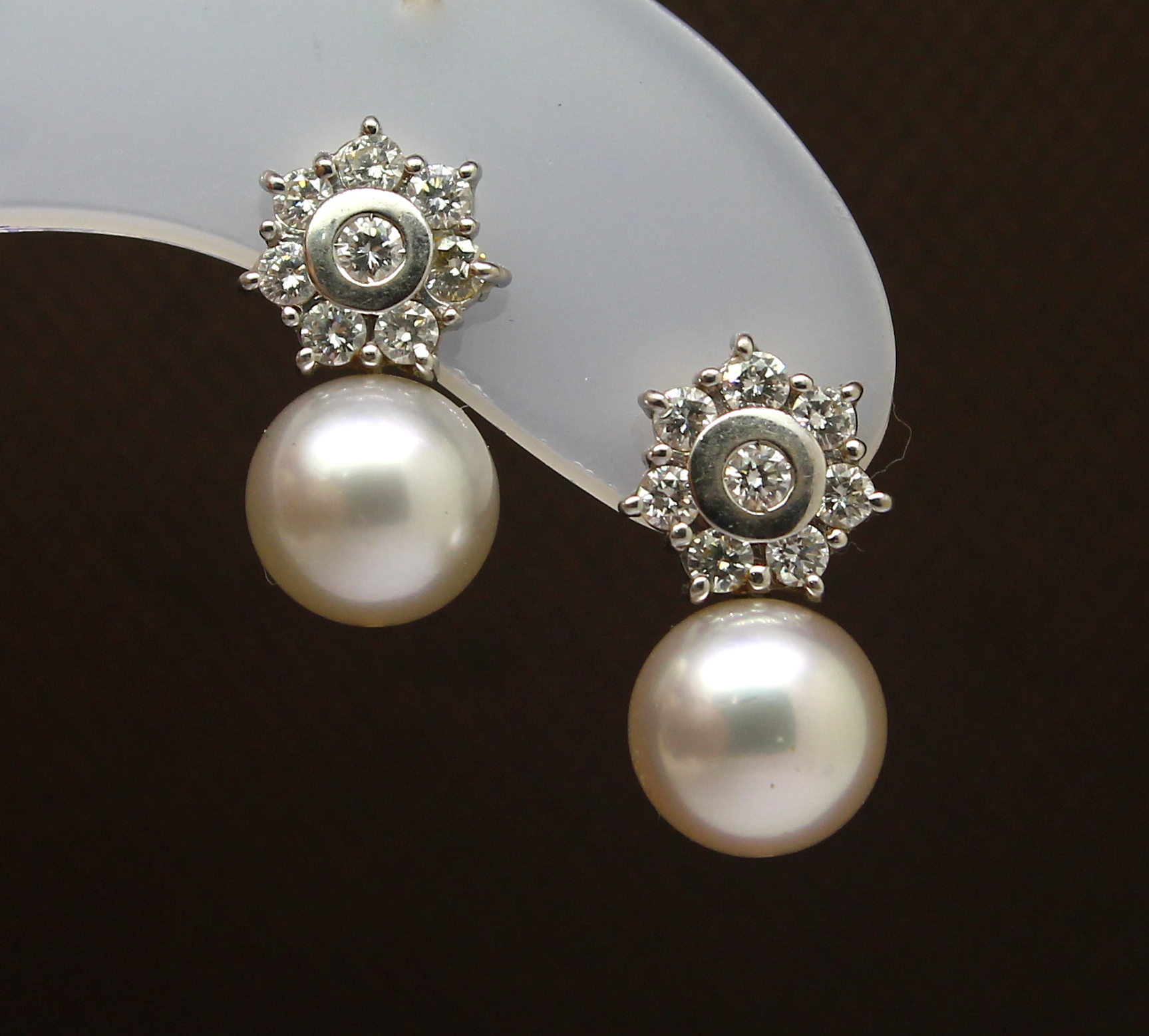 Brinco de Pérola Diamantes Ouro Branco 18k