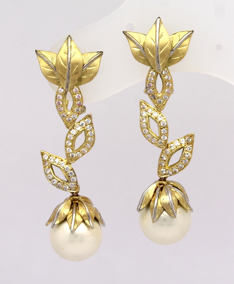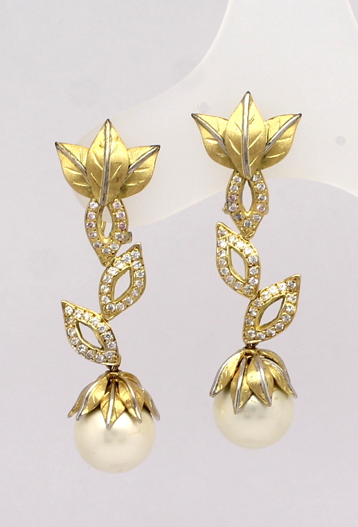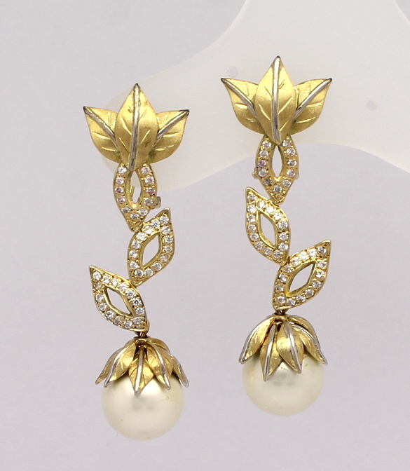 Brinco Floral Diamantes e Pérola Ouro Amarelo e Ouro Branco 18k 750