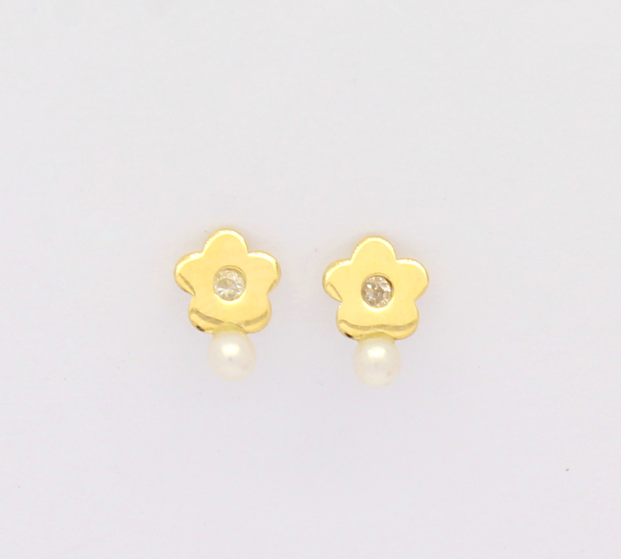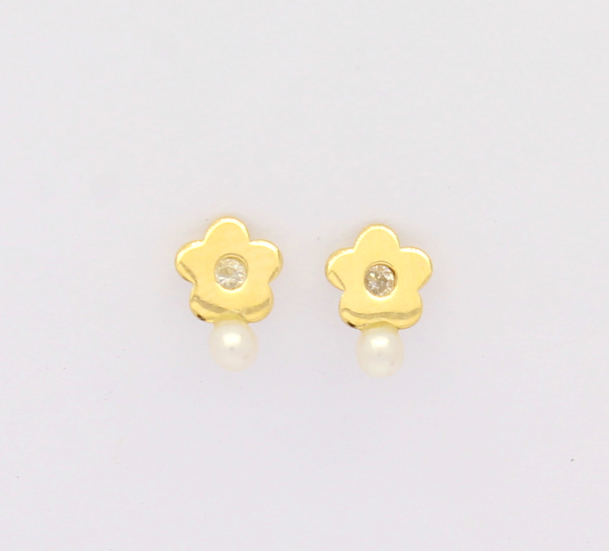 Brinco Infantil Flor Diamante e Pérola Ouro 18k 750