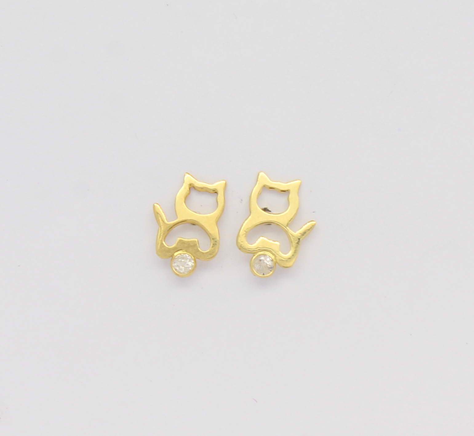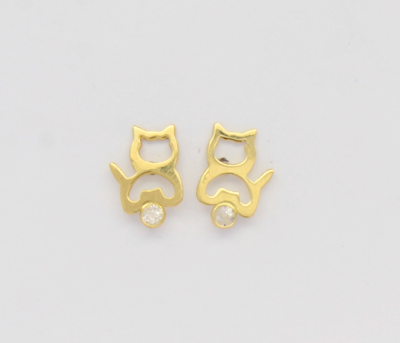 Brinco Infantil Gatinho Diamante Ouro 18k 750