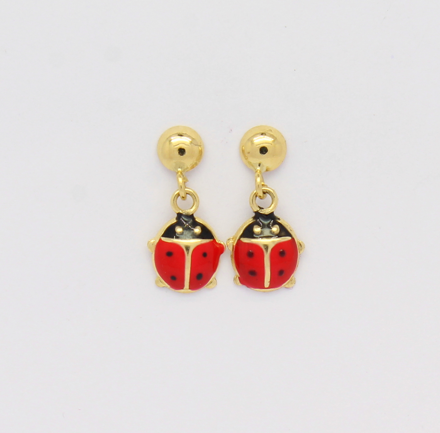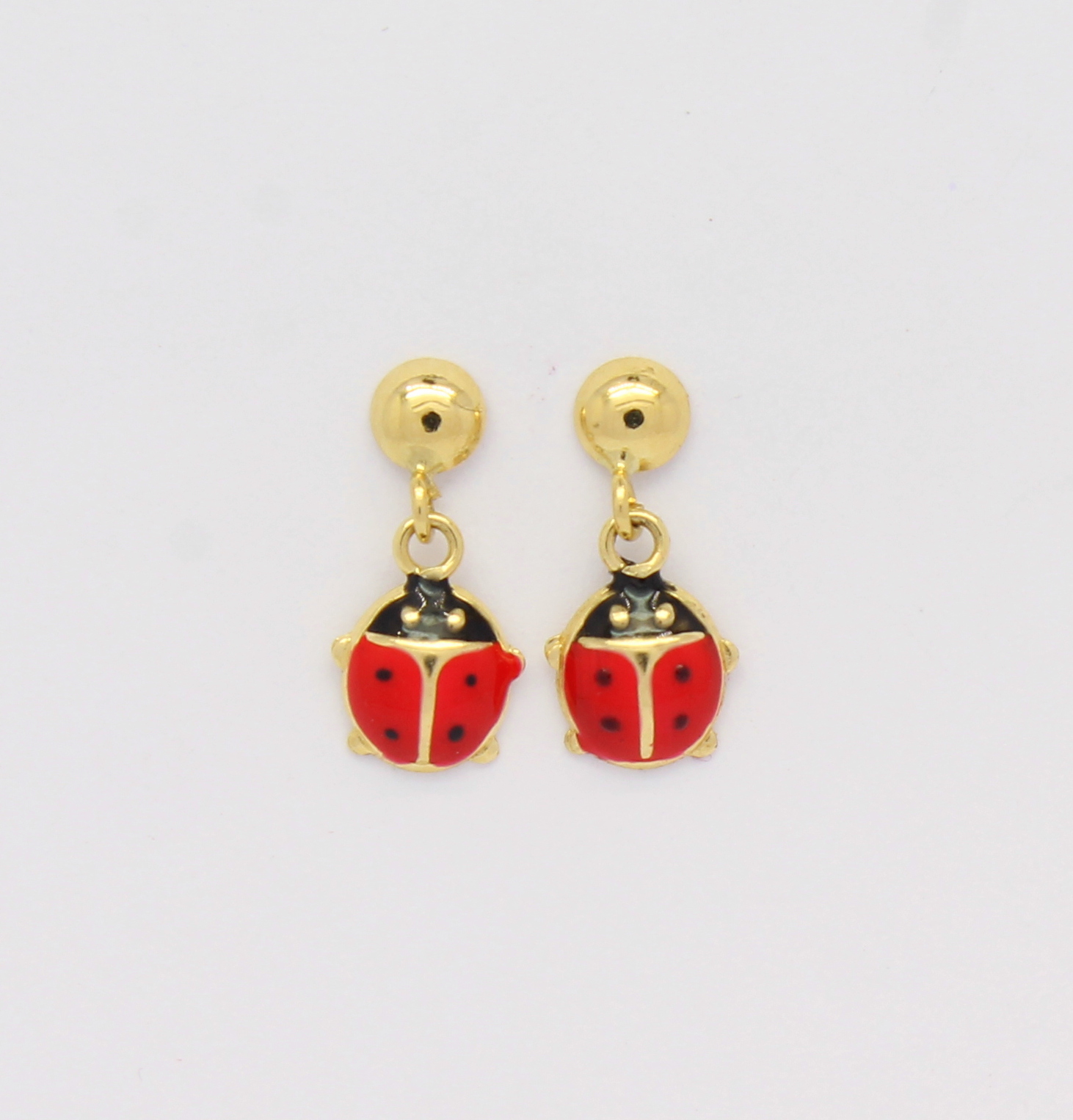 Brinco Infantil Joaninha Esmaltado Ouro 18k 750