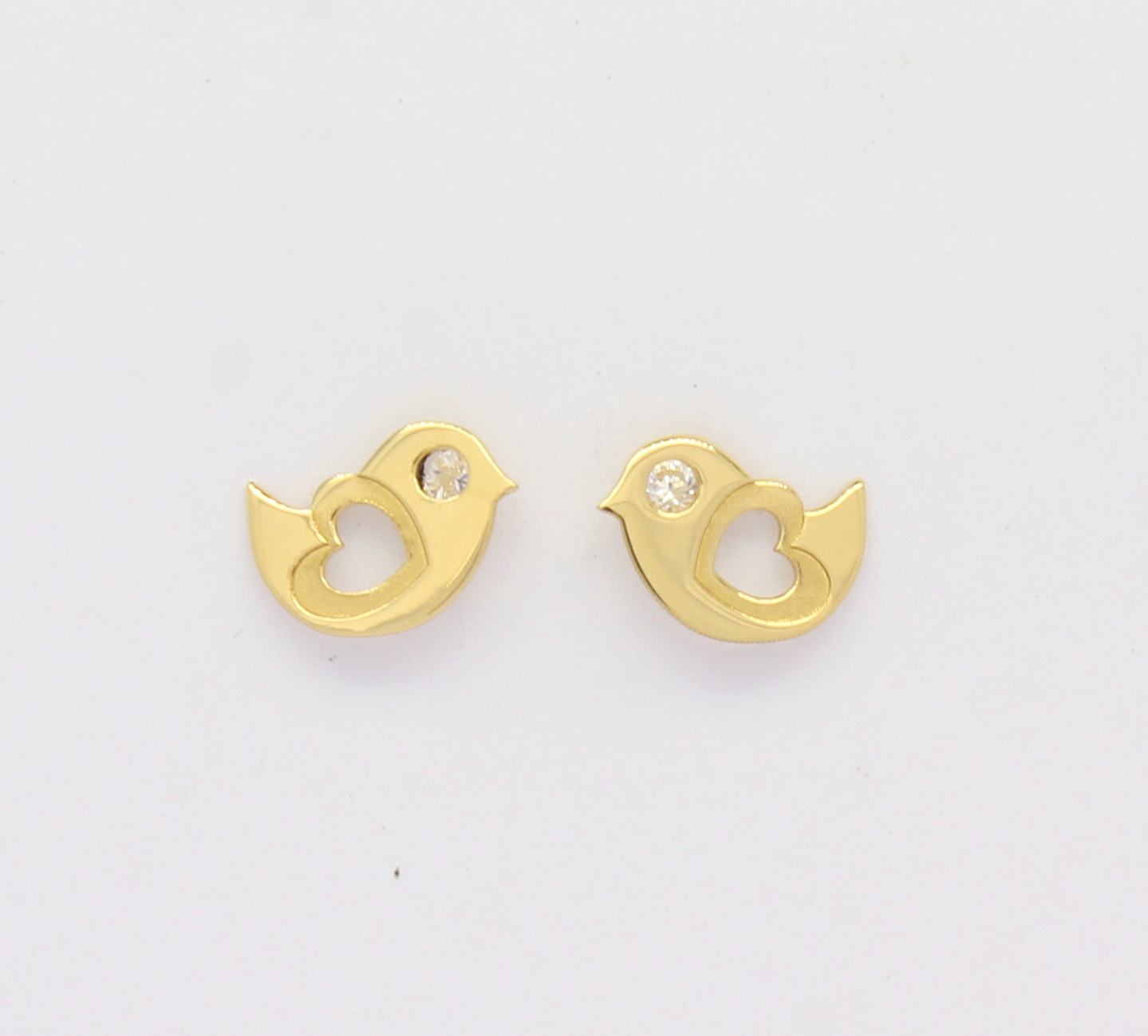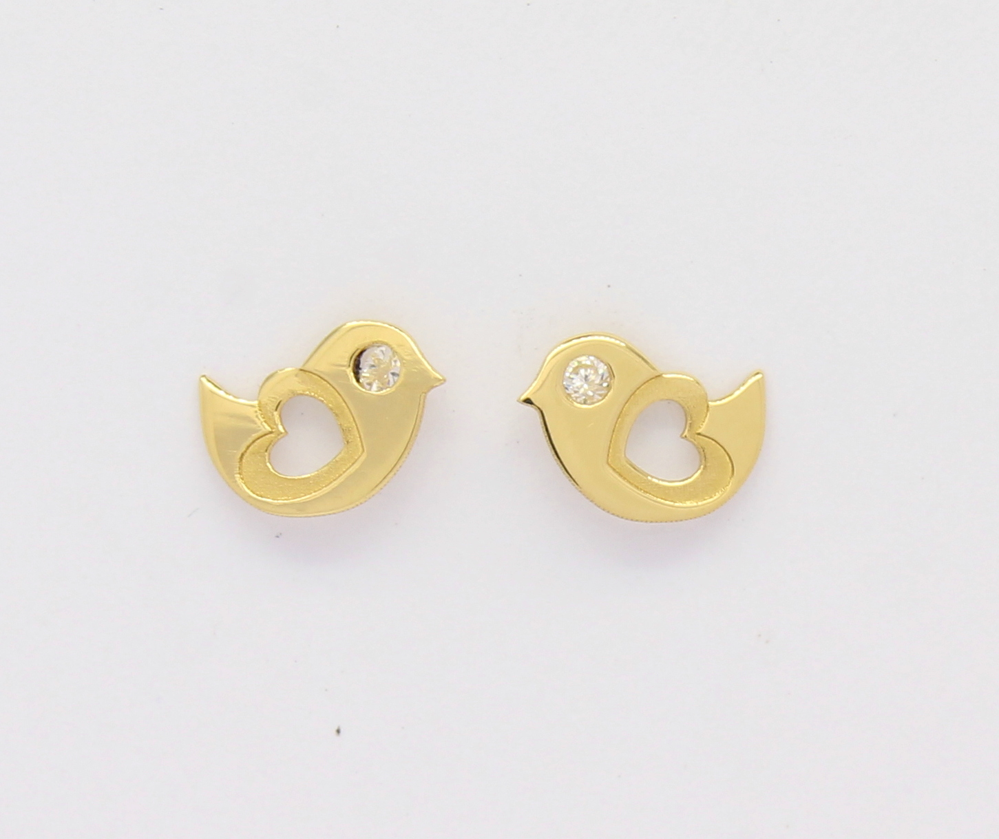 Brinco Infantil Passarinho Coração Diamante Ouro 18k 750