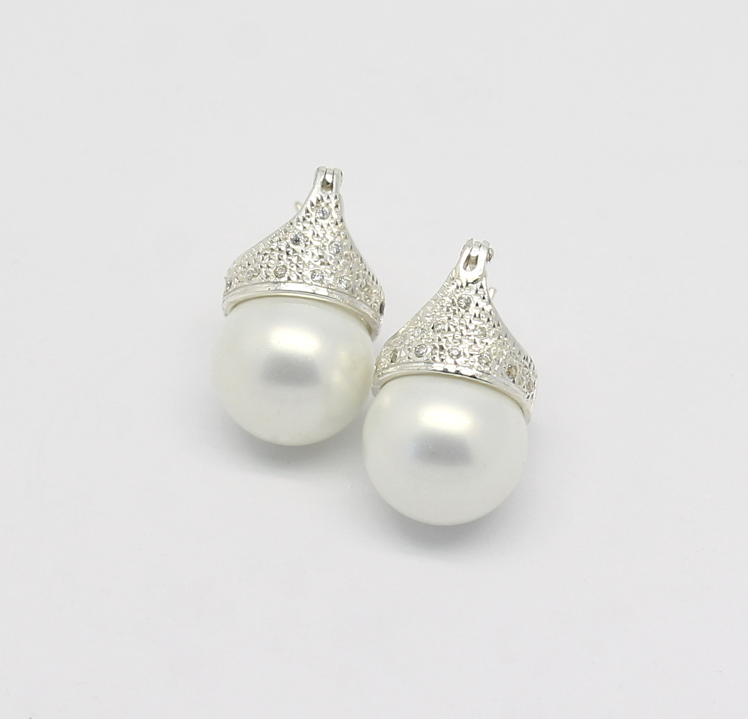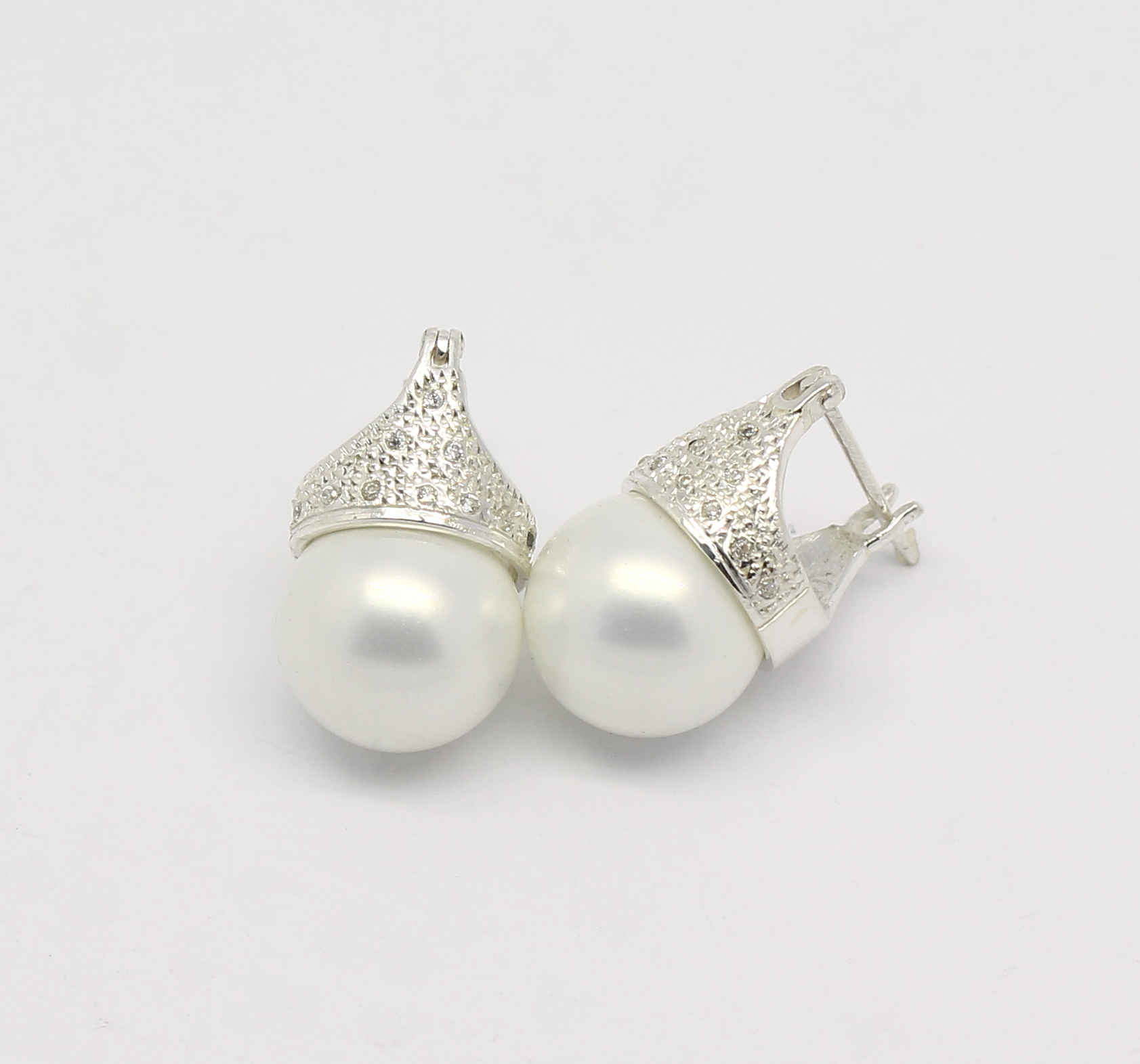 Brinco Lady Di Diamante e Pérola Ouro 18k 750