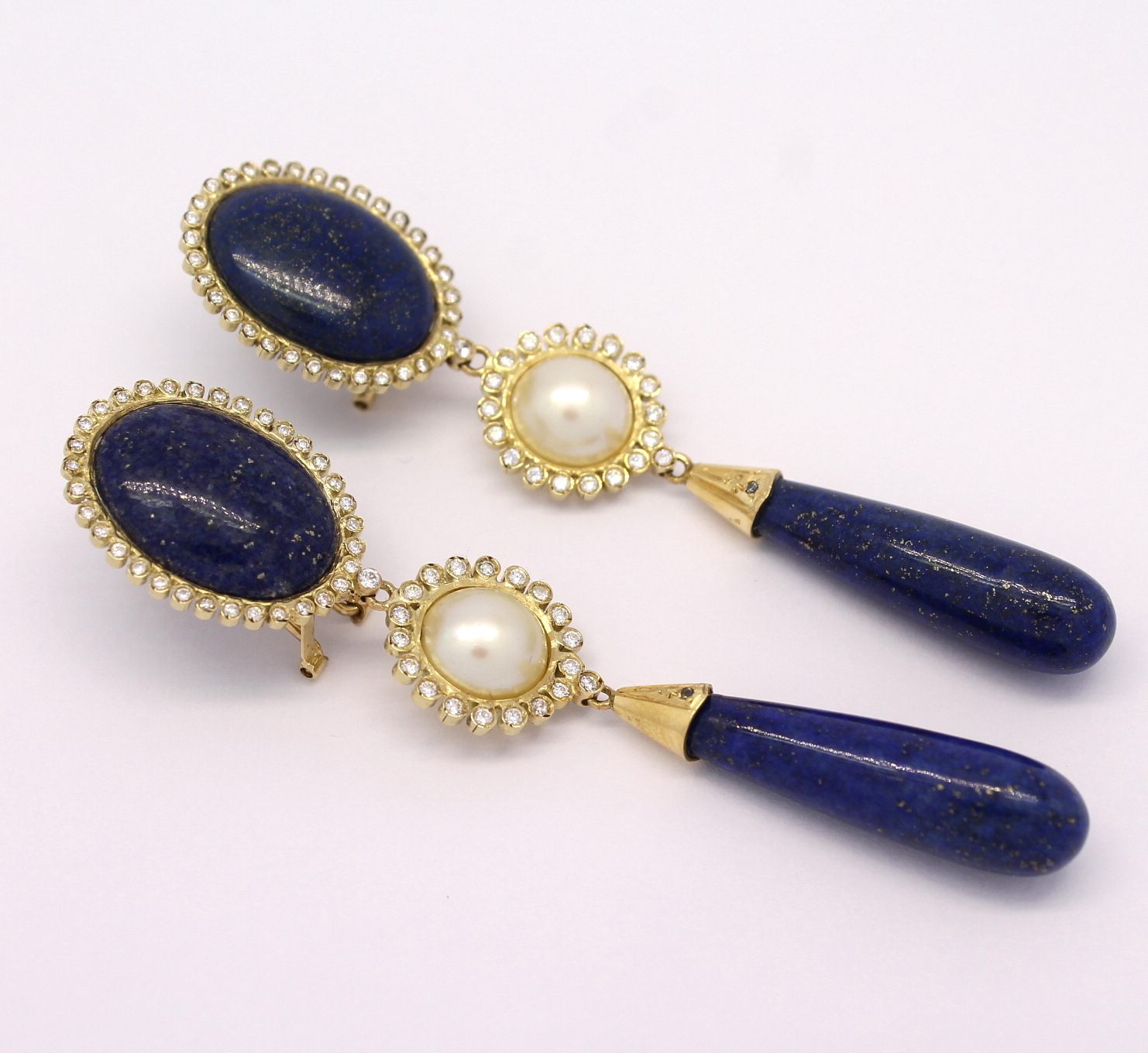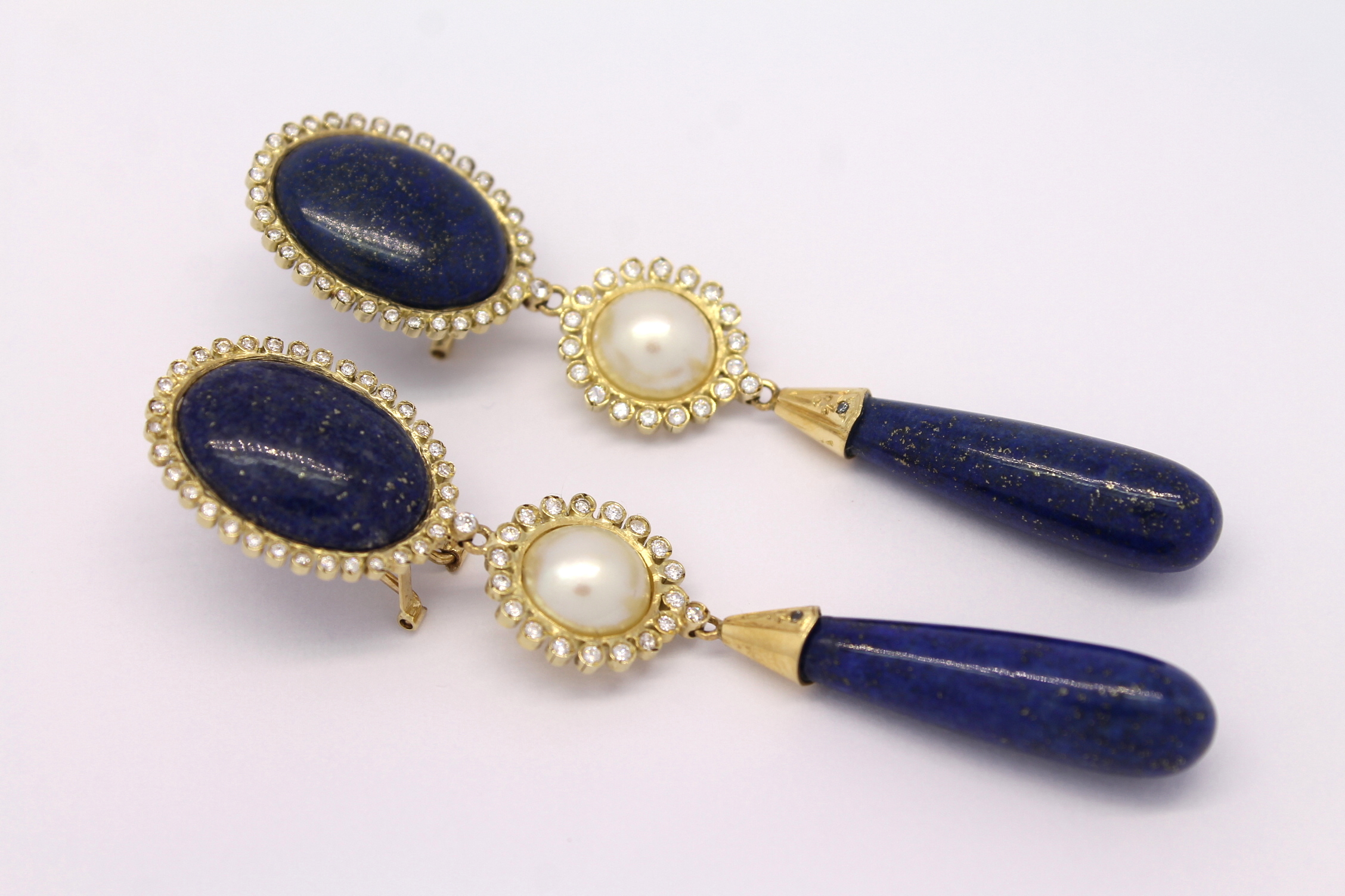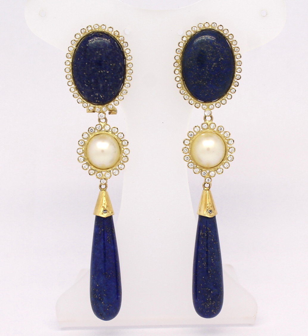 Brinco Lápis Lazúli Pérola Zircônio Ouro Amarelo 18k 750