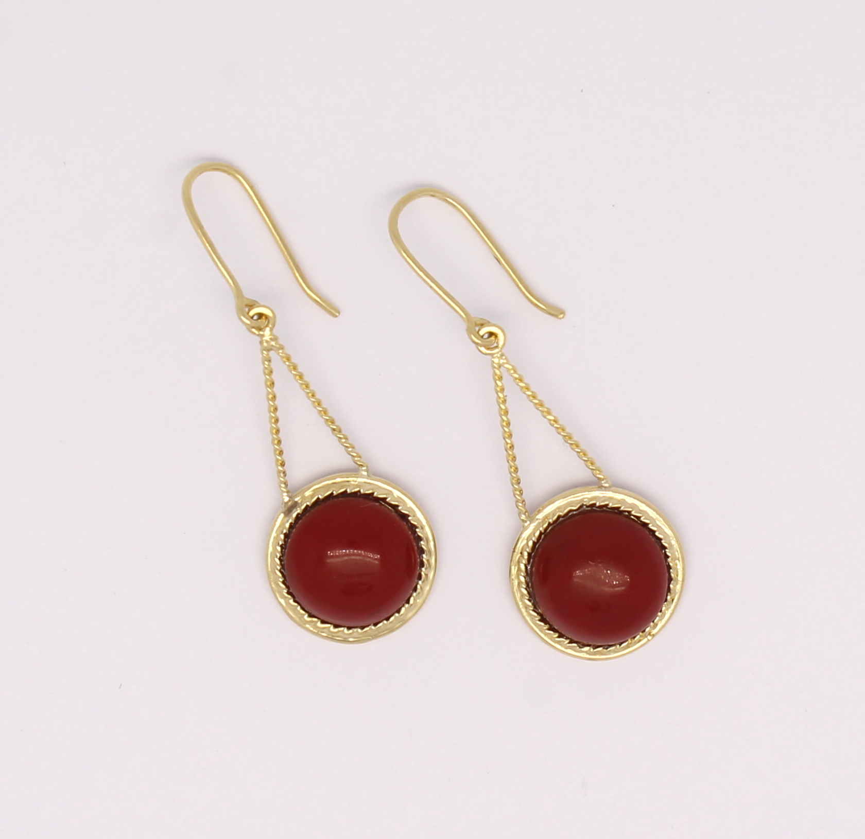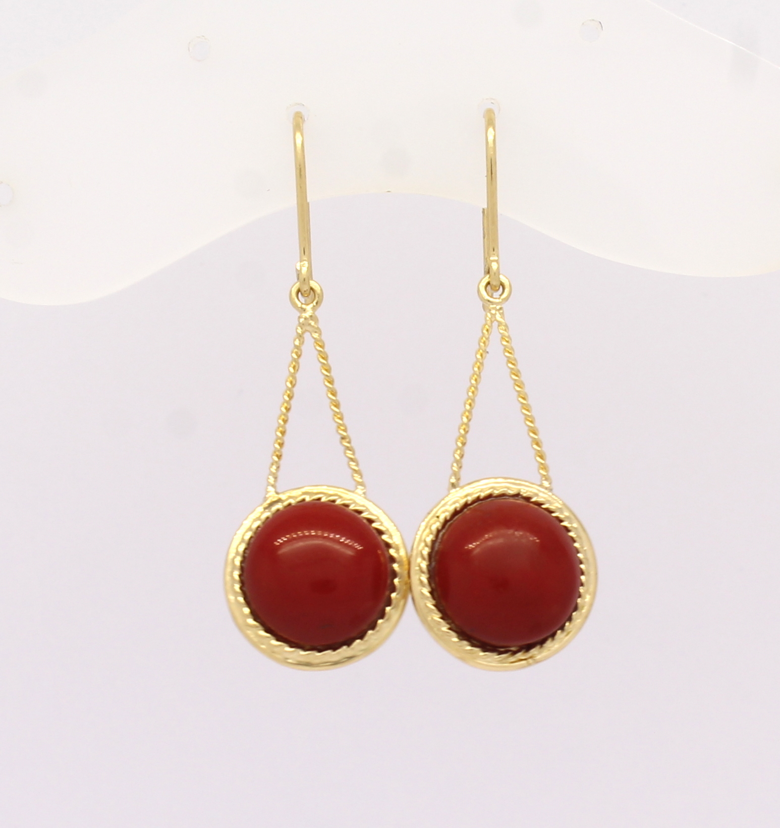 Brinco Pendurado Coral Redondo Ouro Amarelo 18k 750