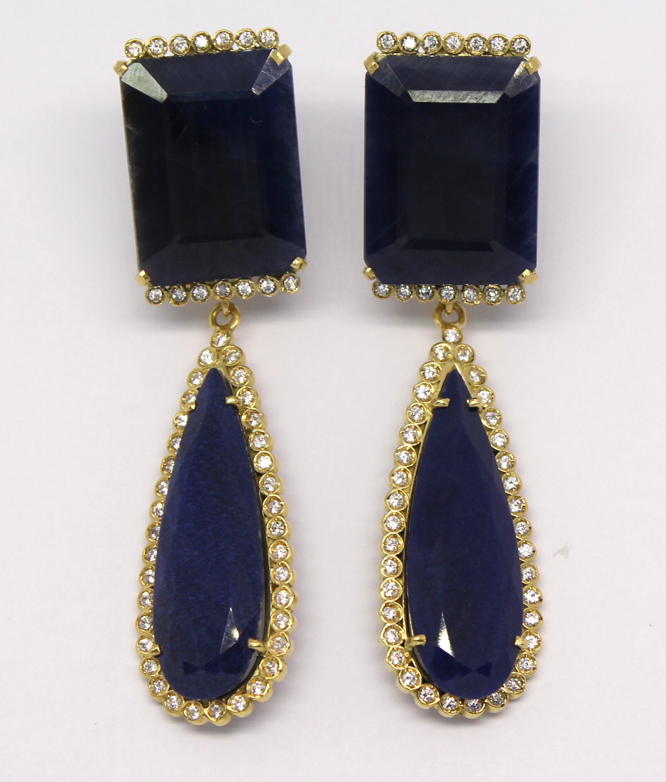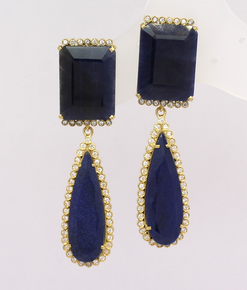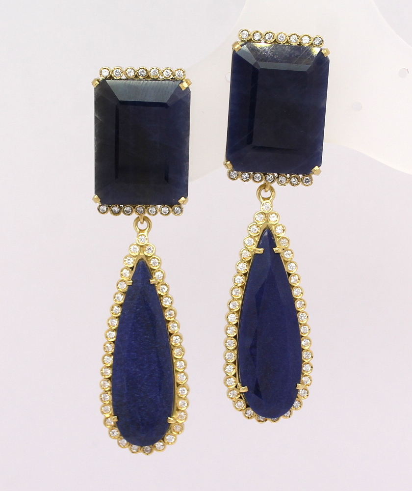 Brinco Safira Gota Zircônio Ouro Amarelo 18k 750