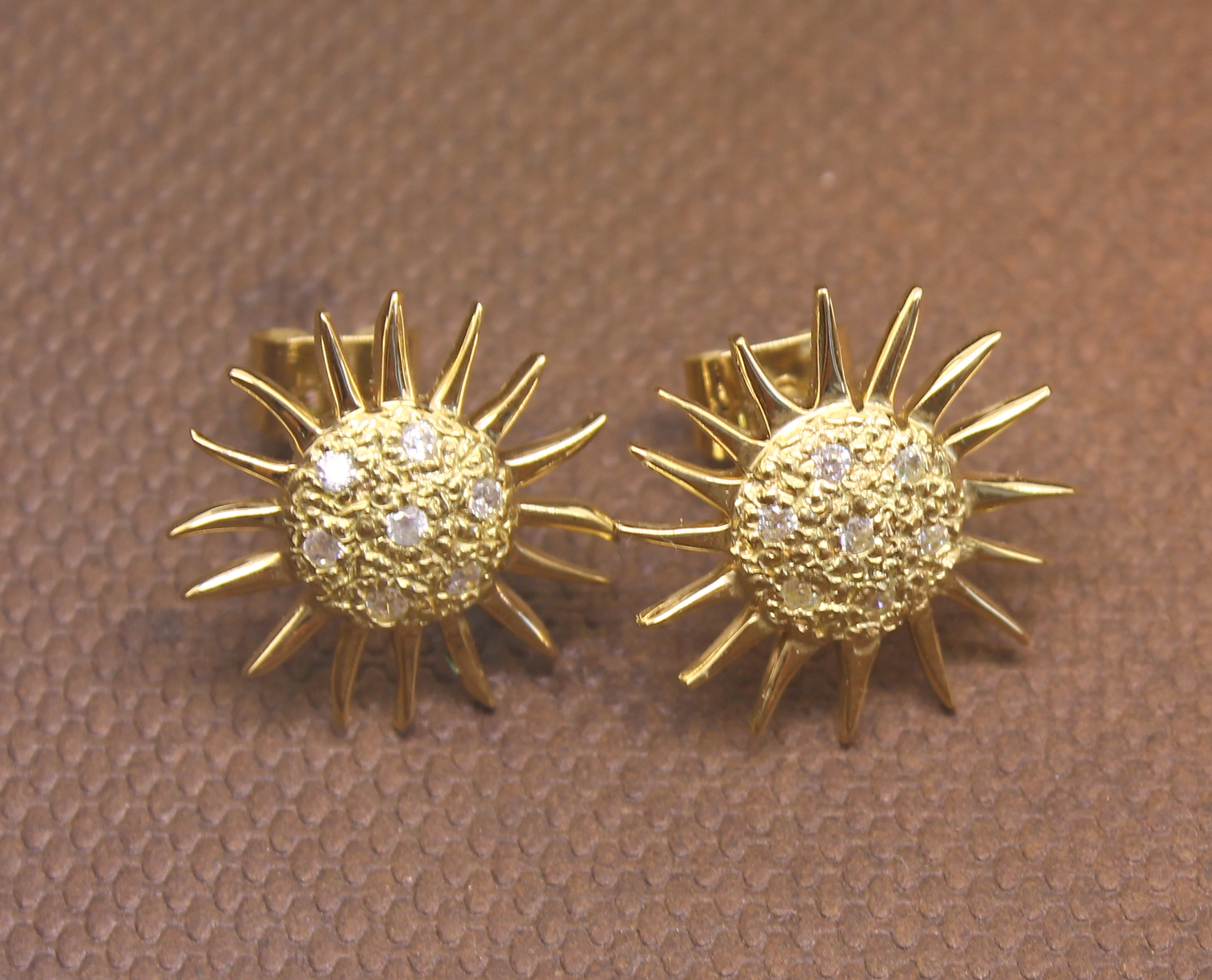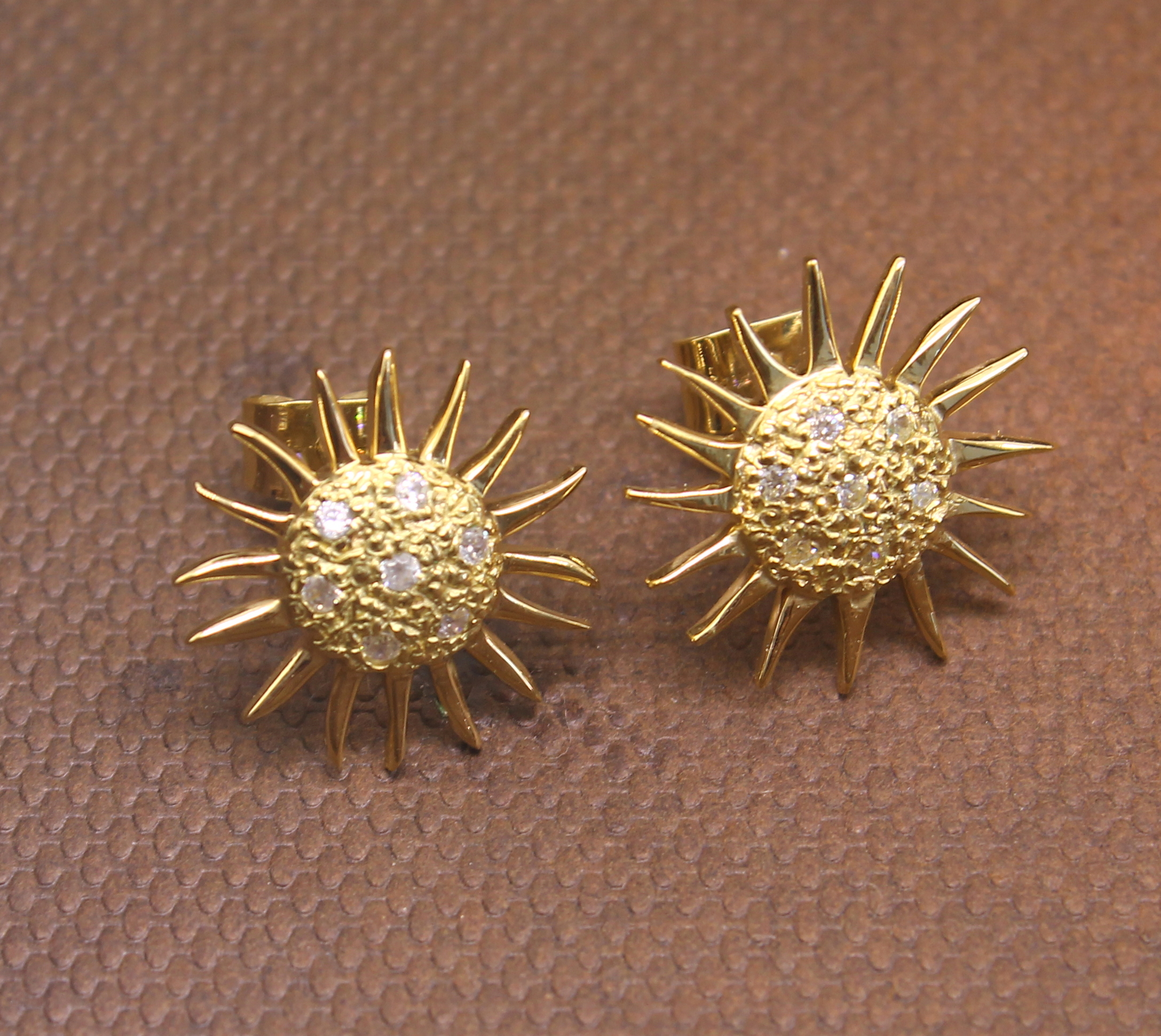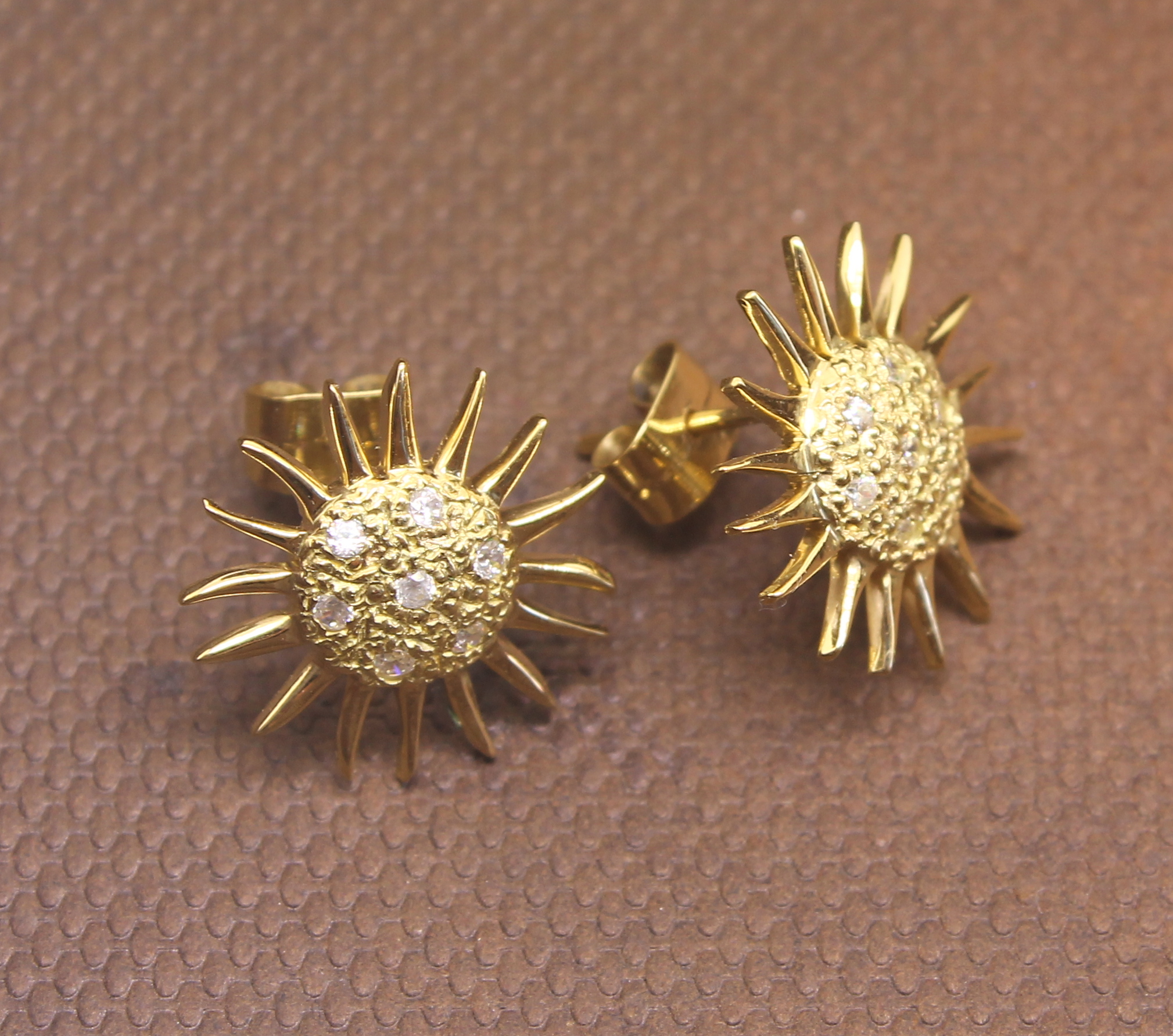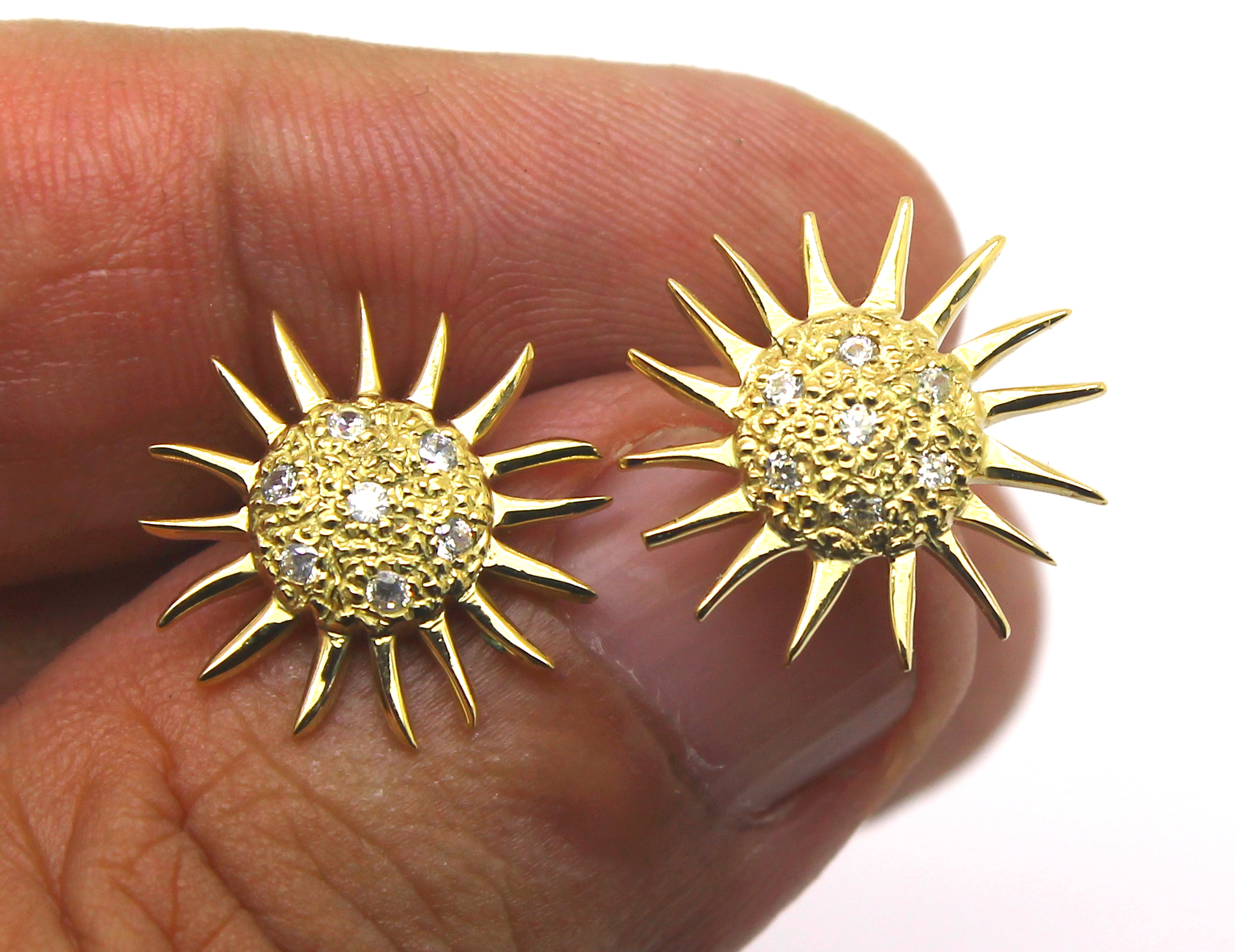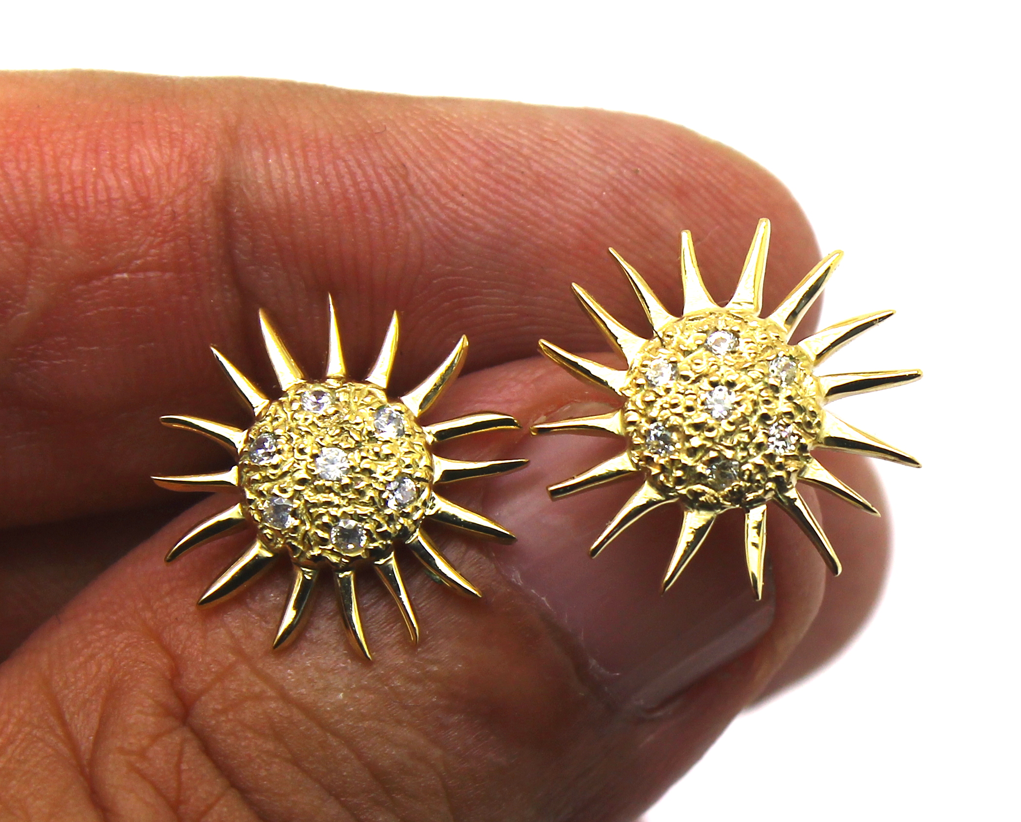 Brinco Sol Zircônios Ouro Amarelo 18k 750