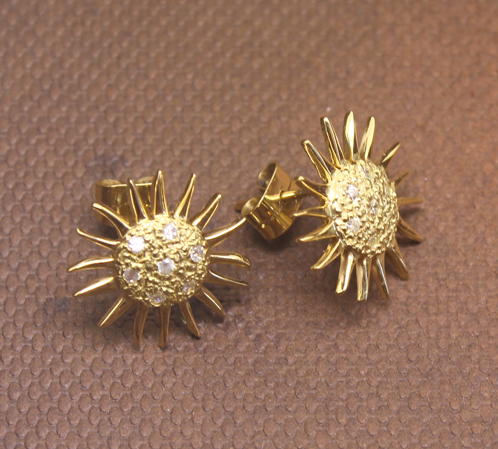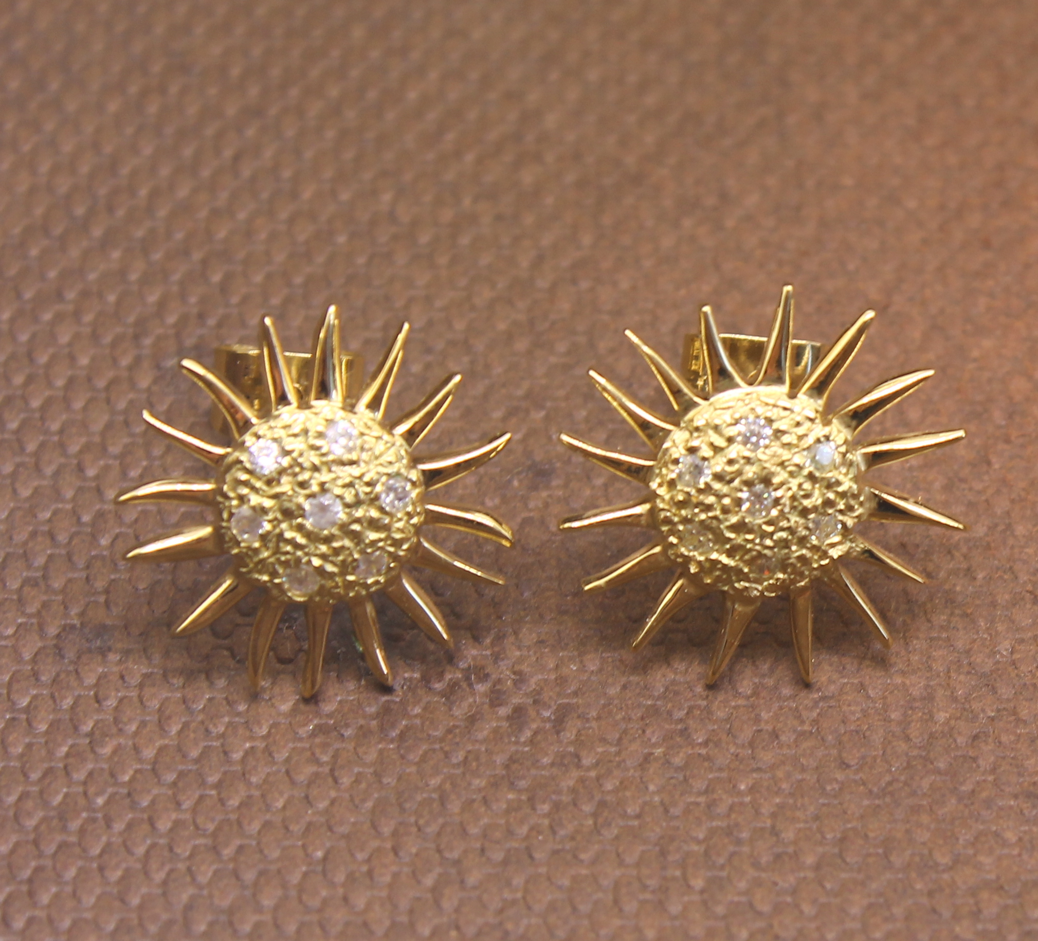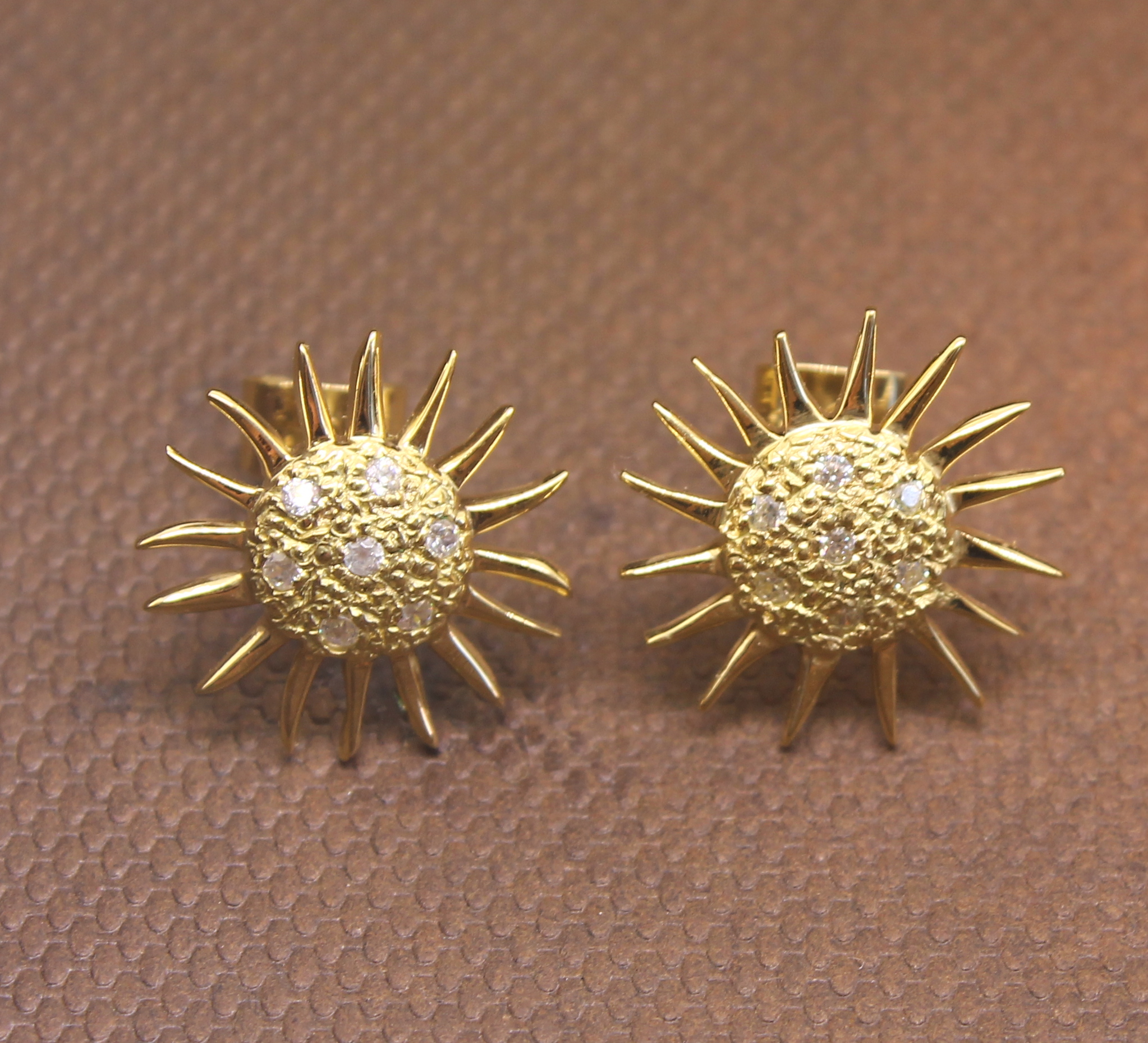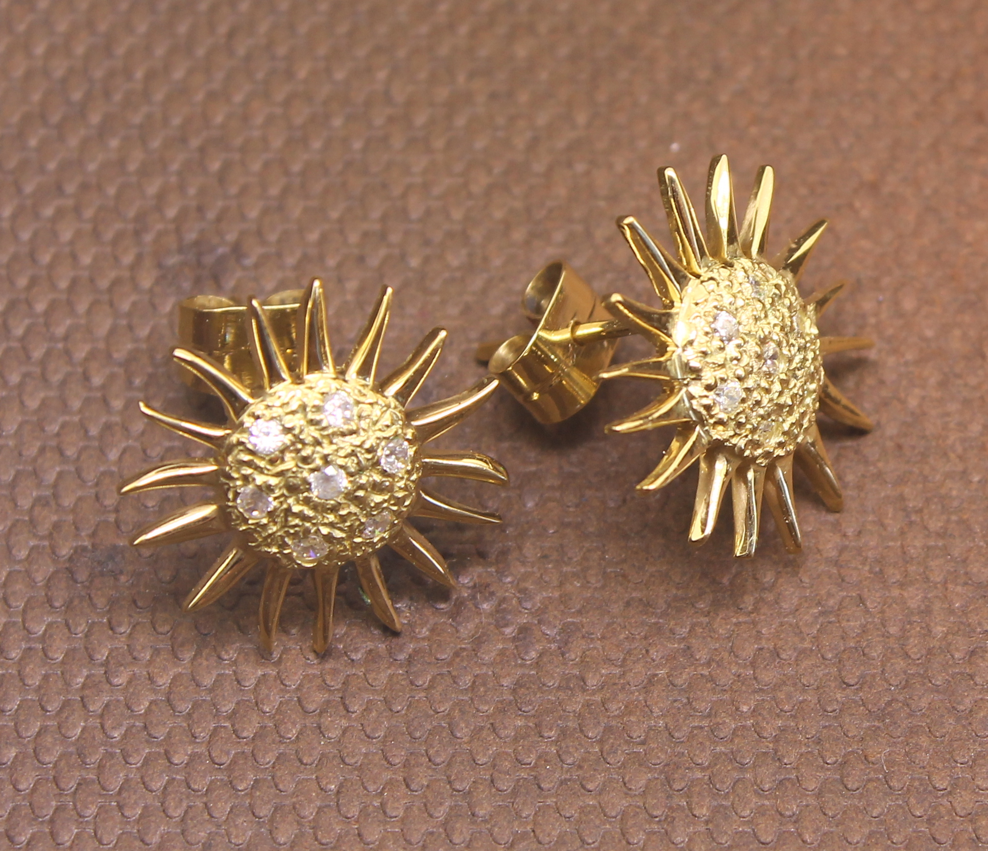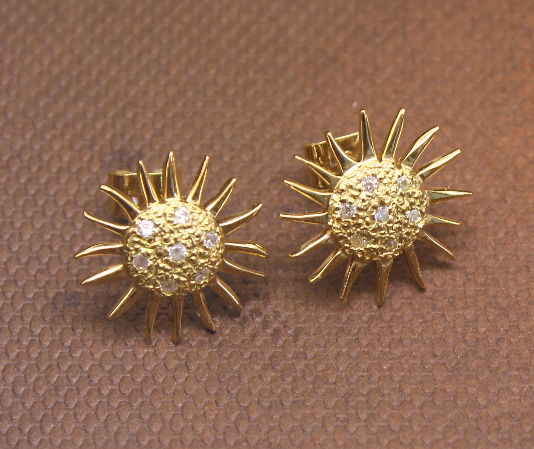 Brinco Sol Zircônios Ouro Amarelo 18k 750