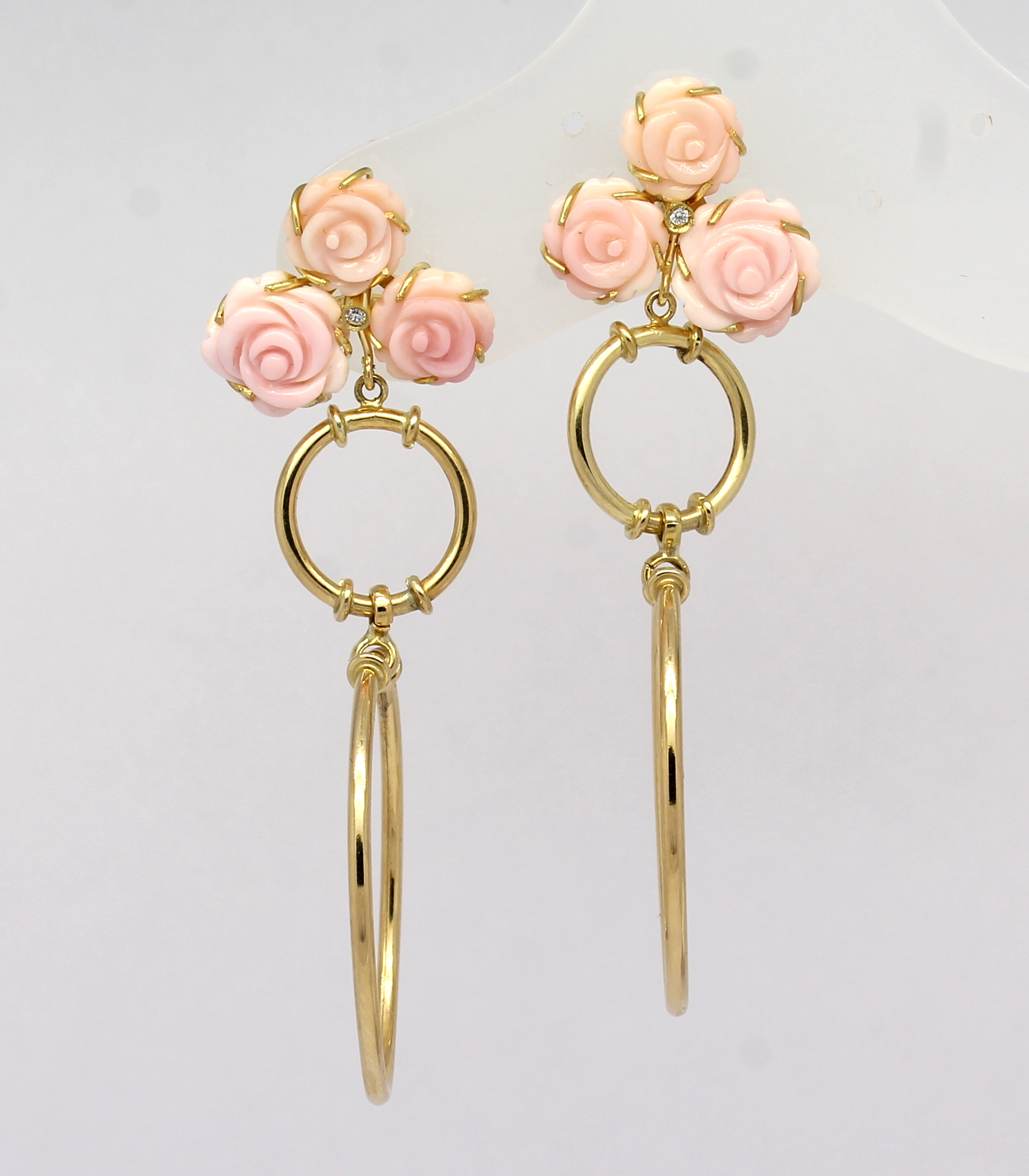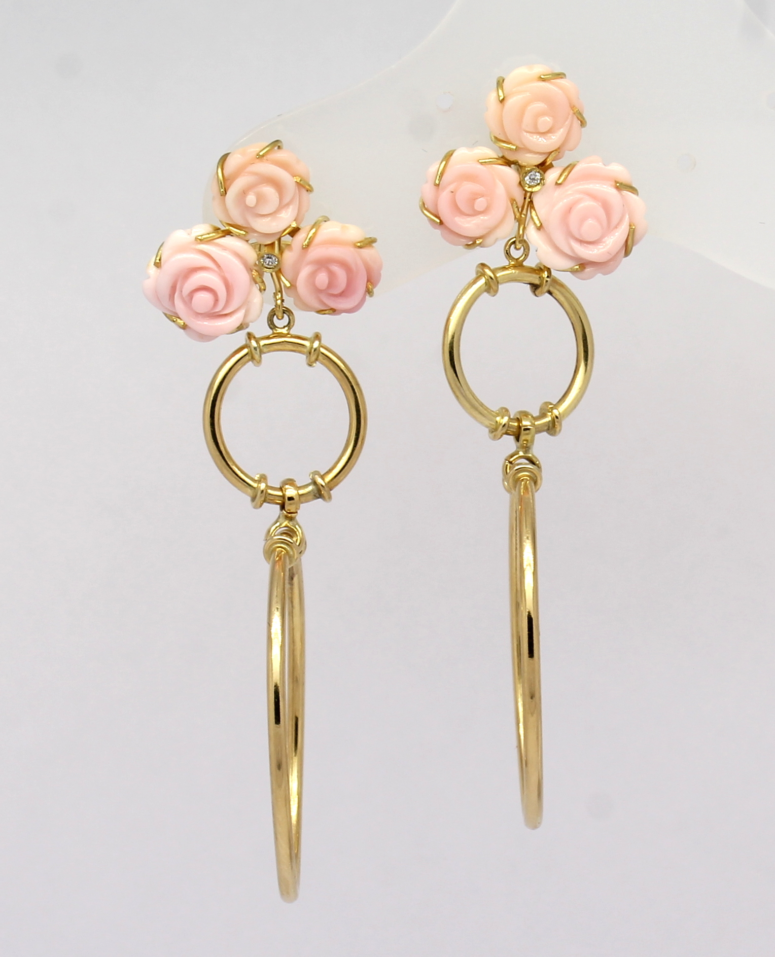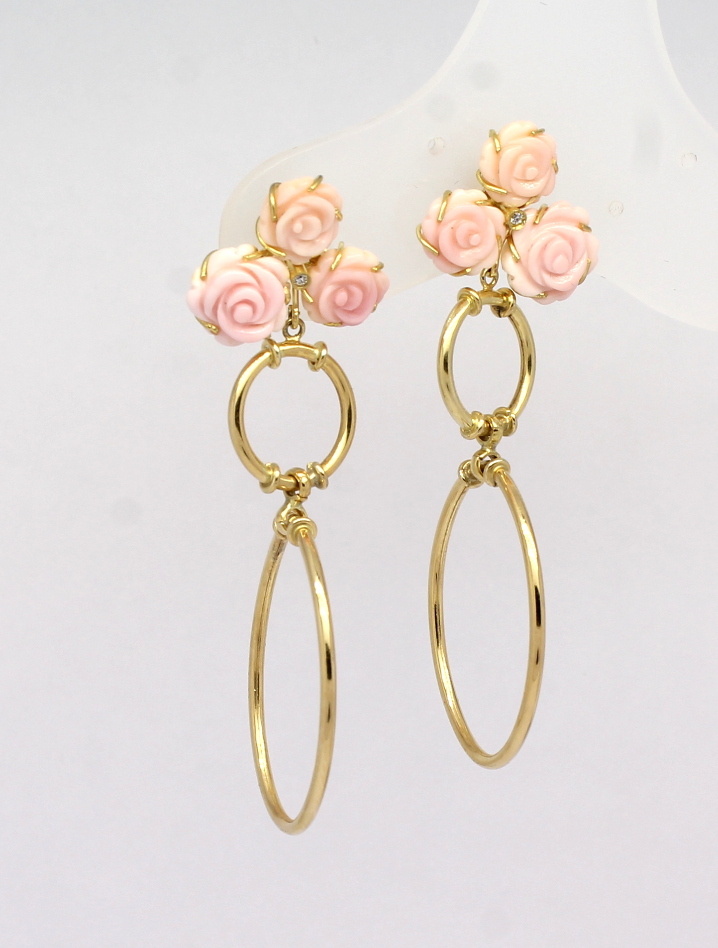 Brincos Flores Coral Ouro Amarelo 18k 750