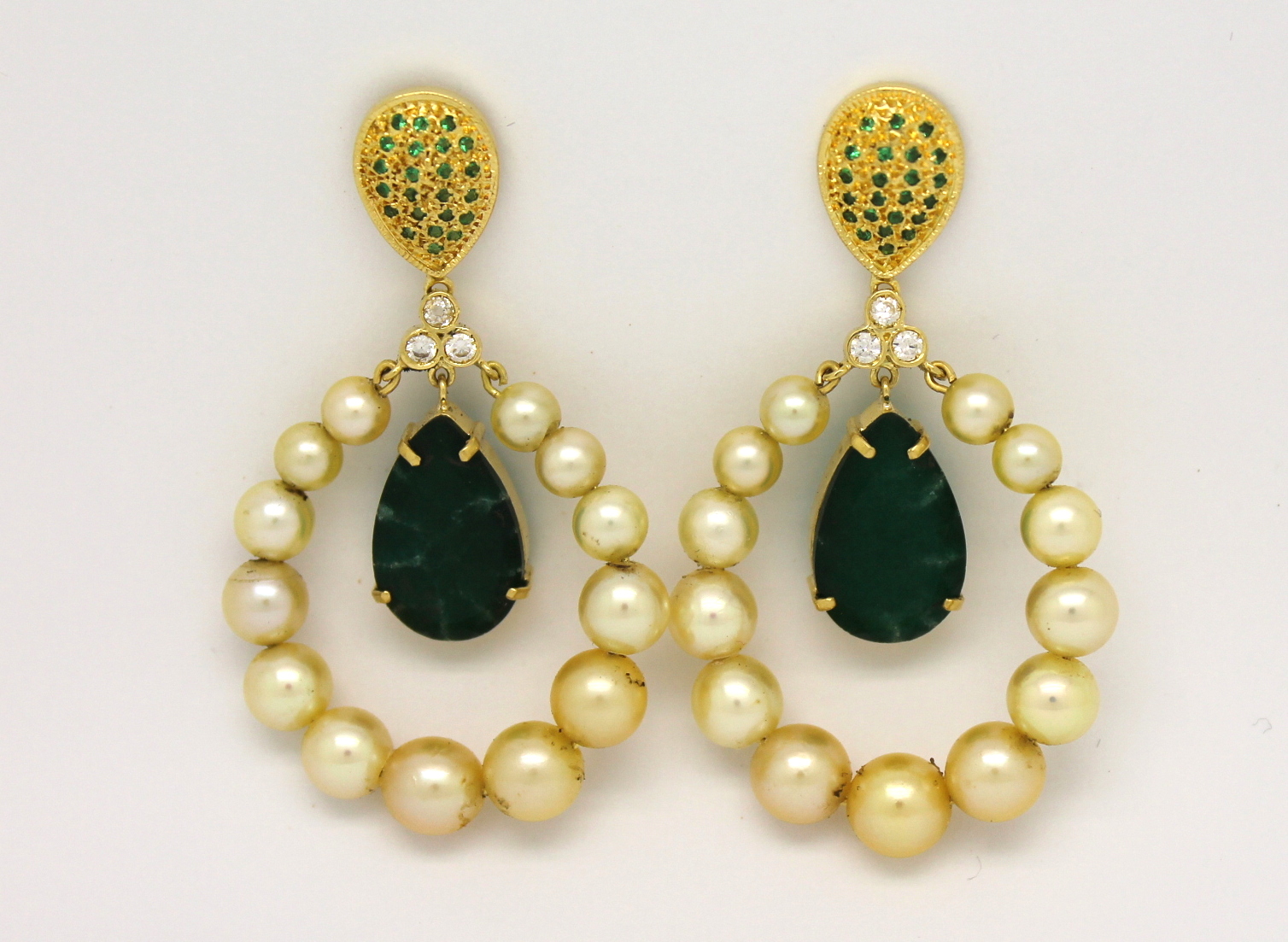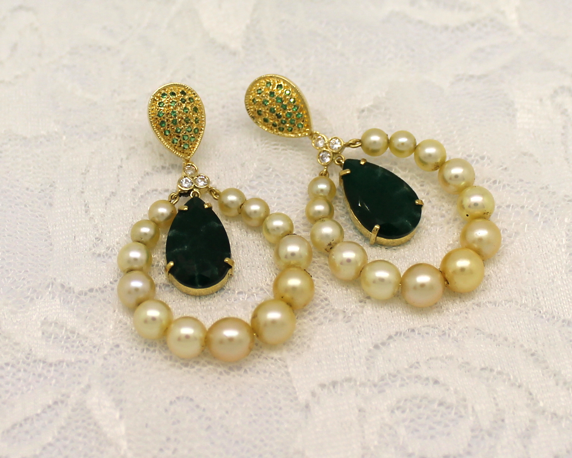 Brincos Pérolas, Jade, Esmeraldas e Zircônias Ouro 18k