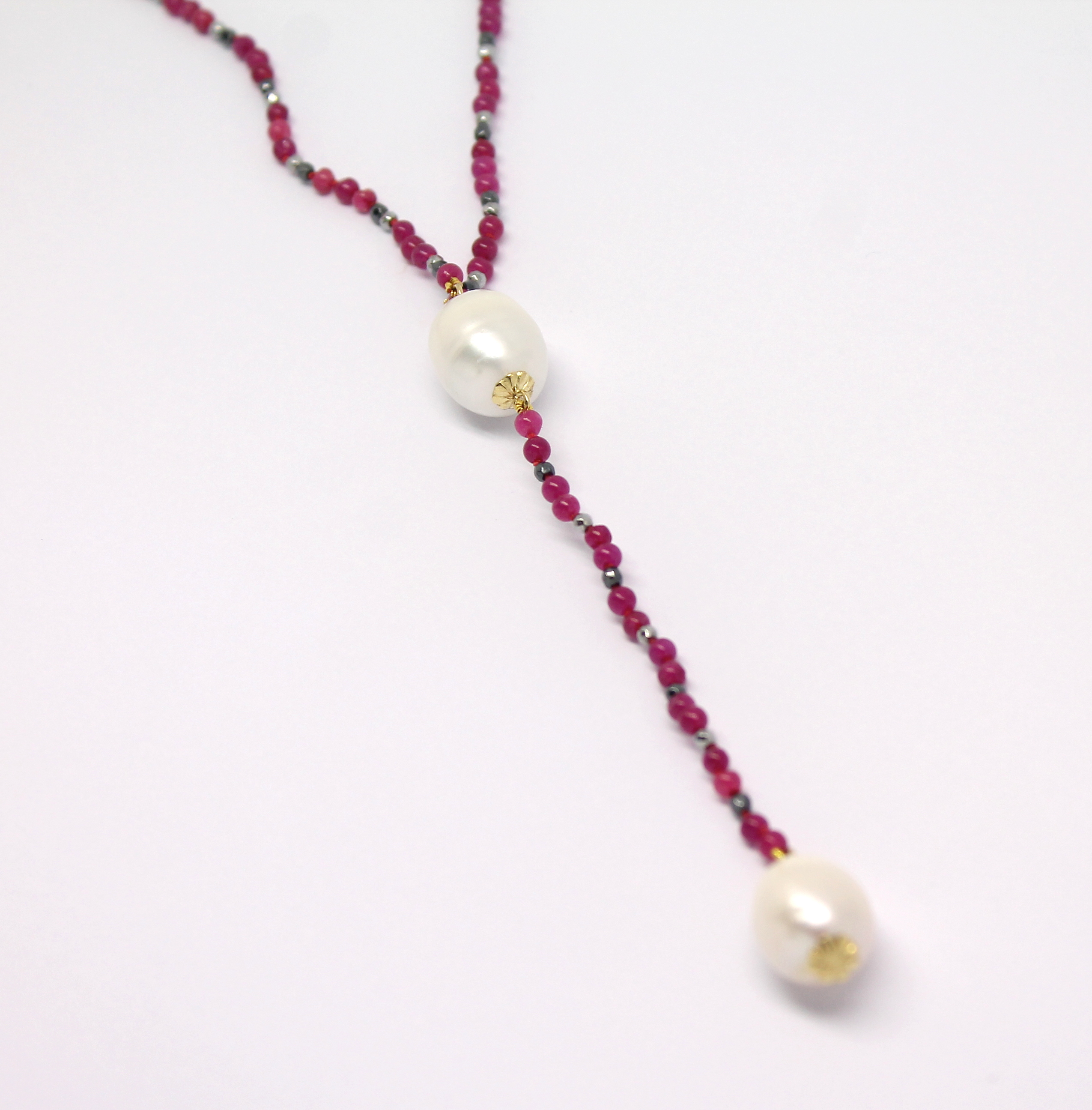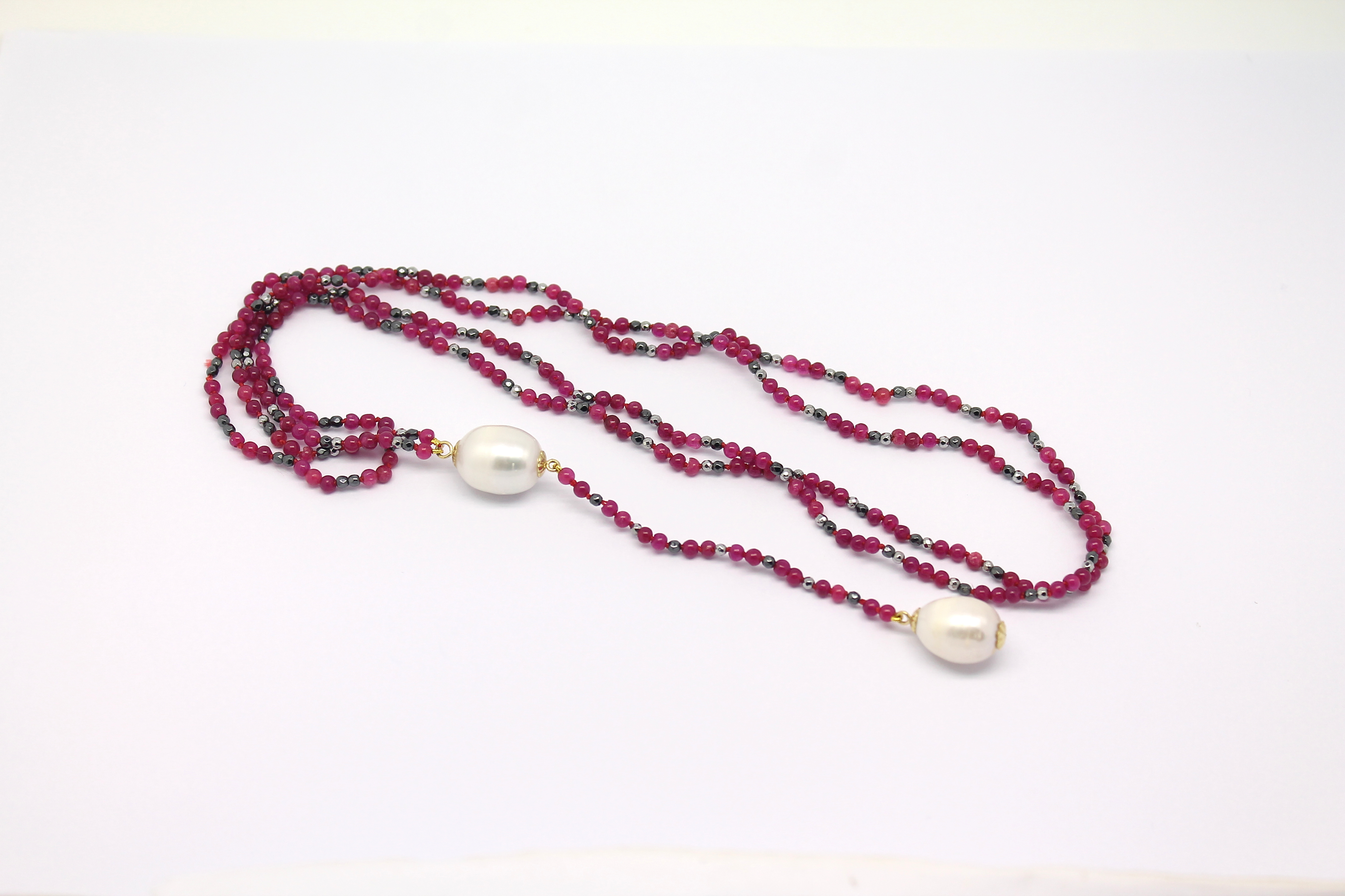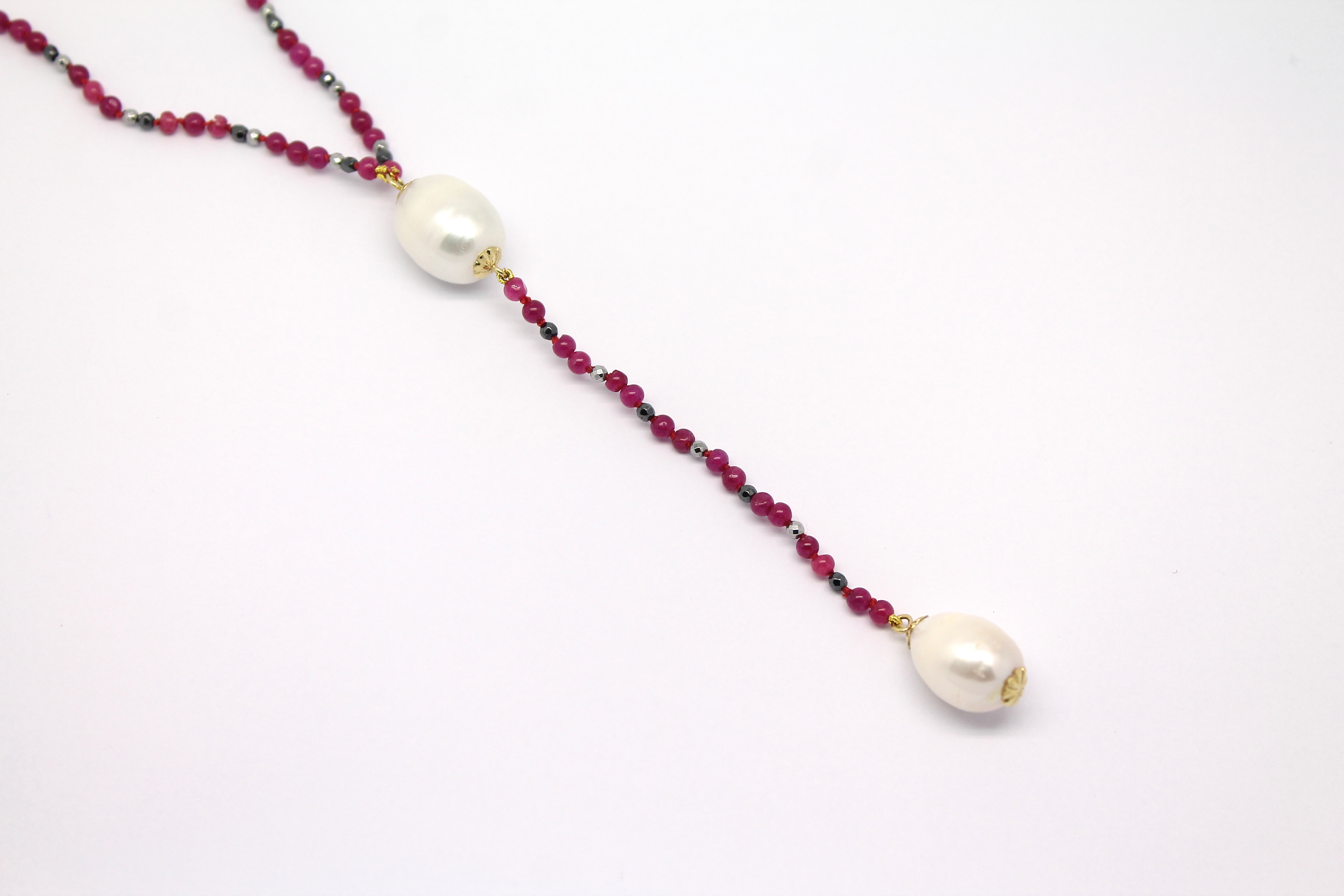 Colar Comprido Rubi Espinélio e Pérola Ouro 18k 750