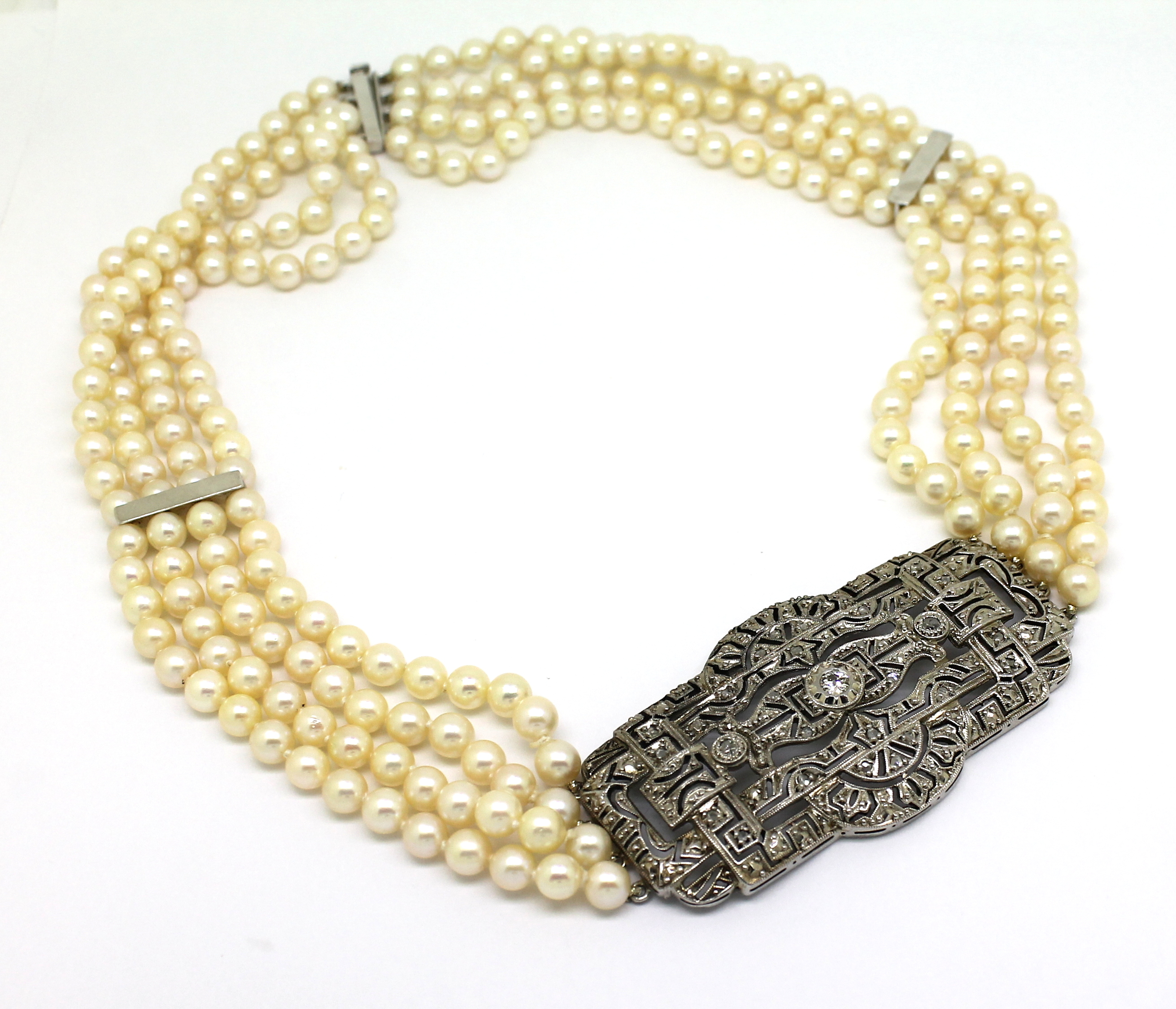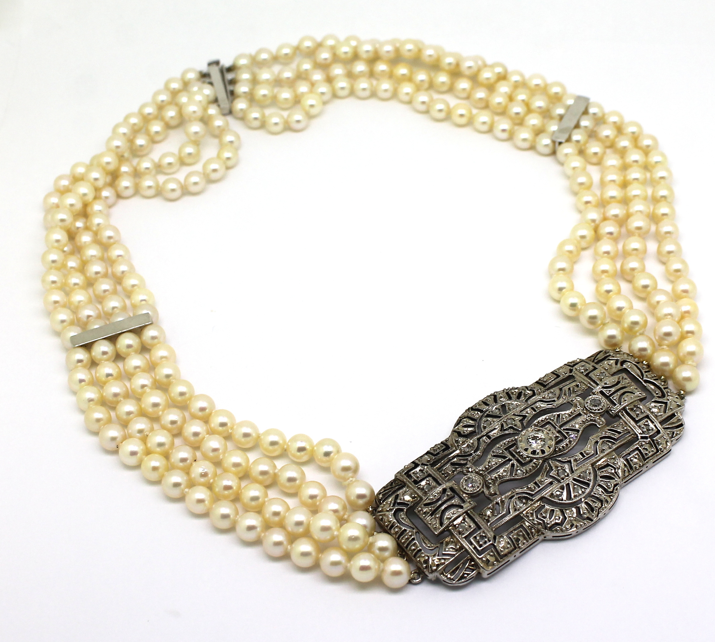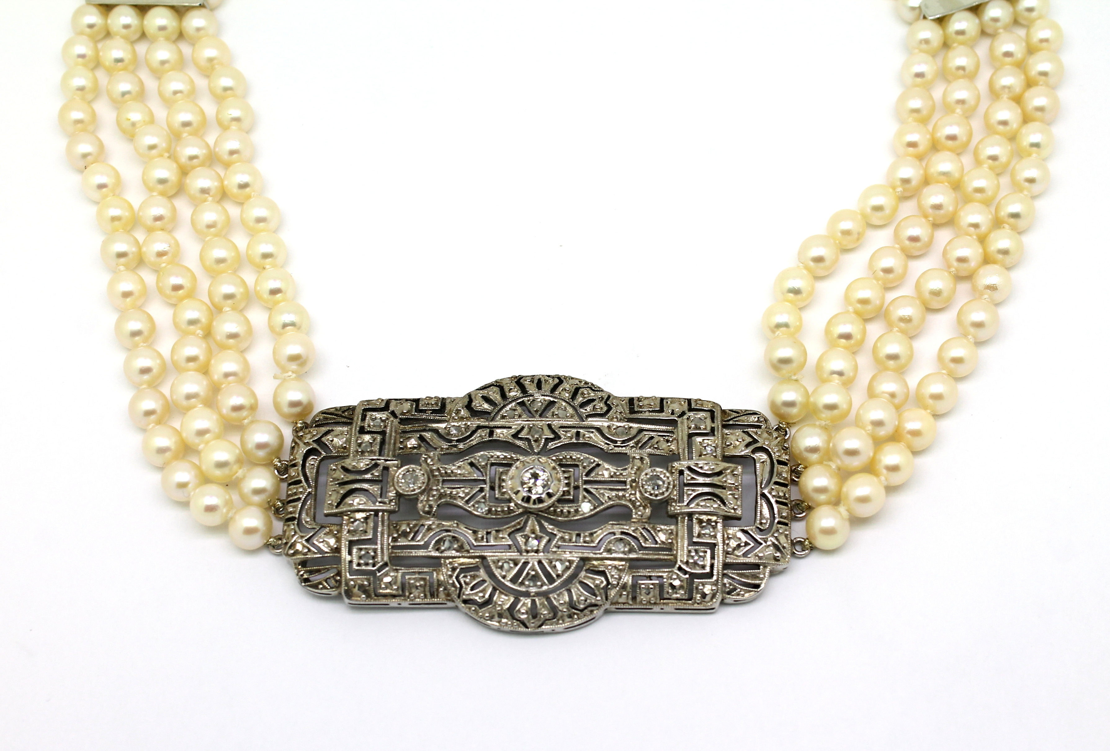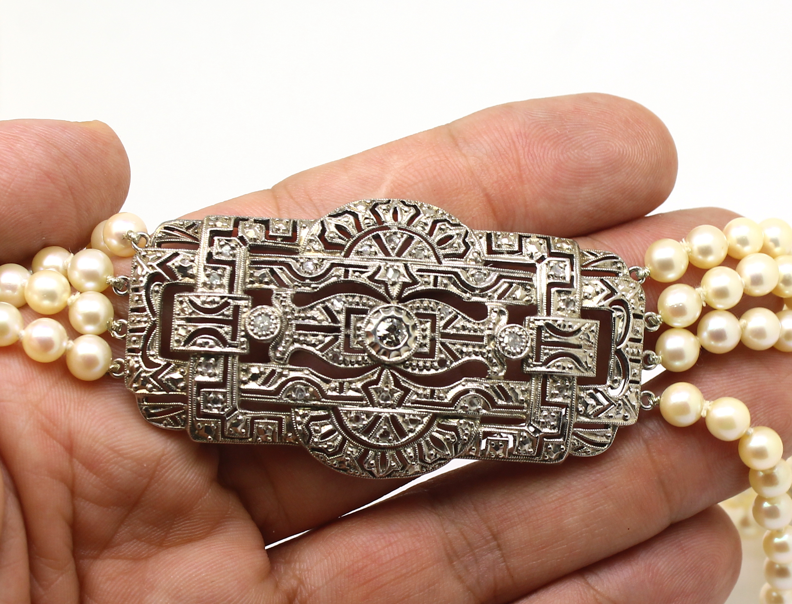 Colar de Pérolas Broche de Diamantes Ouro 18k