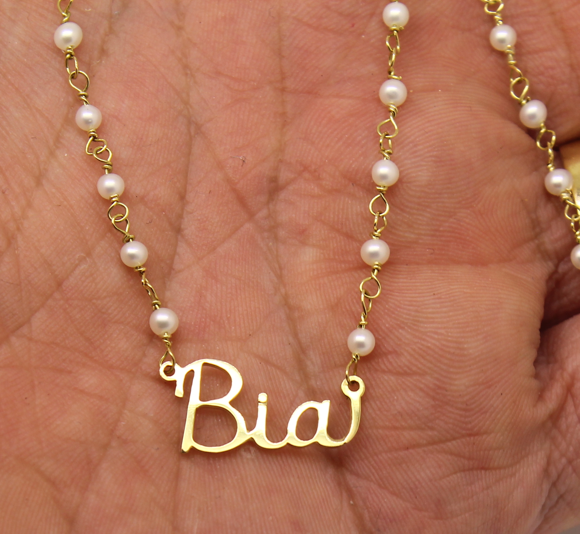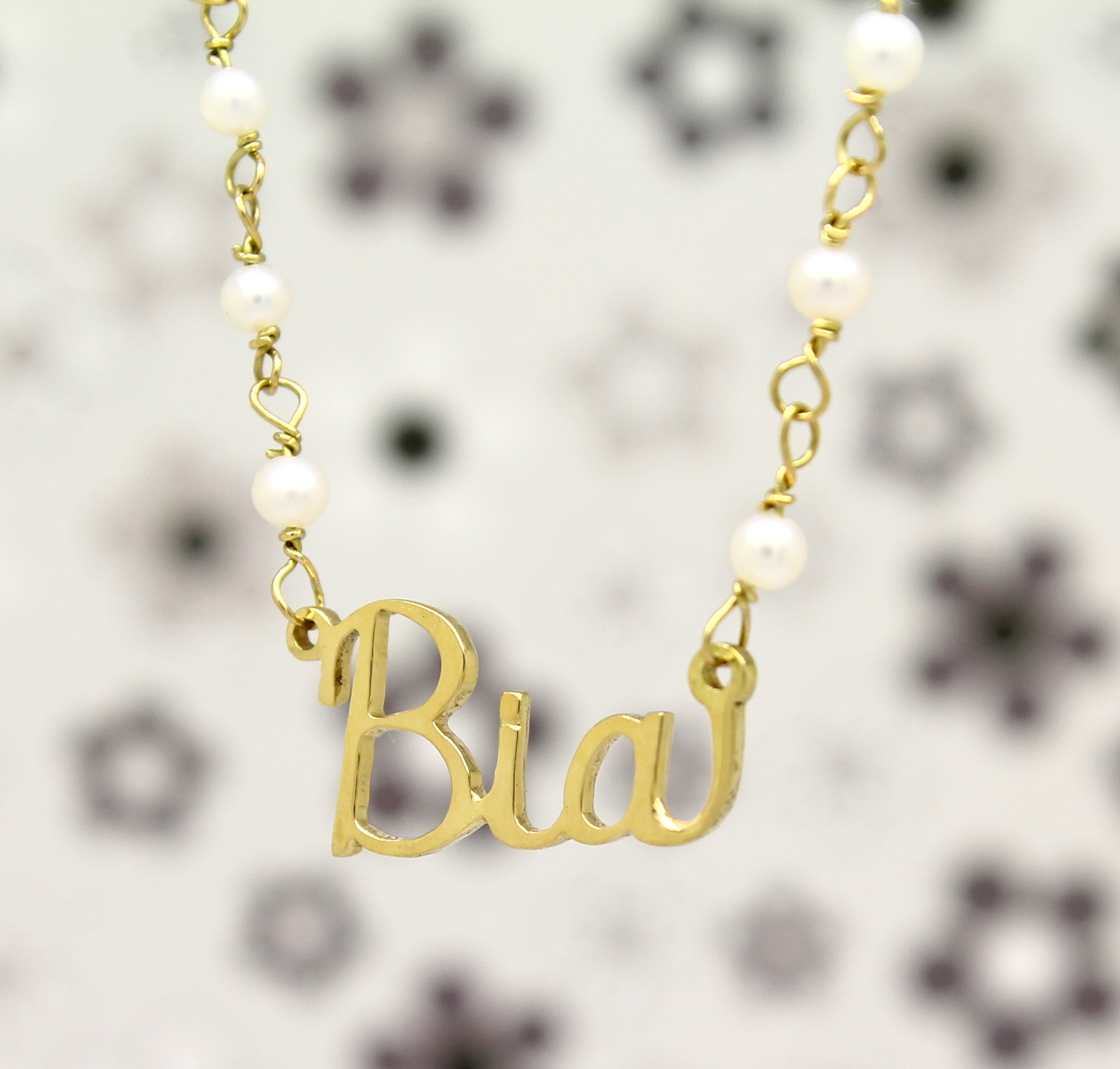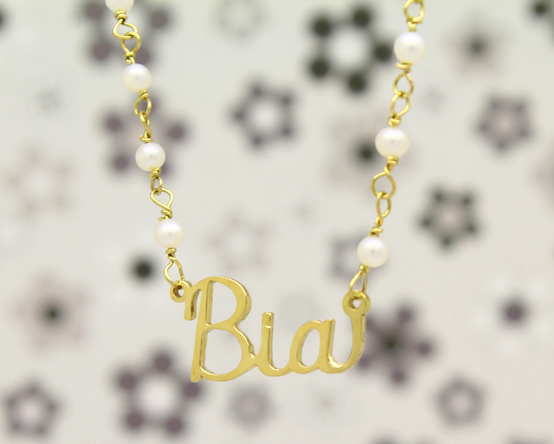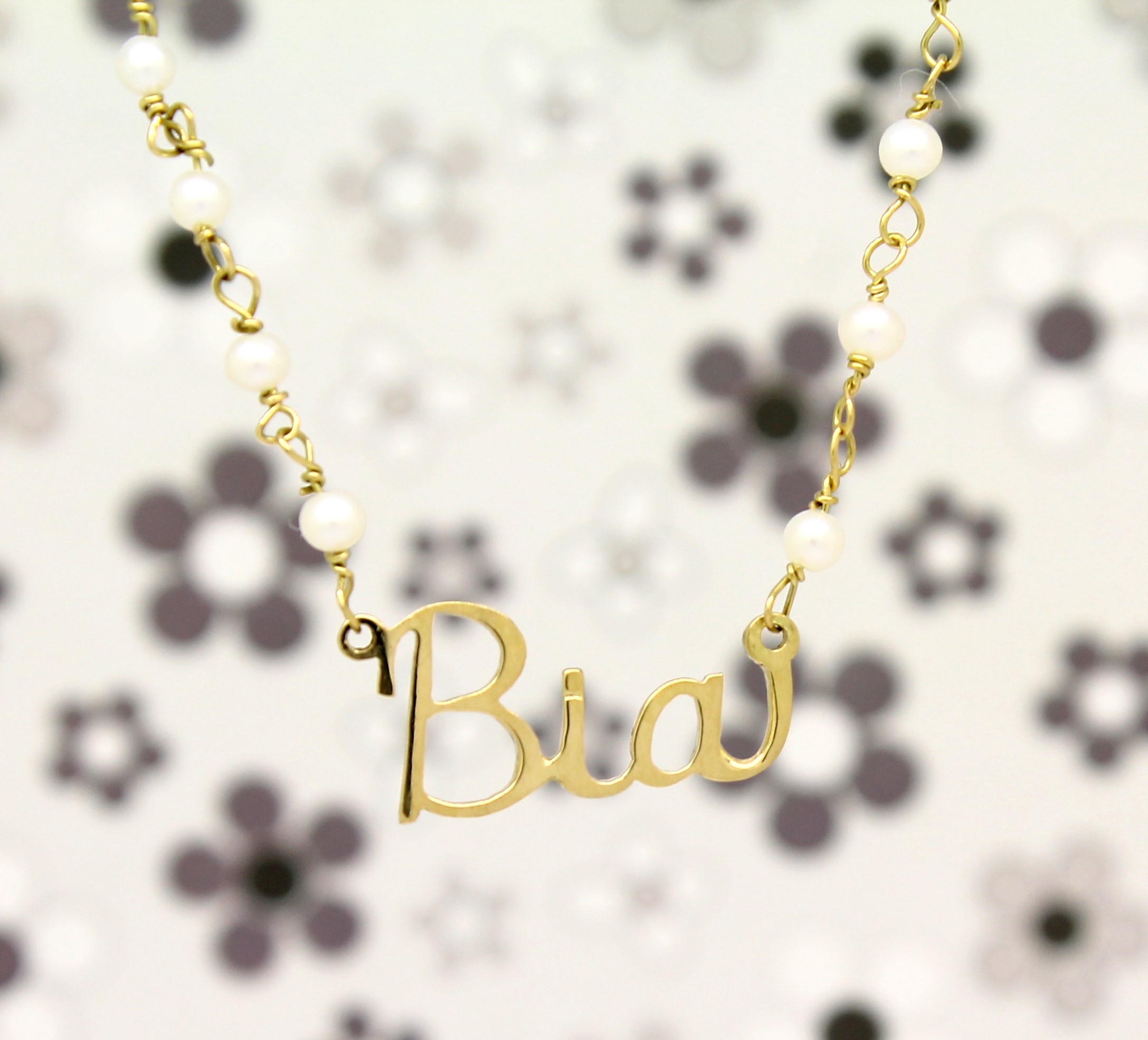 Colar de Pérolas com Nome Ouro 18k