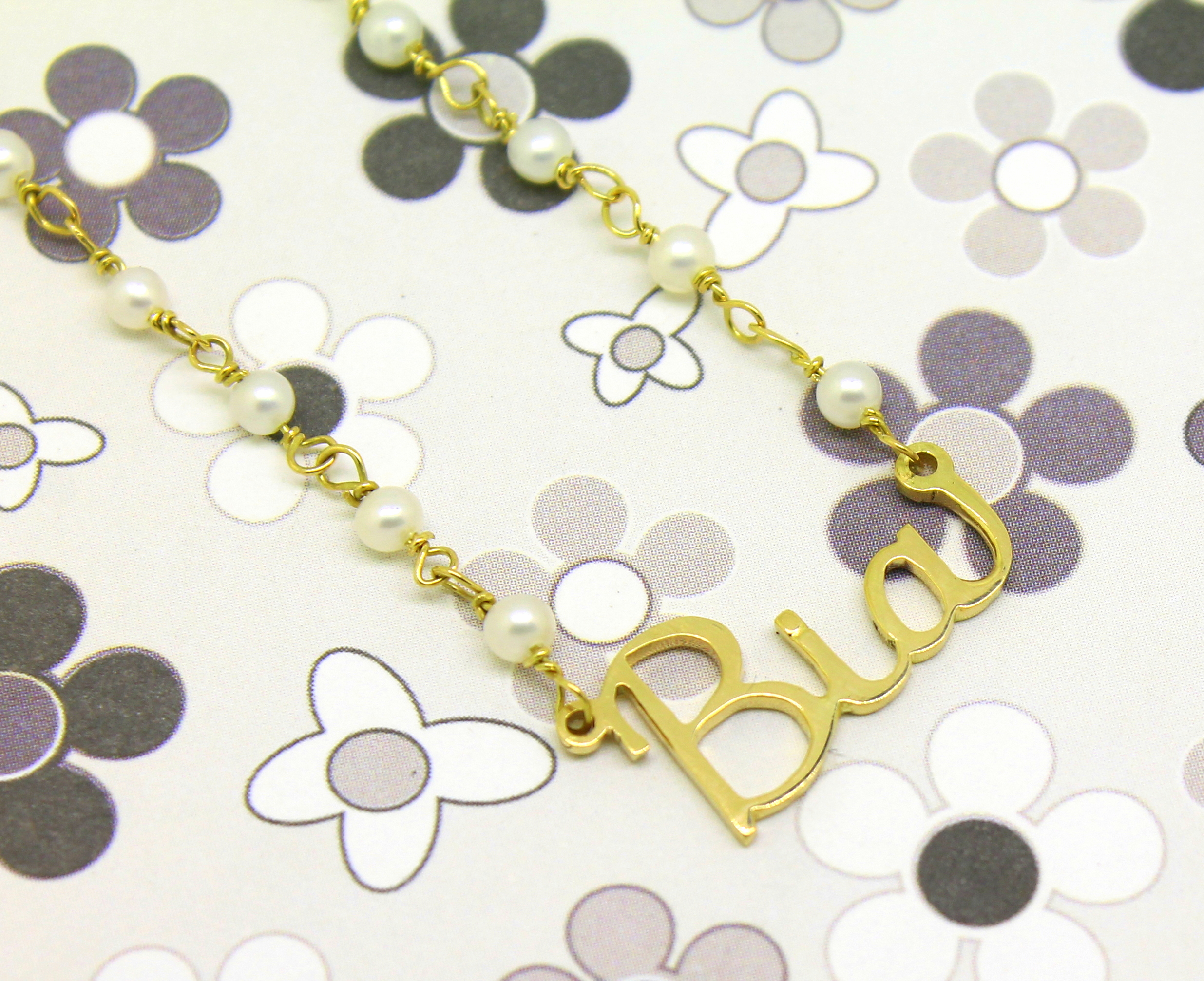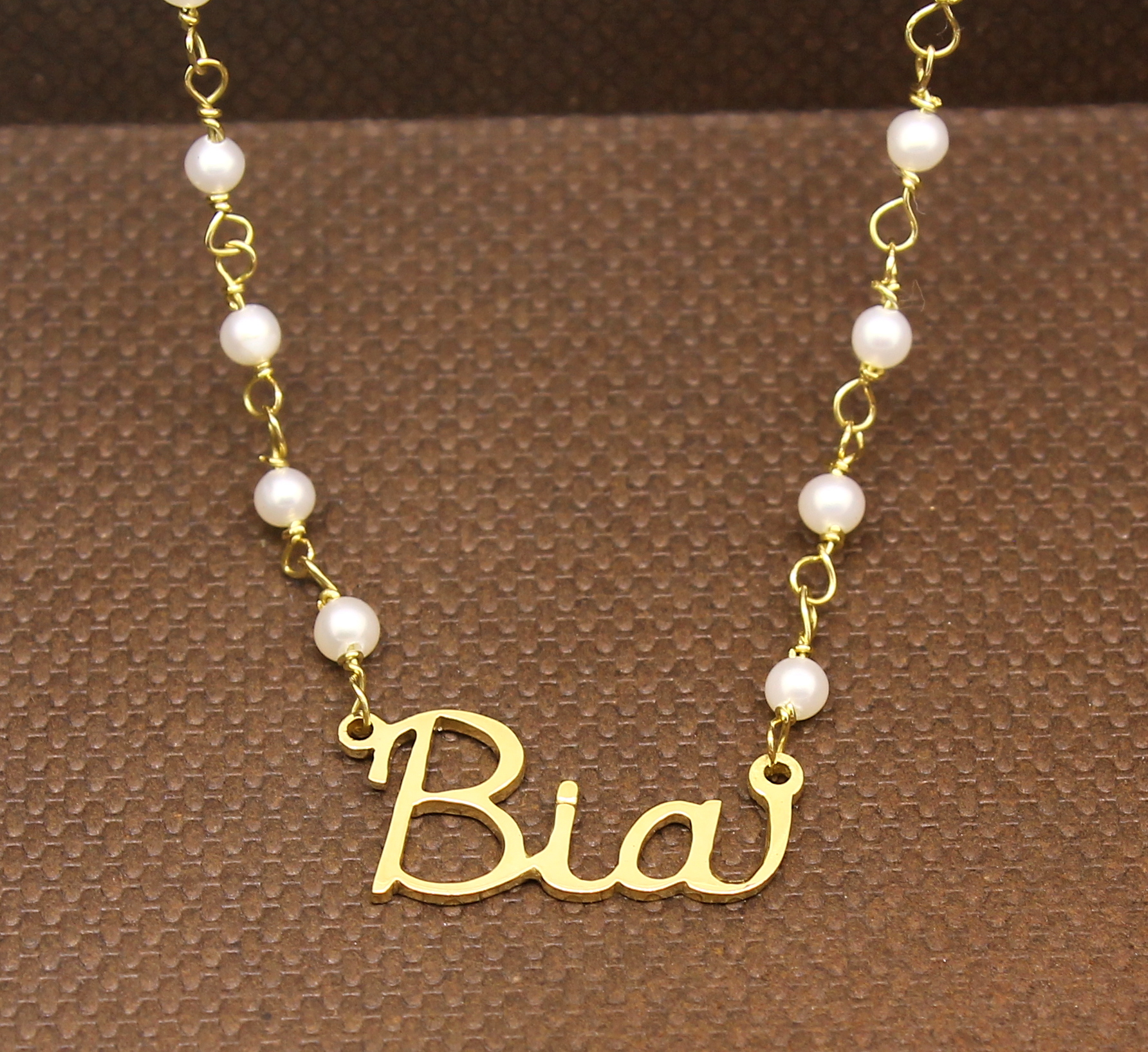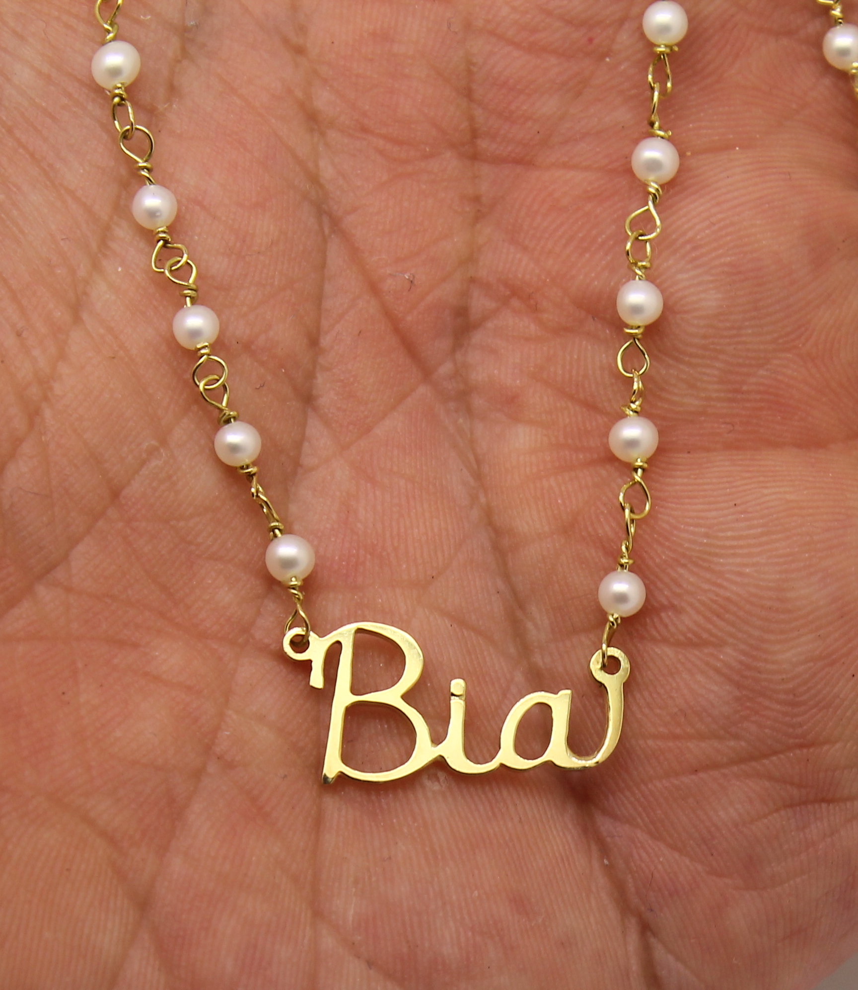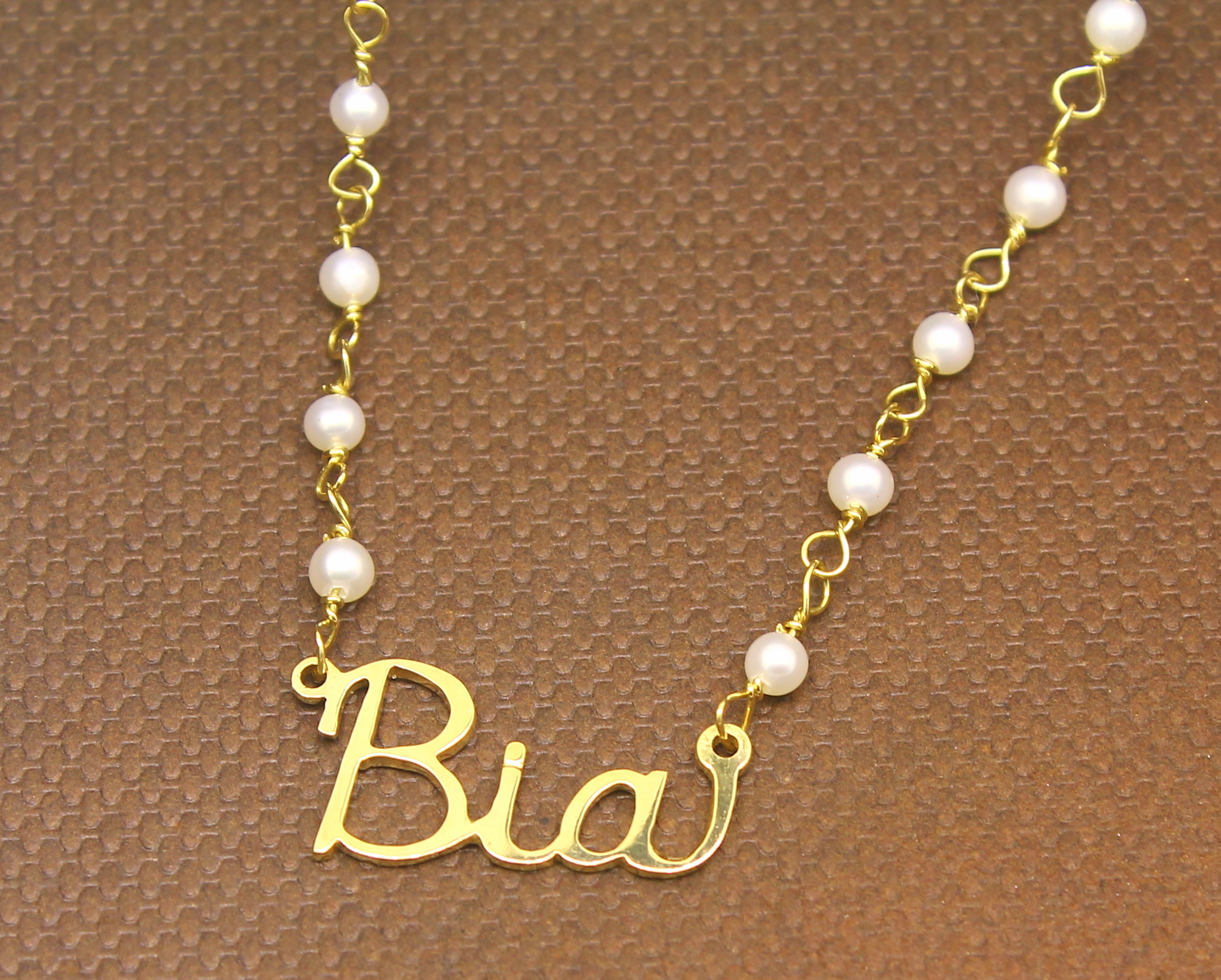 Colar de Pérolas com Nome Ouro 18k