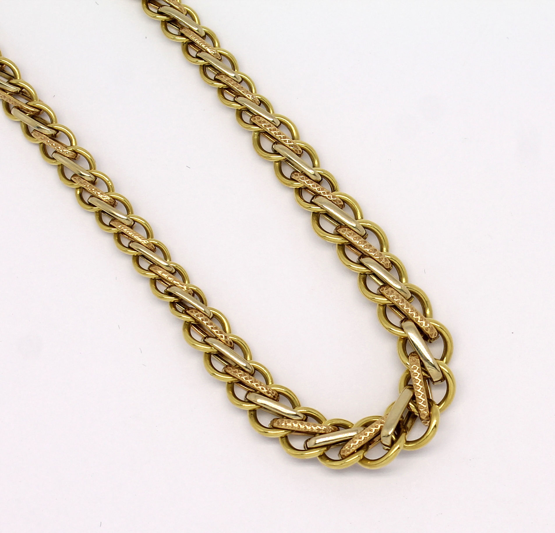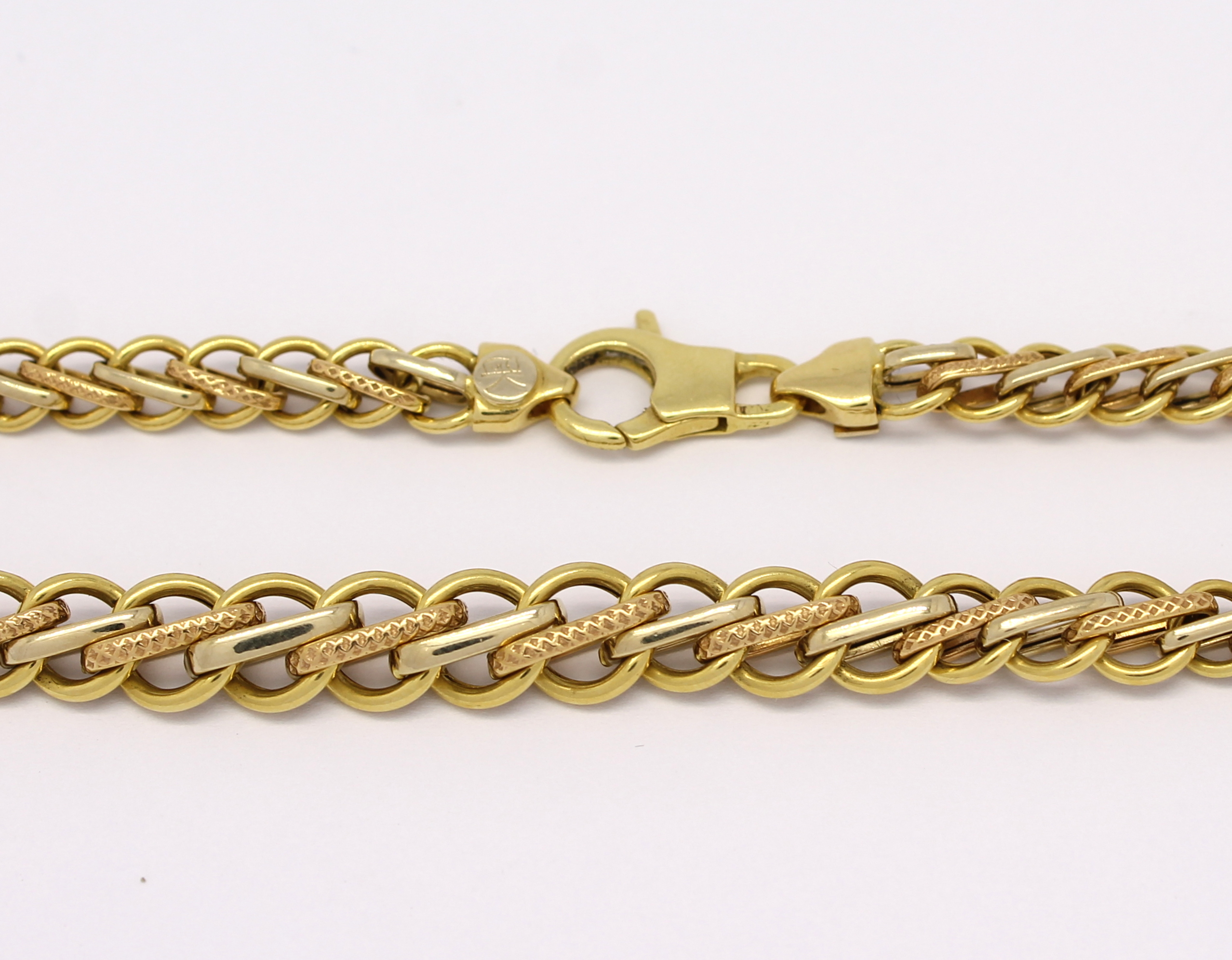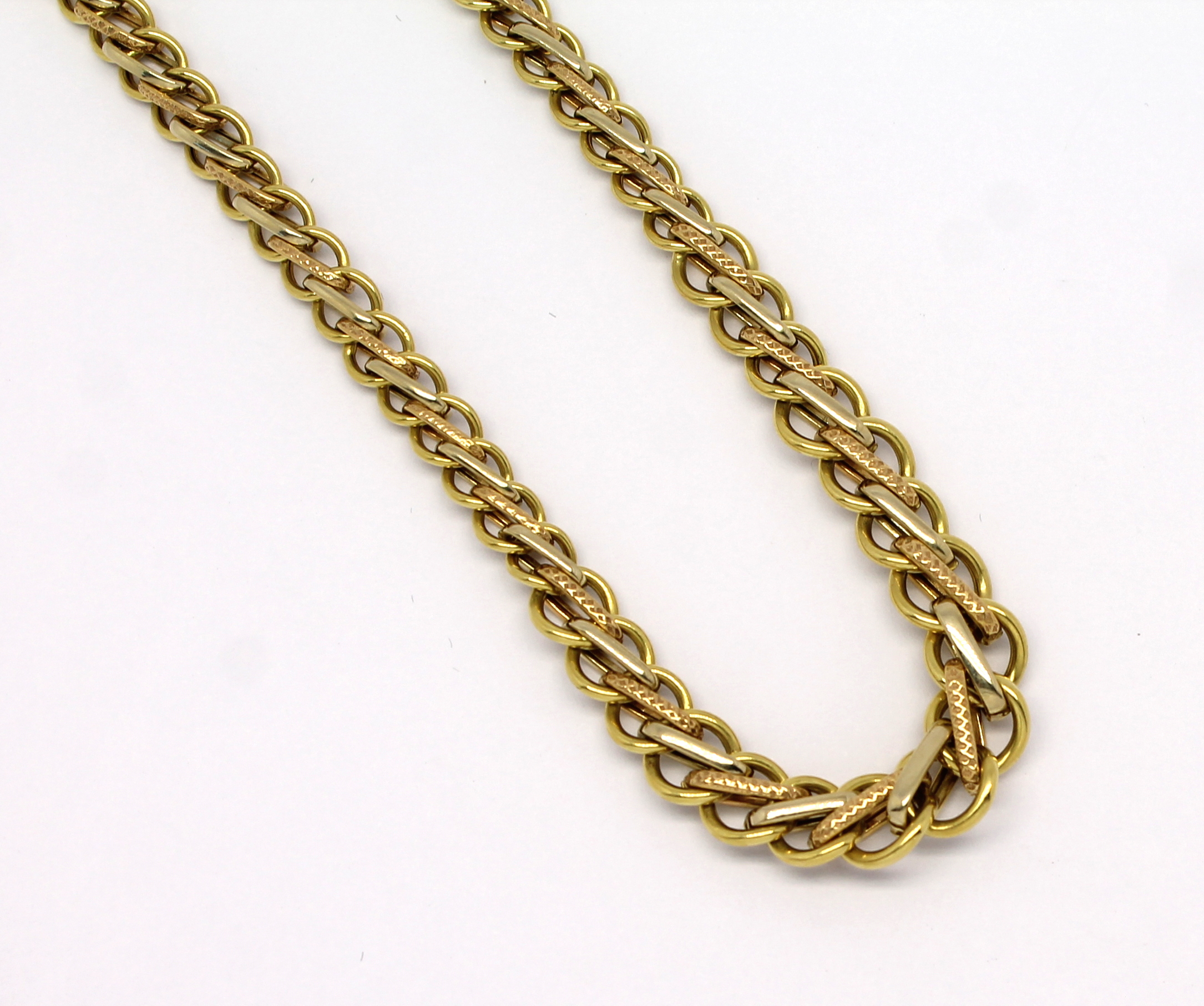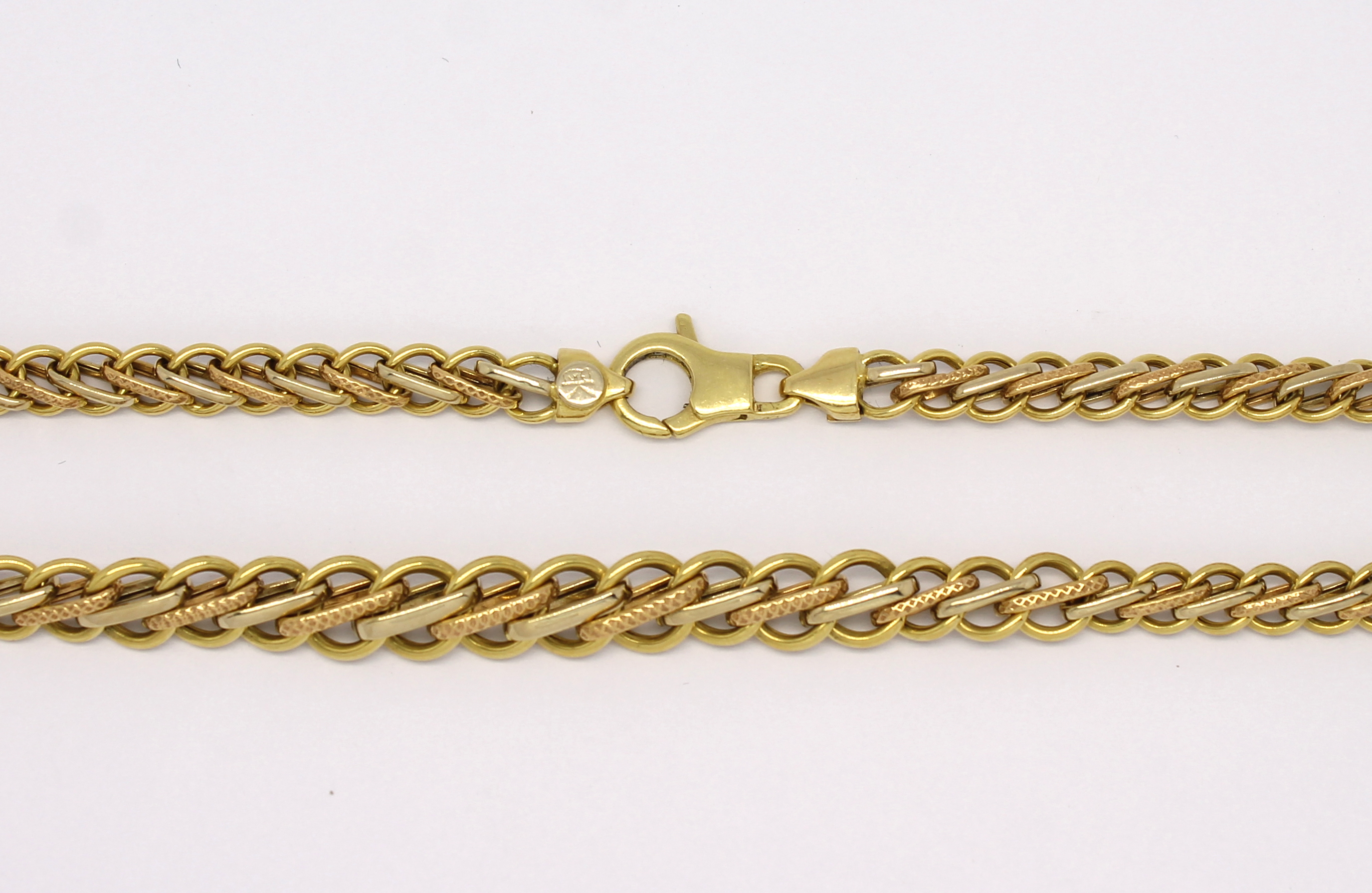 Corrente Feminina Trançada Ouro Amarelo Branco e Vermelho 18k 750