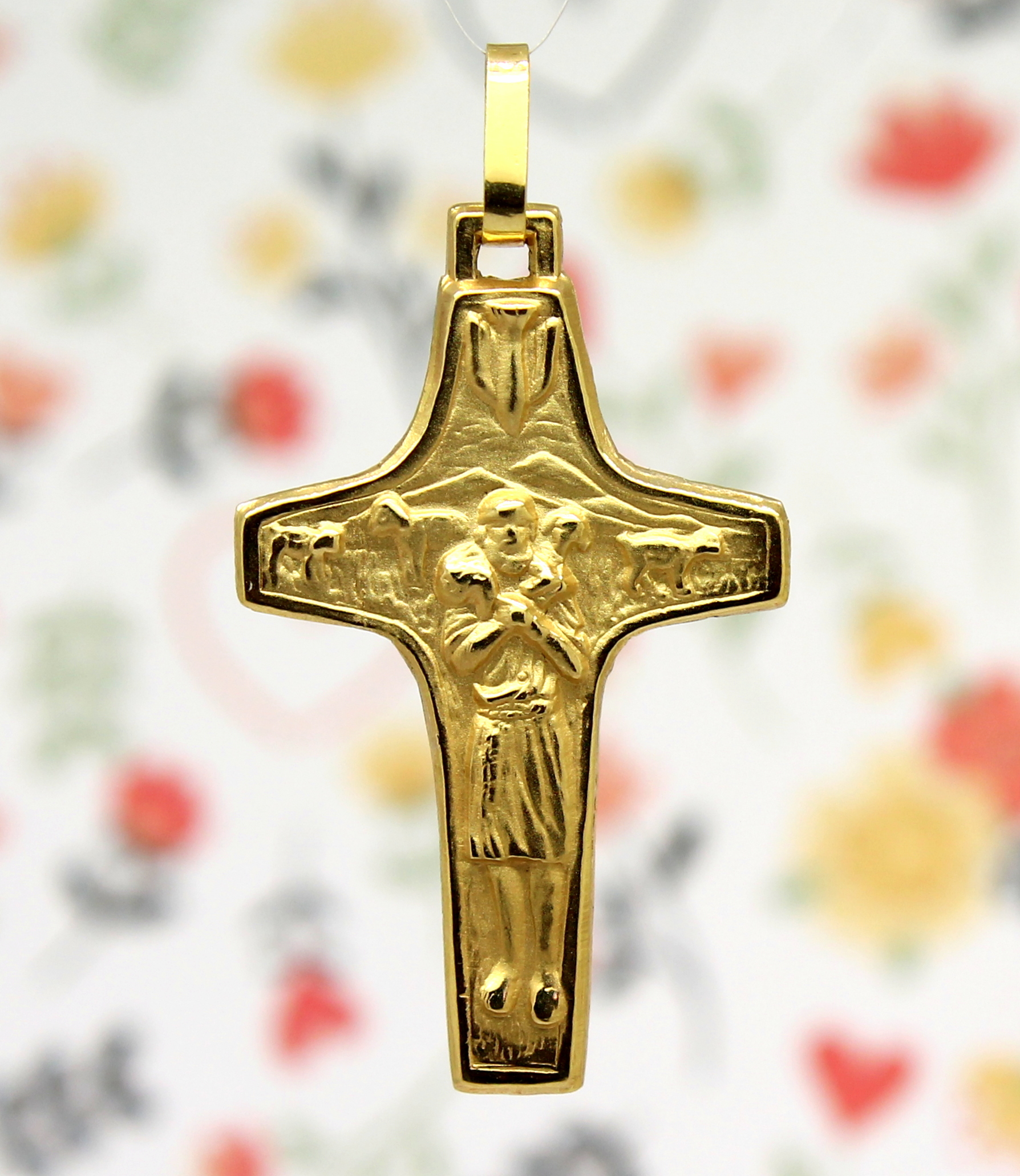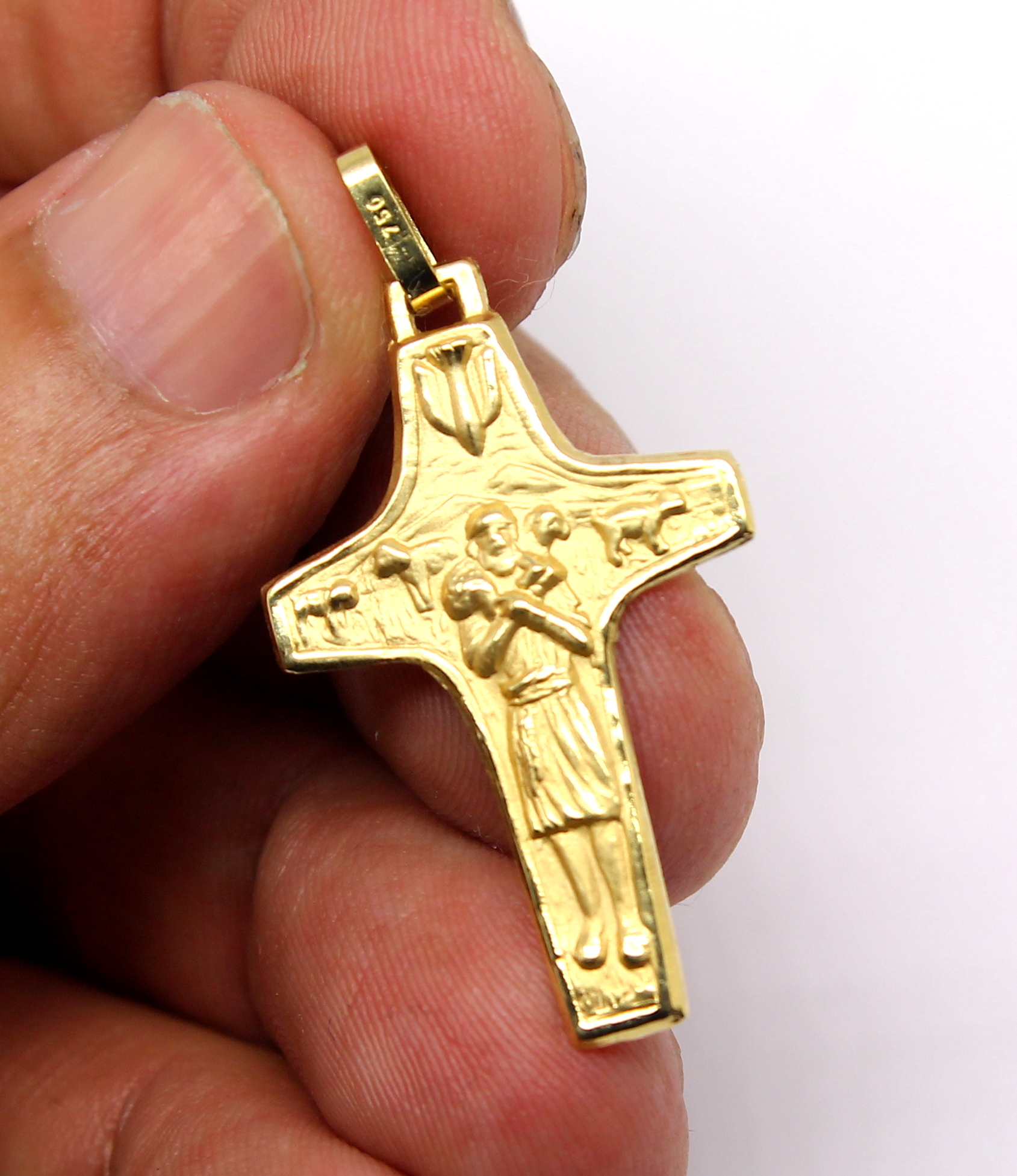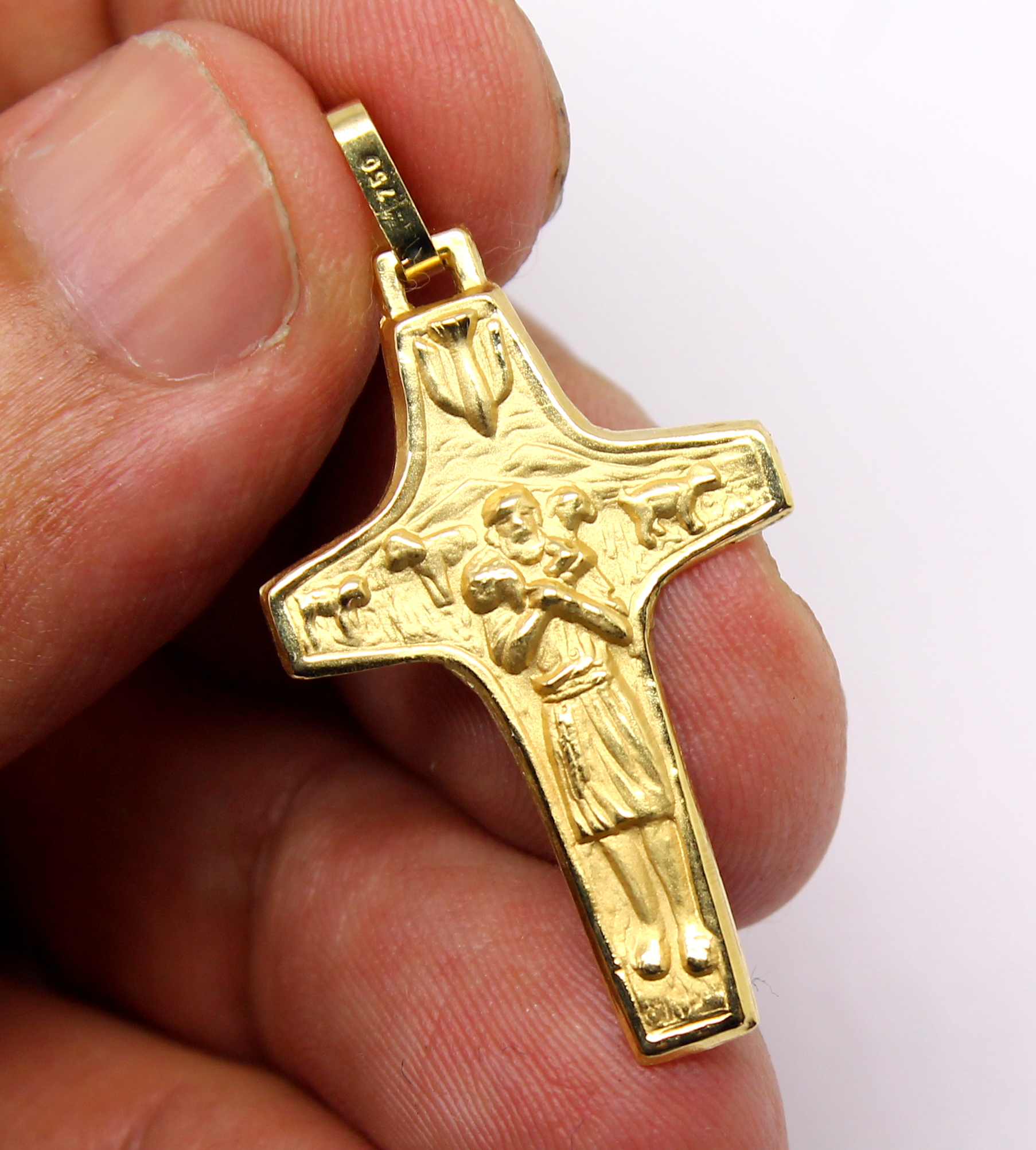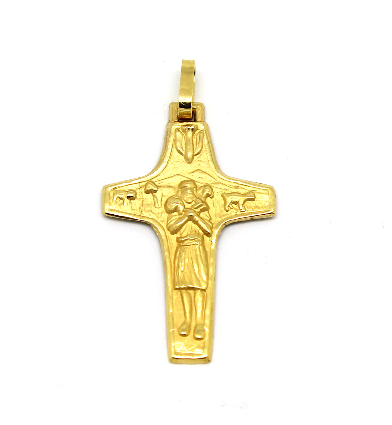 Cruz Bom Pastor Ouro Amarelo 18k 750