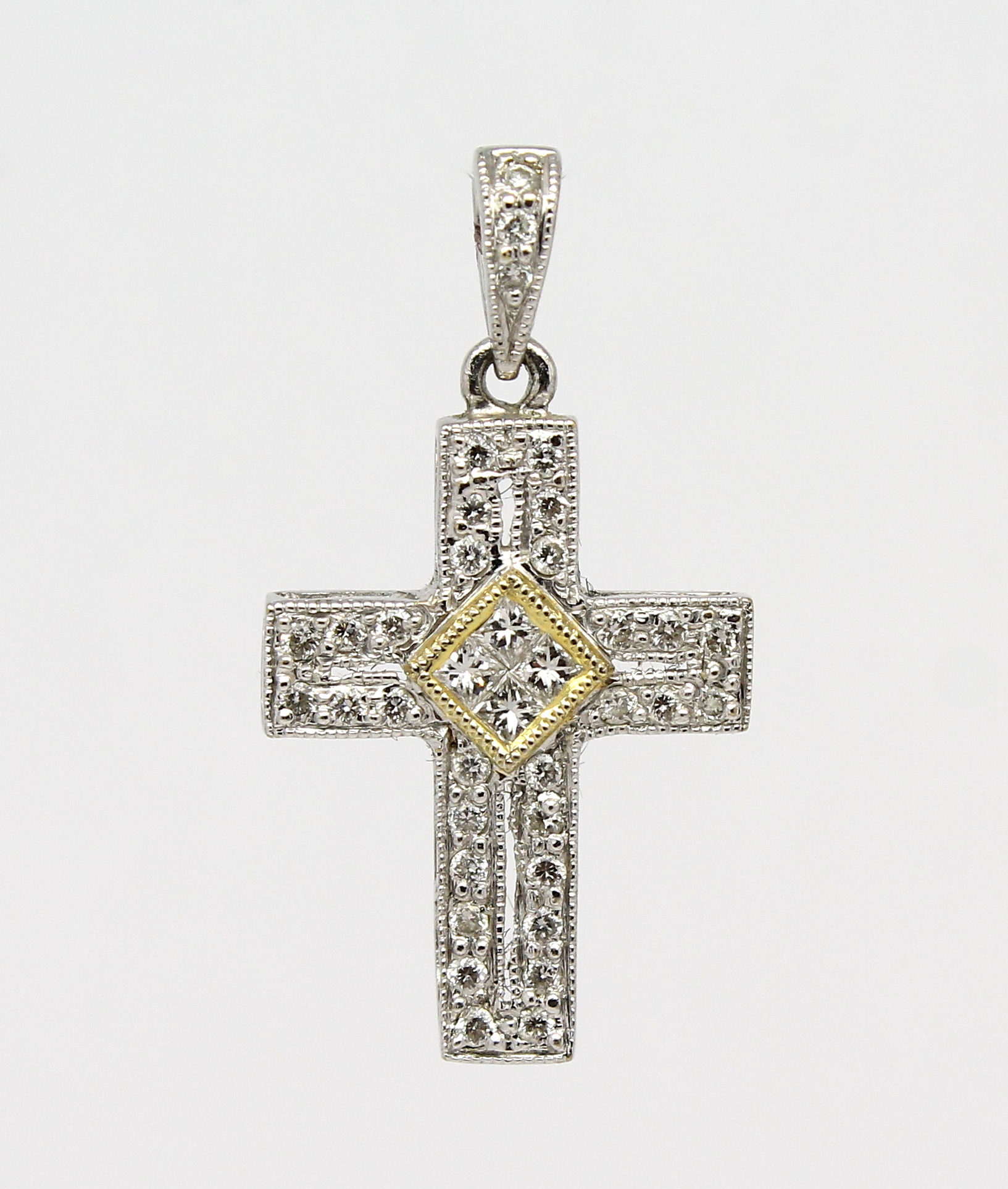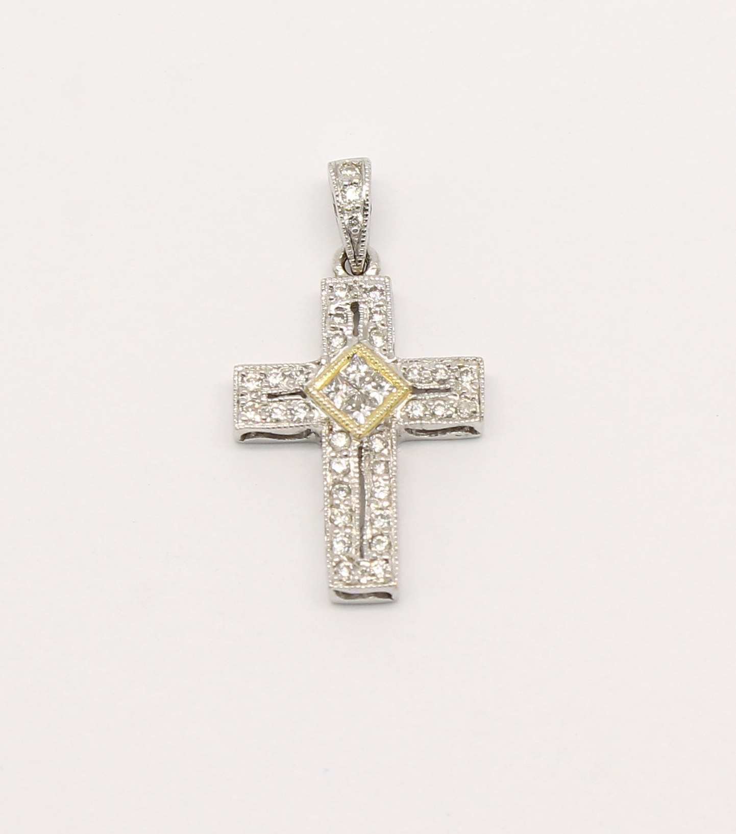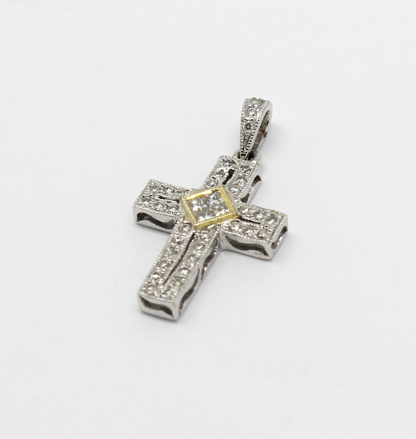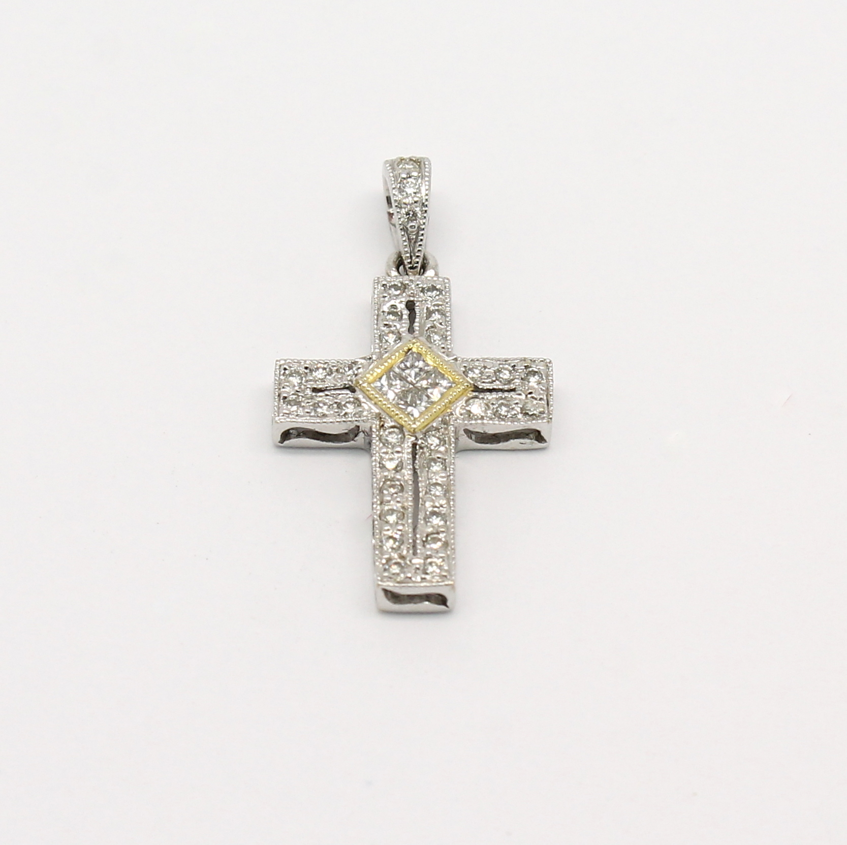 Cruz de Diamantes Ouro Branco 18k 750