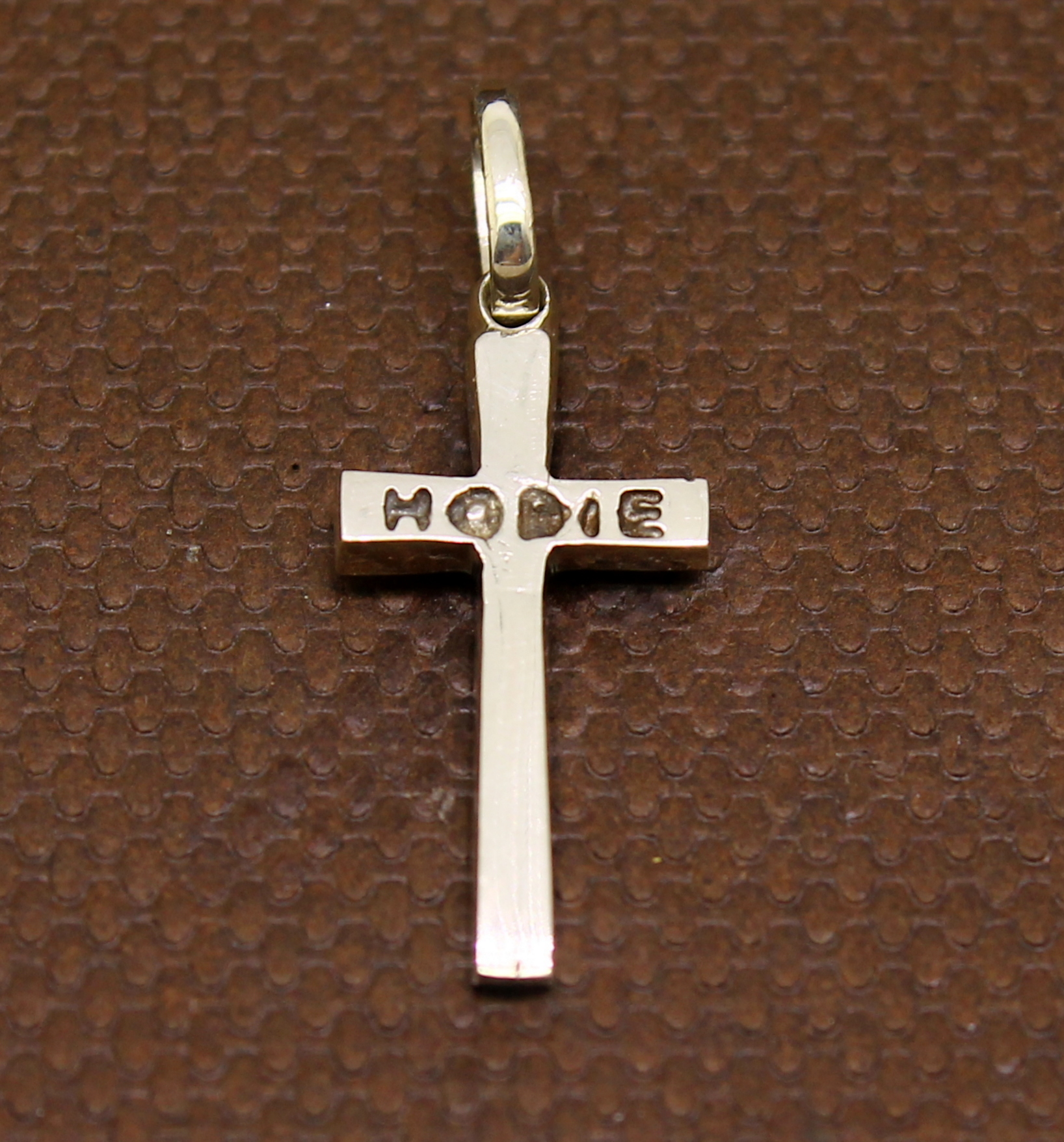A cruz na mão de Santo Expedito tem a palavra ‘HODIE’, hoje. Significa que o tempo da salvação e da conversão é hoje, é agora. A cruz representa a morte de Jesus Cristo através da qual nos veio a salvação. Segurar a cruz com a mão direita representa abraçar a cruz com todas as forças, capacidades e decisão. E representa também a vitória sobre o espírito do mal.