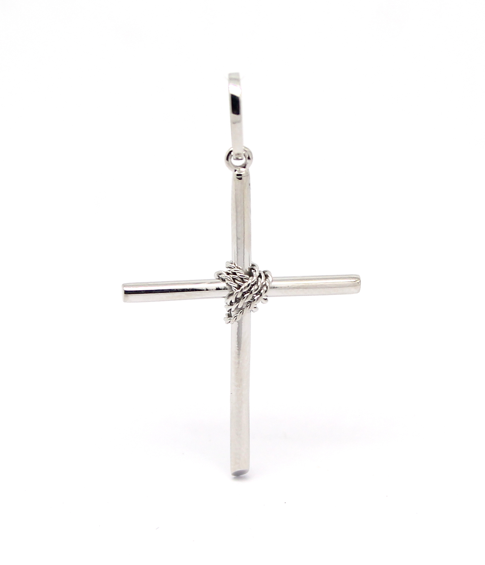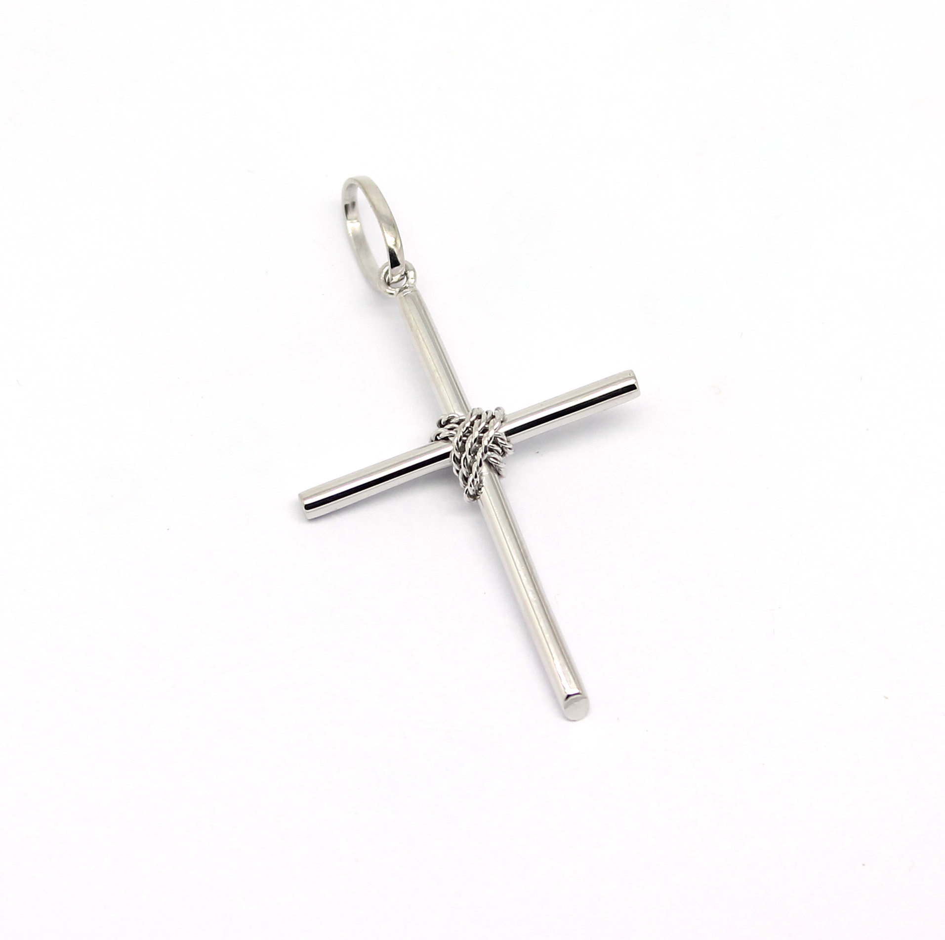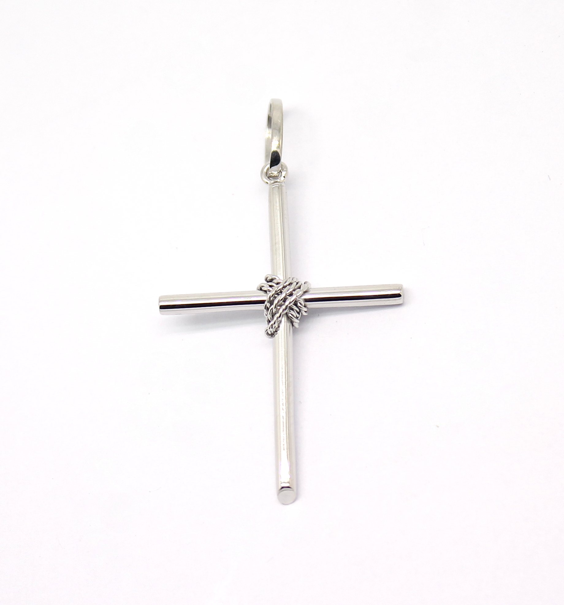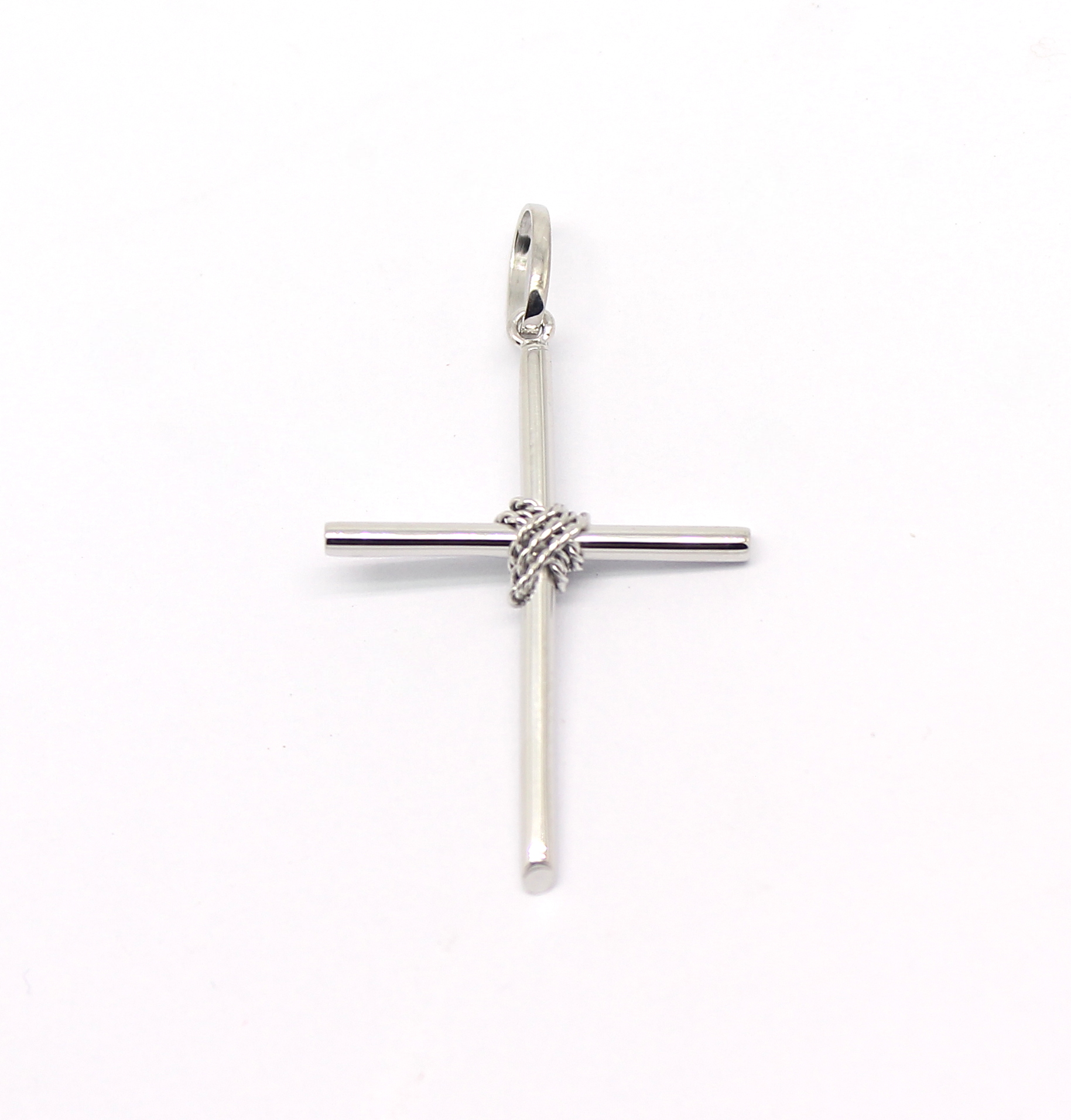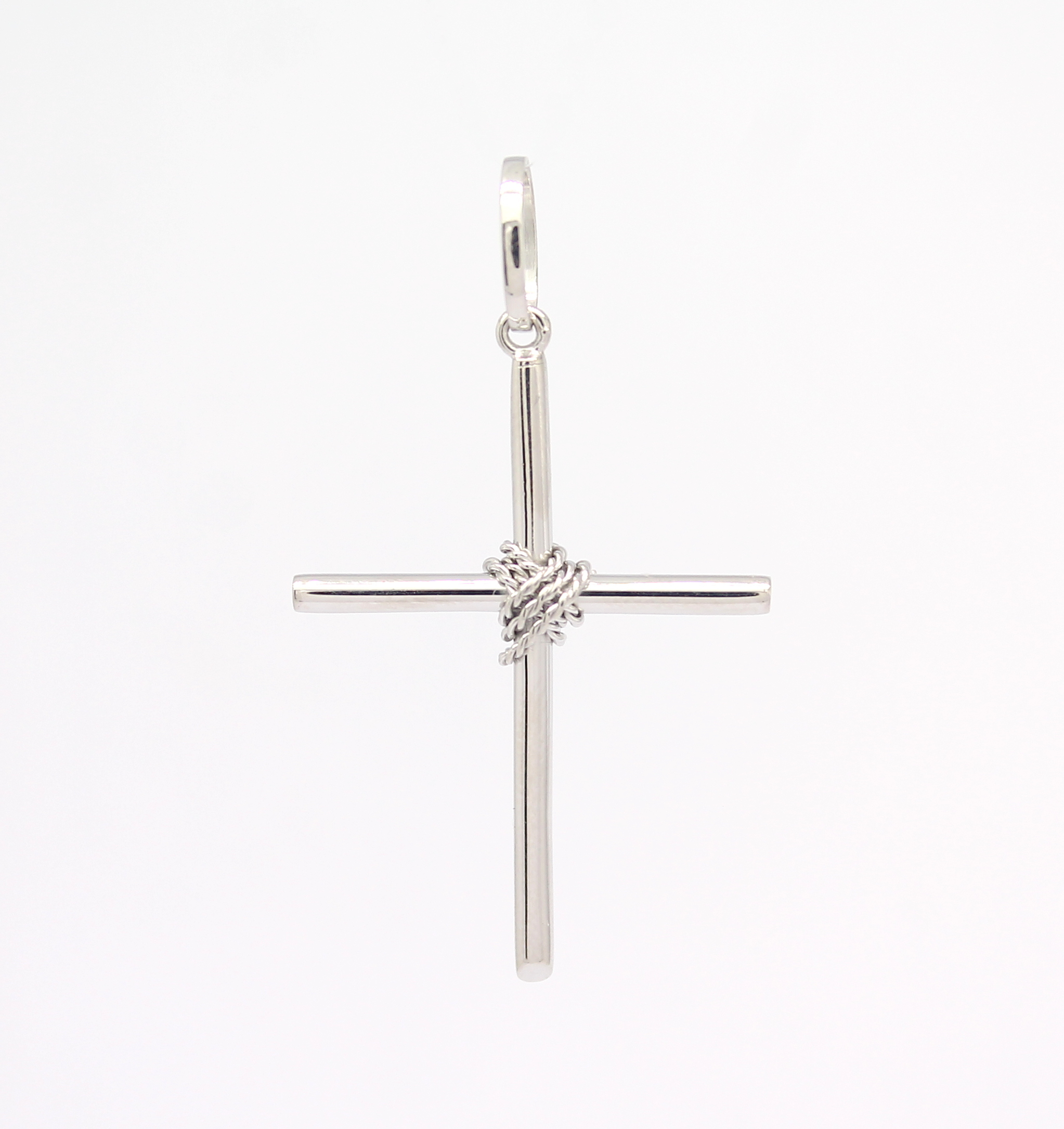 Cruz Palito com Corda Ouro Branco 18k 750