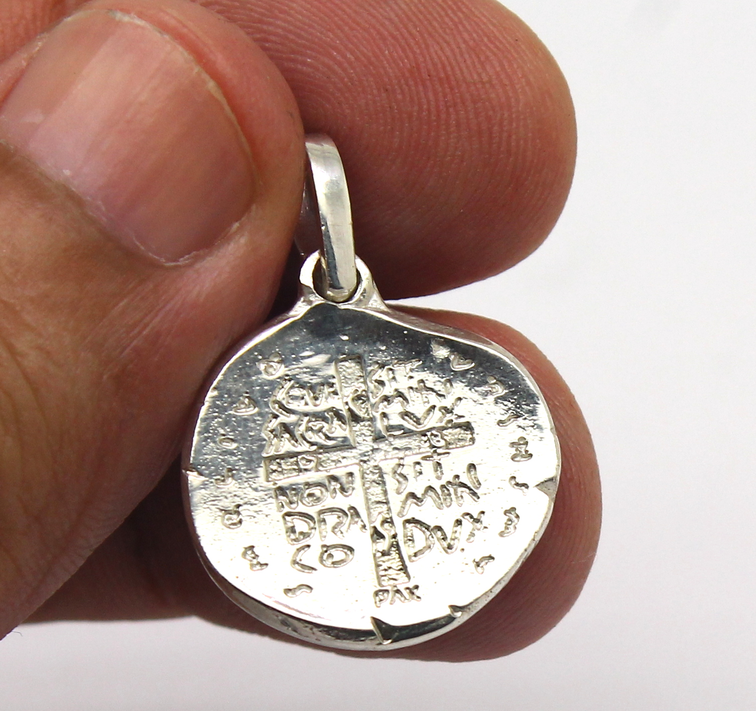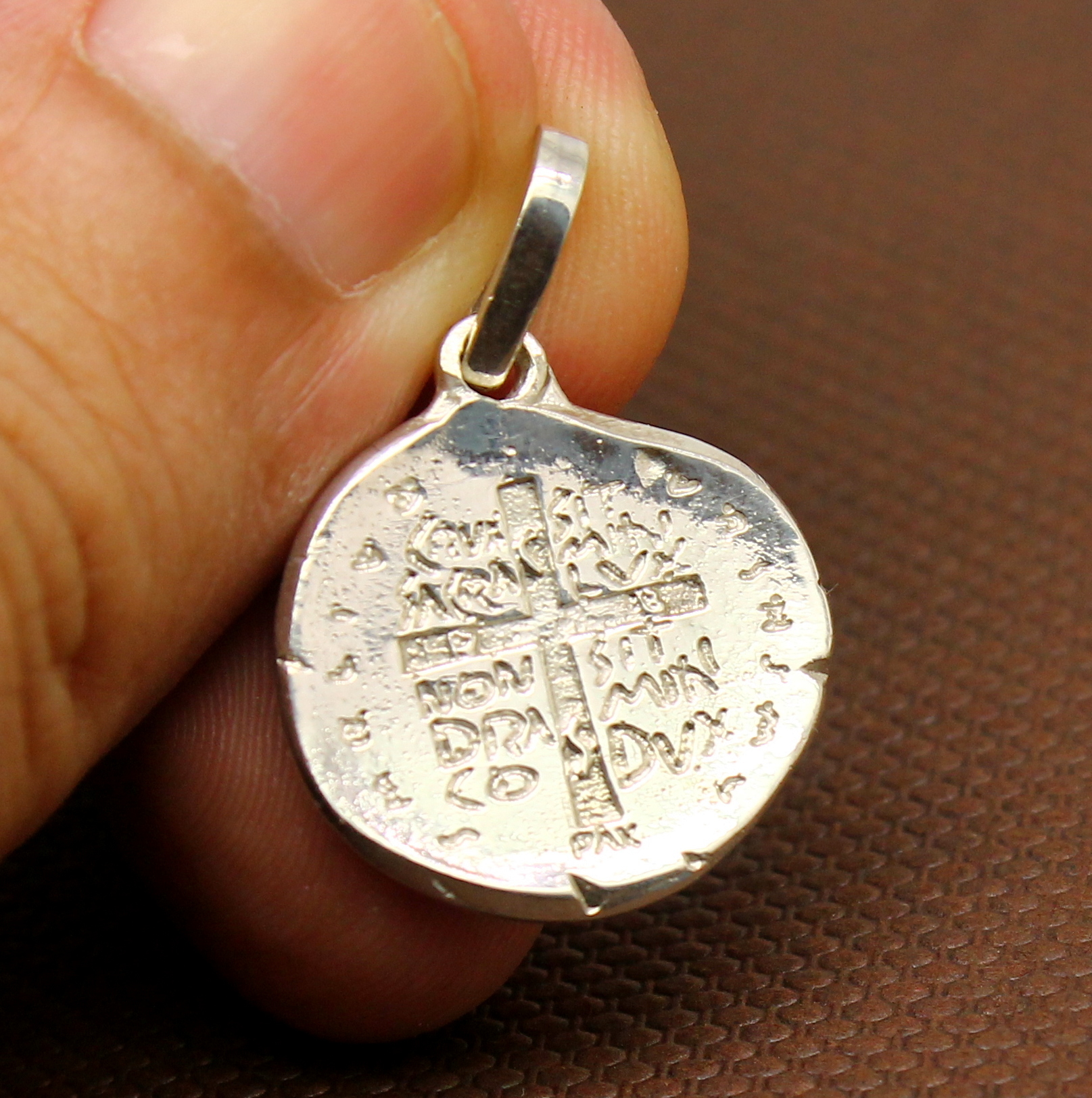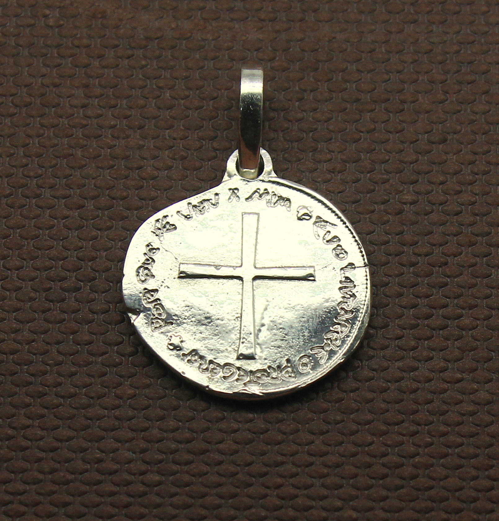 A medalha traz, de um lado o exorcismo e do outro o “revestir da proteção de Deus”, garantido para nós no Salmo 90: “Porque se uniu a Mim, Eu o livrarei e o protegerei”.