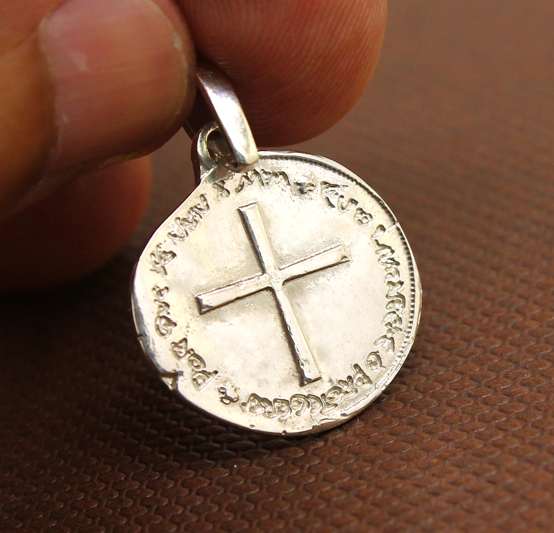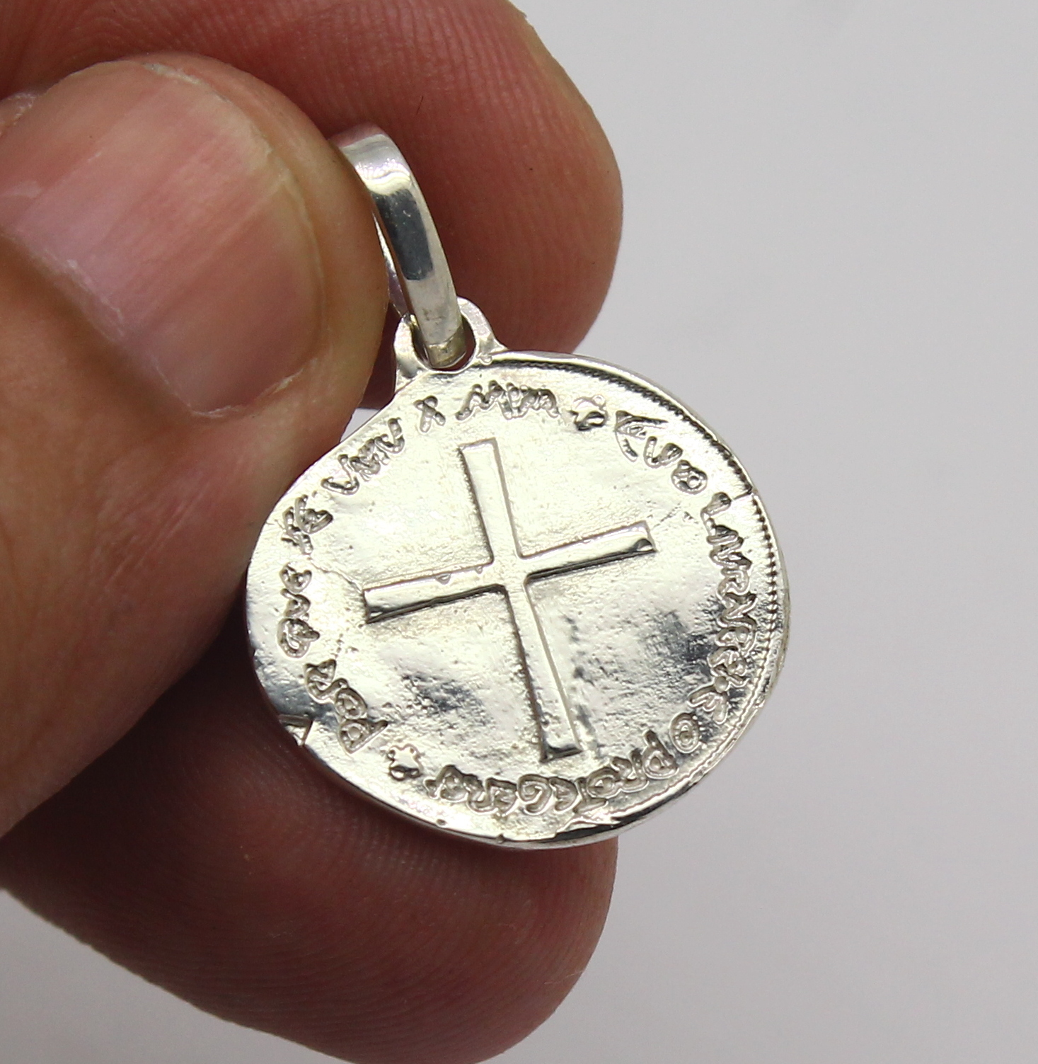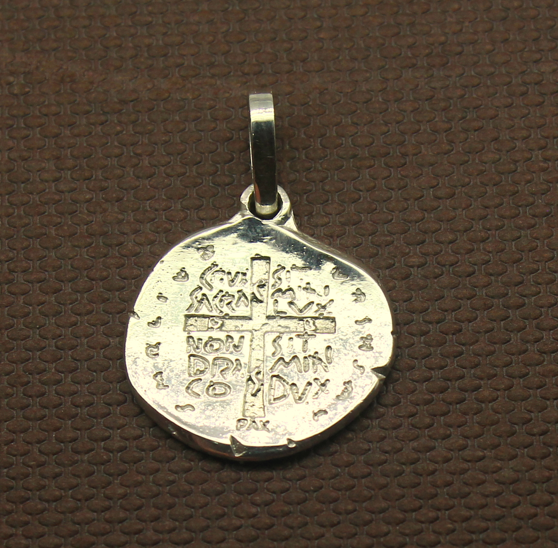 A medalha traz, de um lado o exorcismo e do outro o “revestir da proteção de Deus”, garantido para nós no Salmo 90: “Porque se uniu a Mim, Eu o livrarei e o protegerei”.